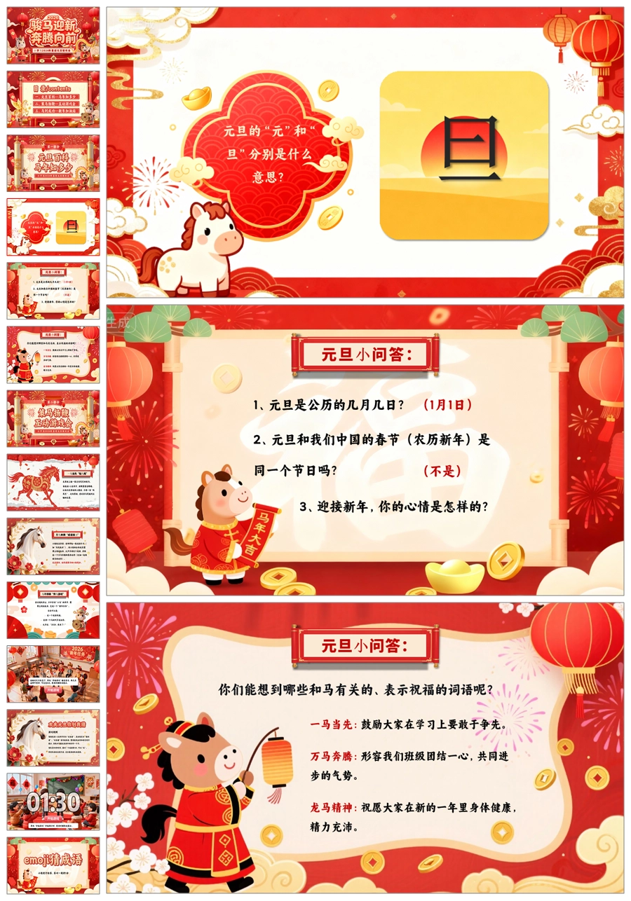 【5689】【元旦联欢会】马年元旦联欢主题班会ppt课件+主持稿