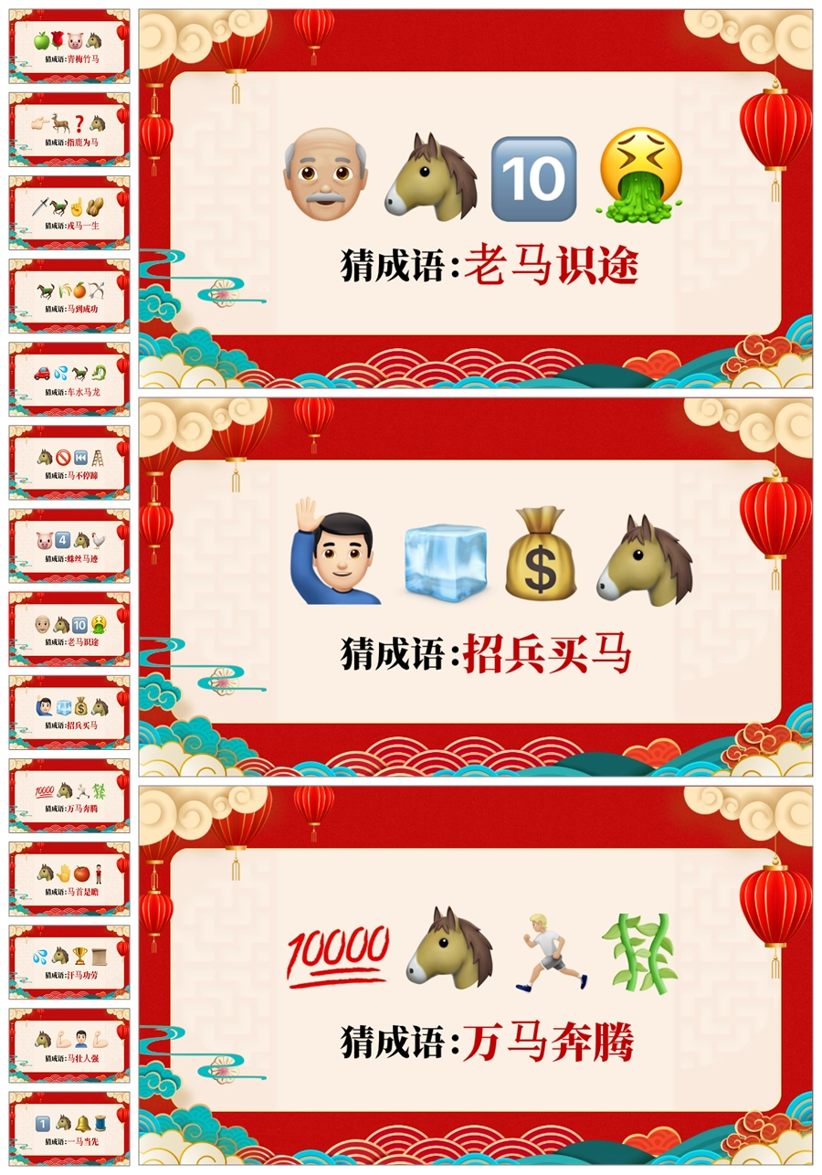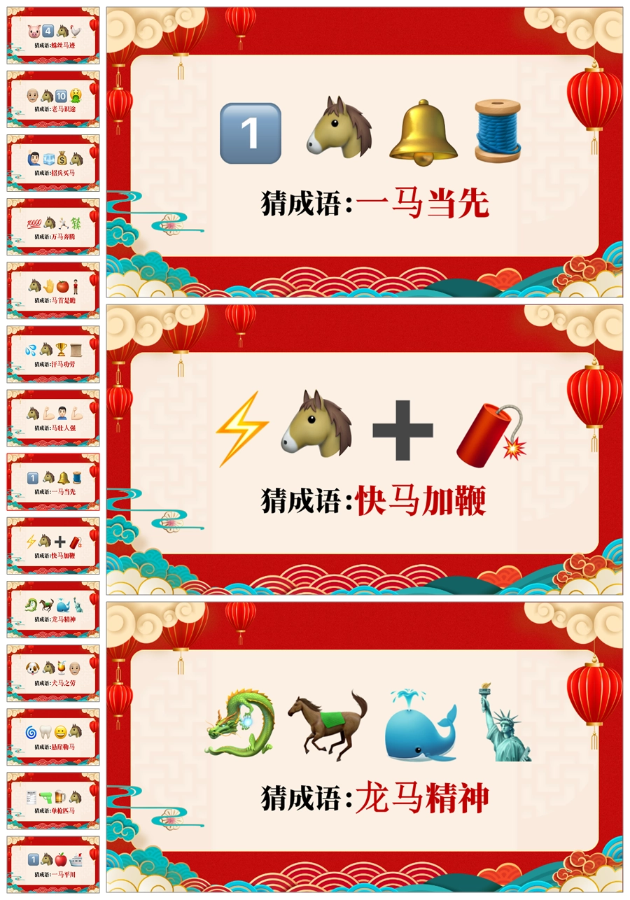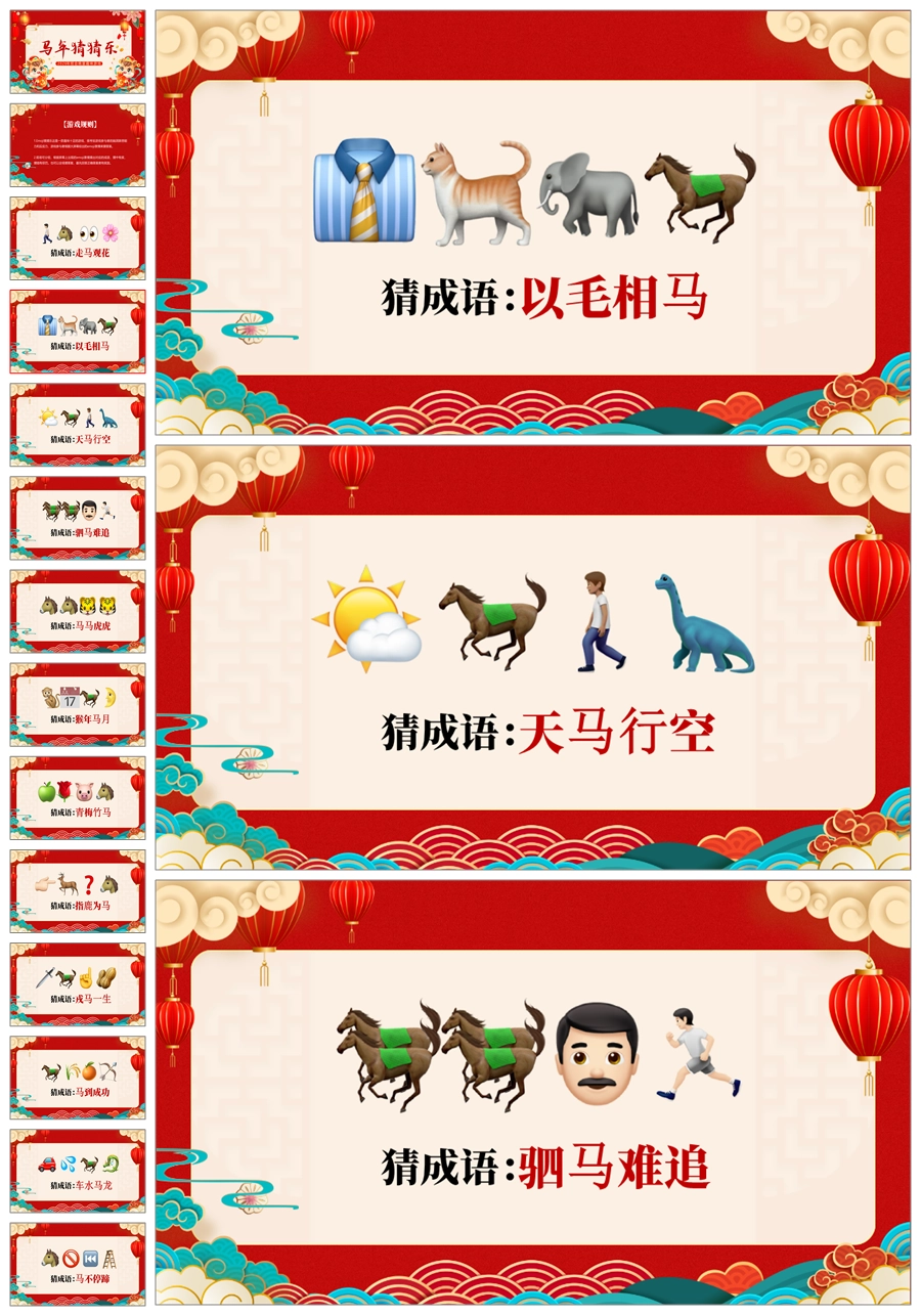 【5698】【通用】马年猜猜乐【马的成语33题】马年元旦联欢主题班会ppt课件