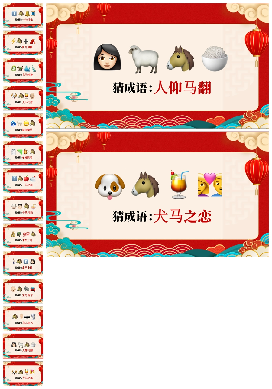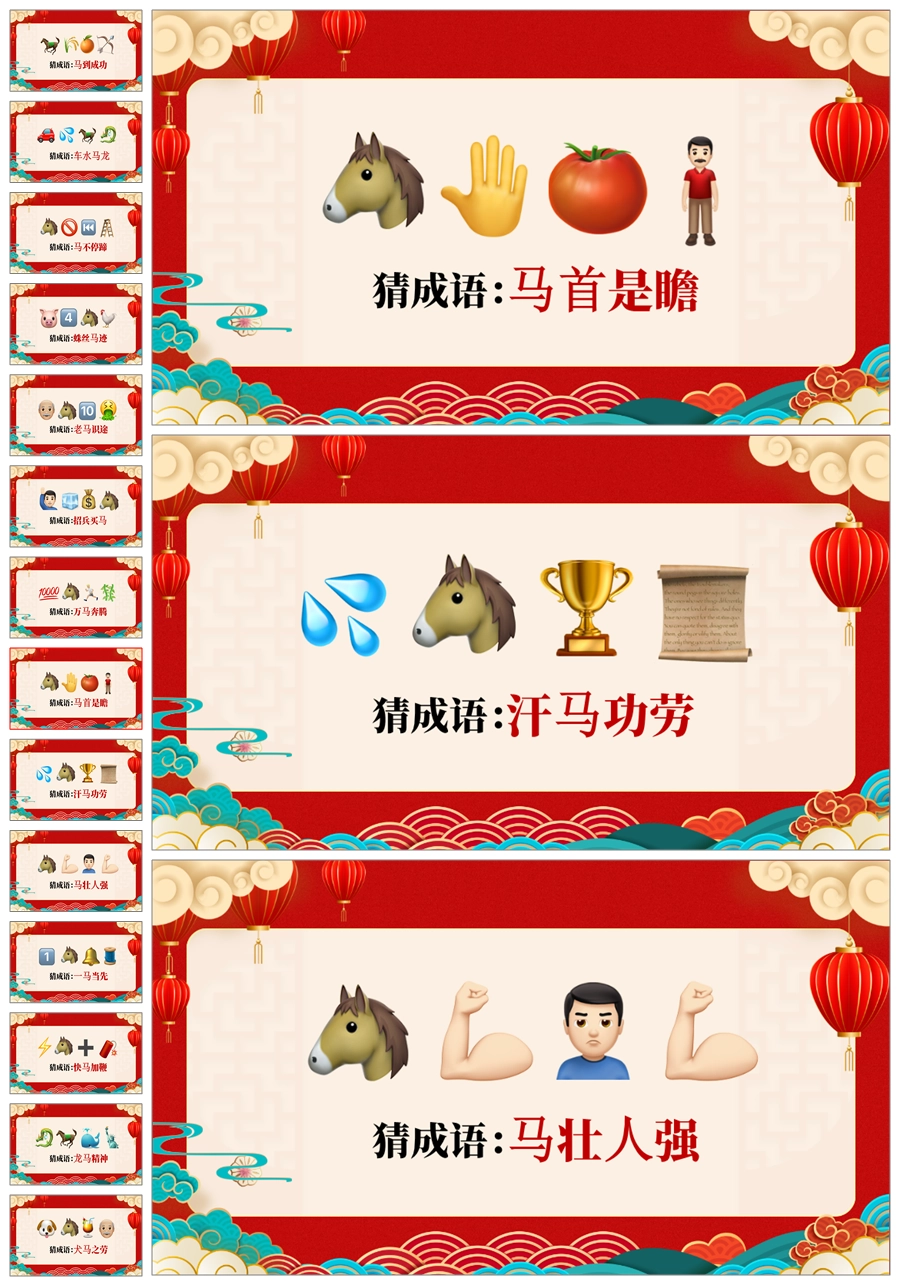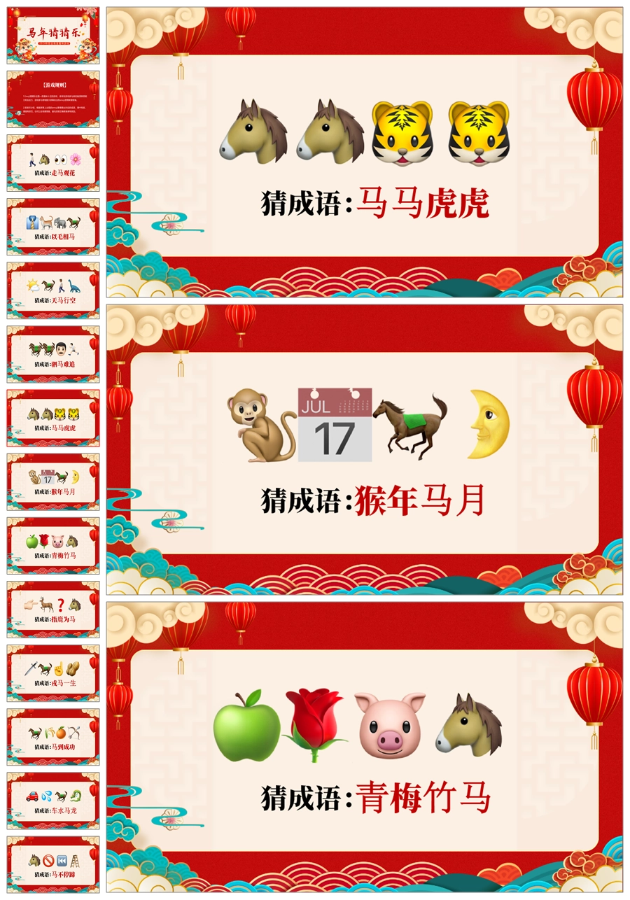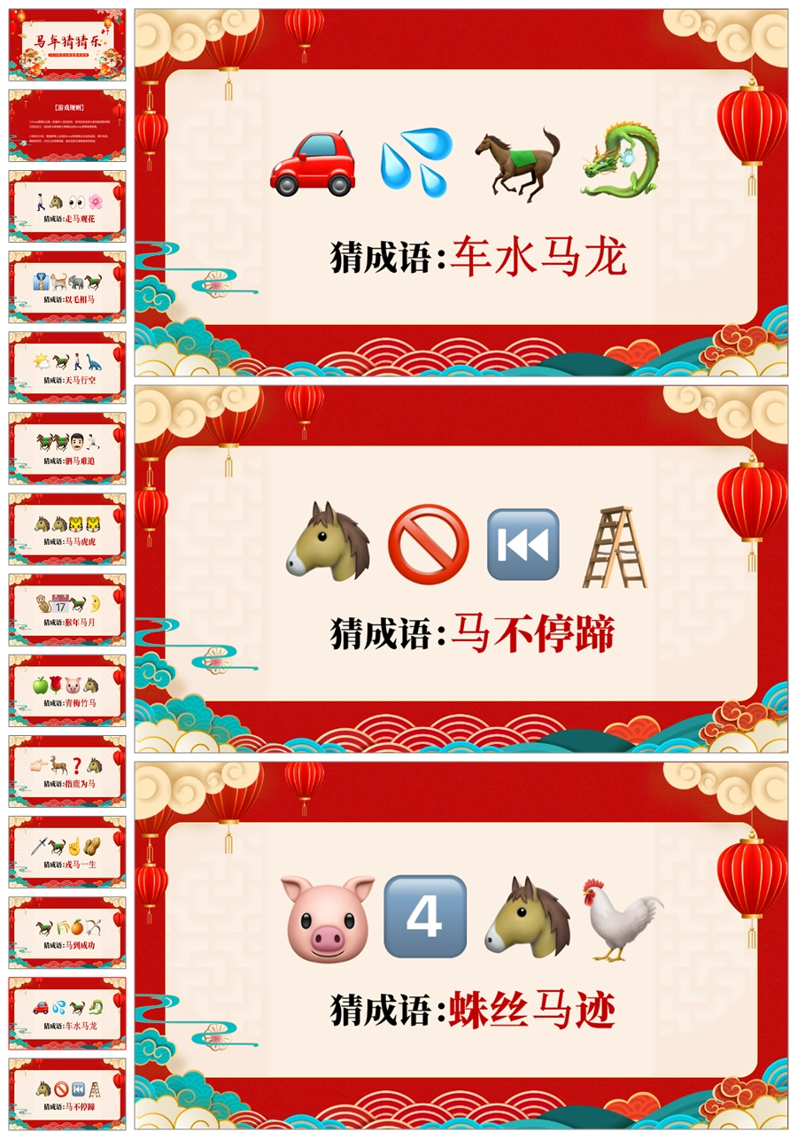 【5698】【通用】马年猜猜乐【马的成语33题】马年元旦联欢主题班会ppt课件