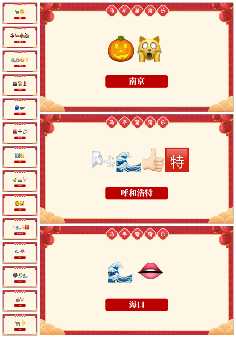 【5699】【通用】马年猜猜乐PPT(猜地名40题)马年元旦联欢主题班会ppt课件