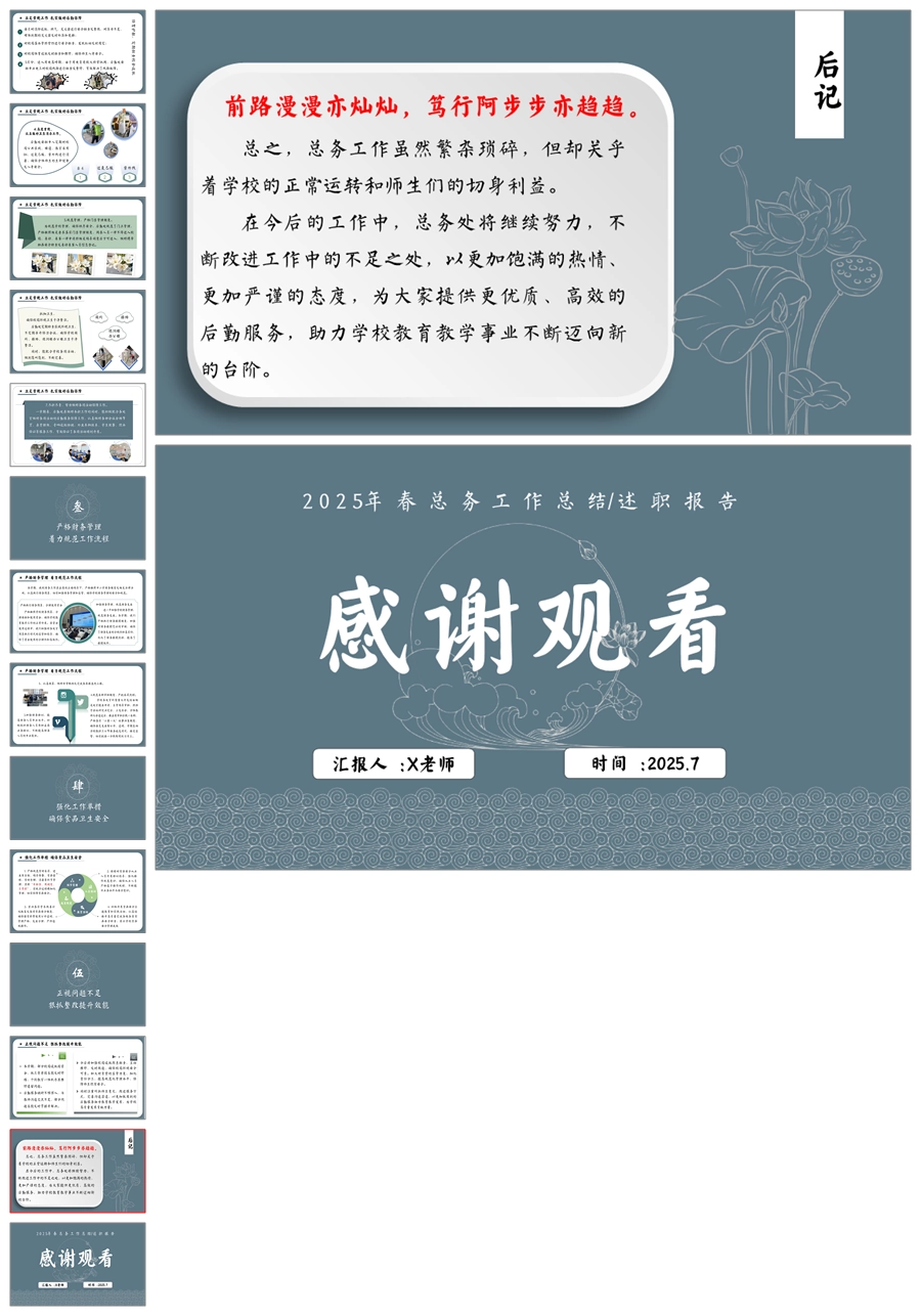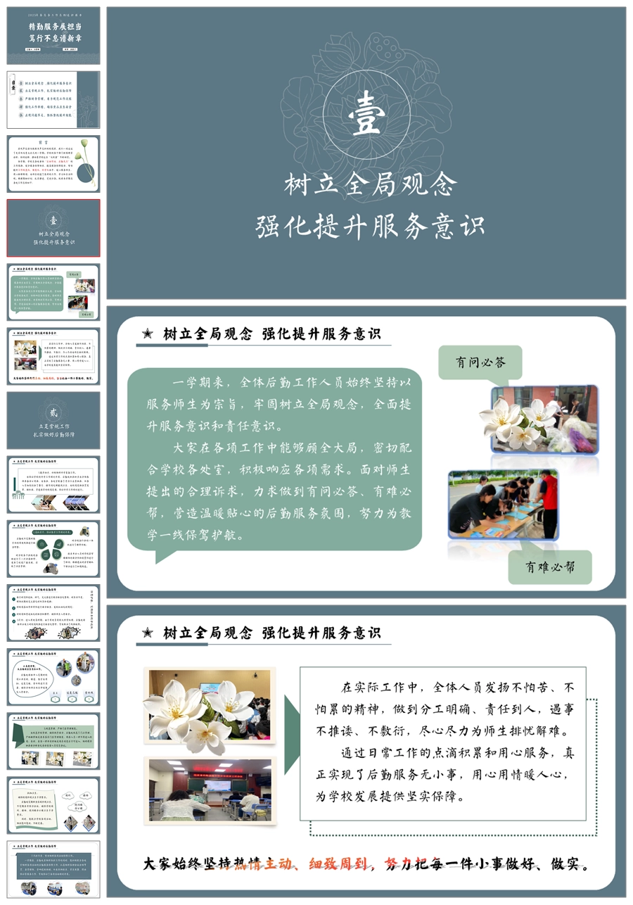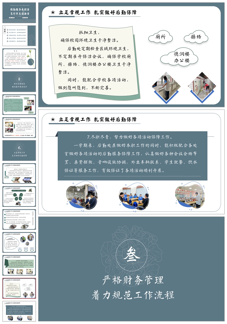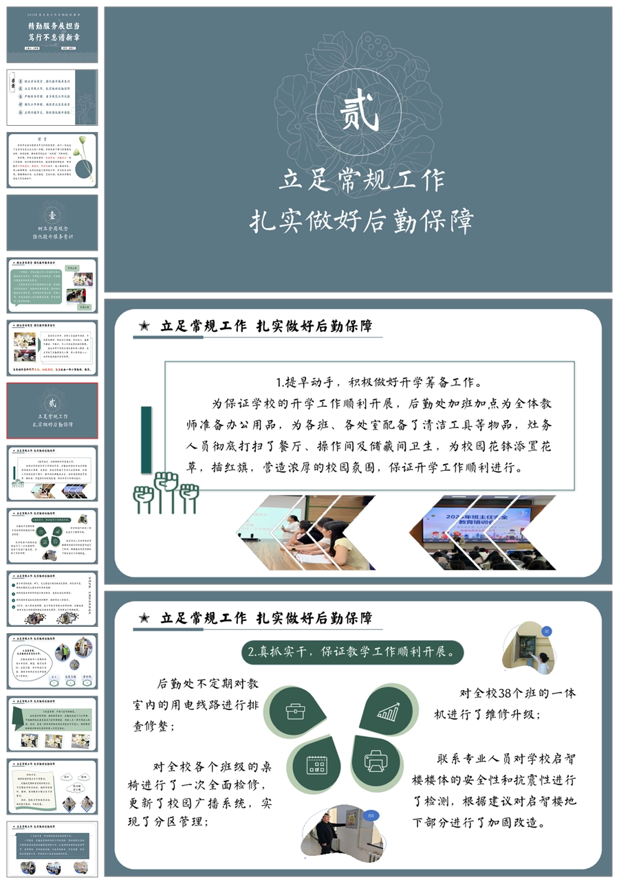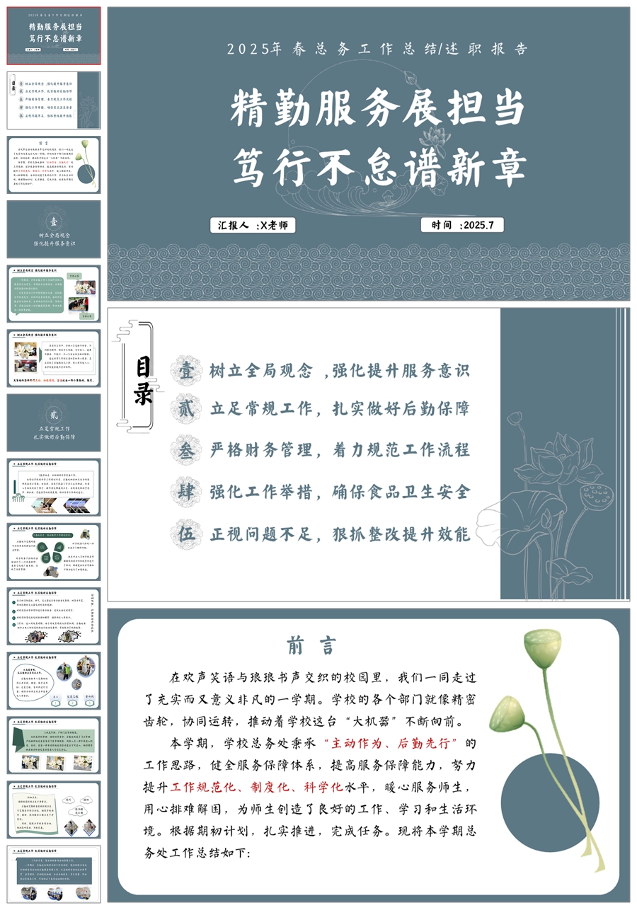 【5703】学校总务工作总结《精勤服务展担当 笃行不怠谱新章》ppt课件+发言稿