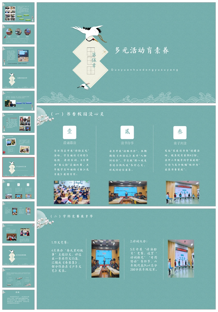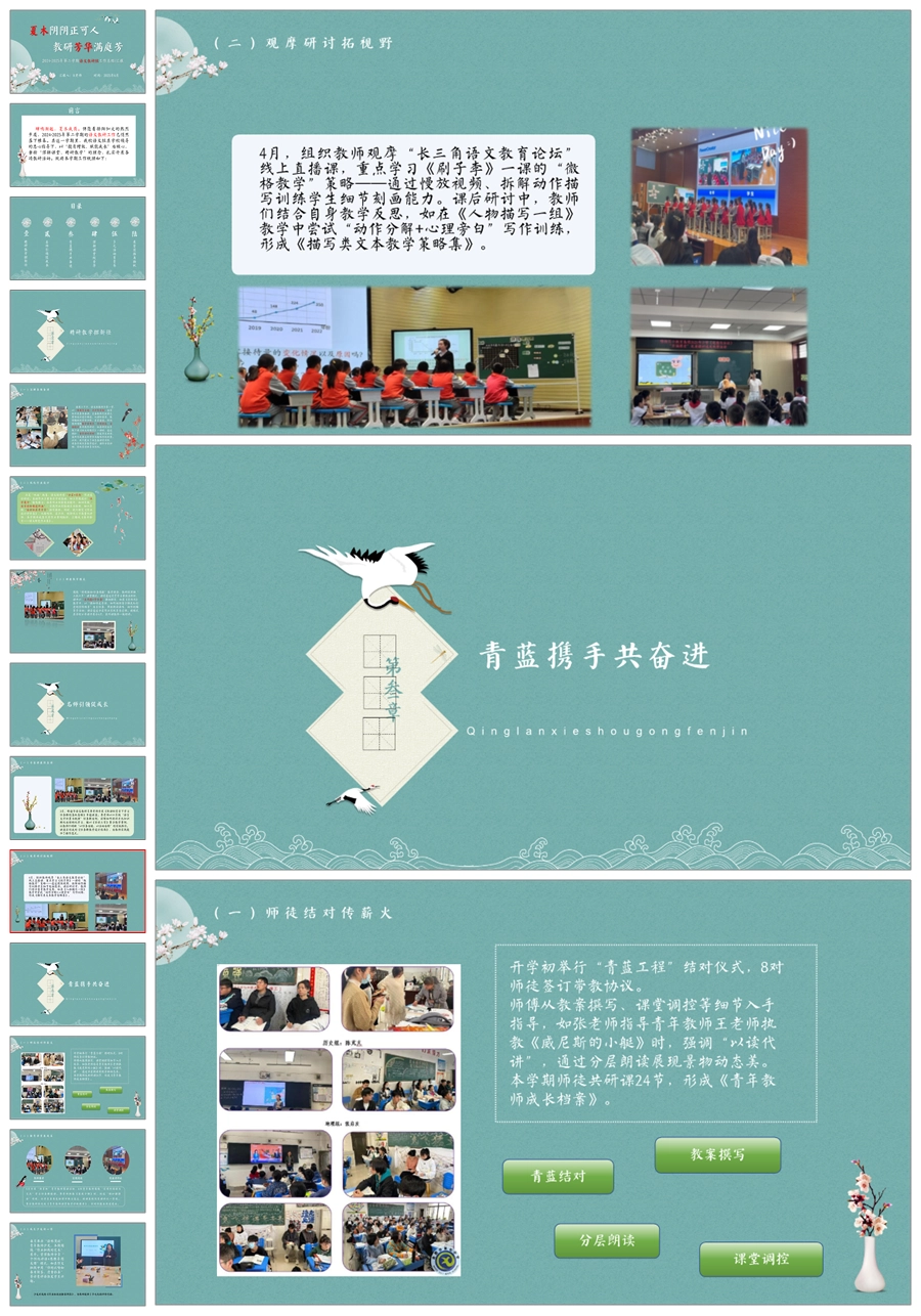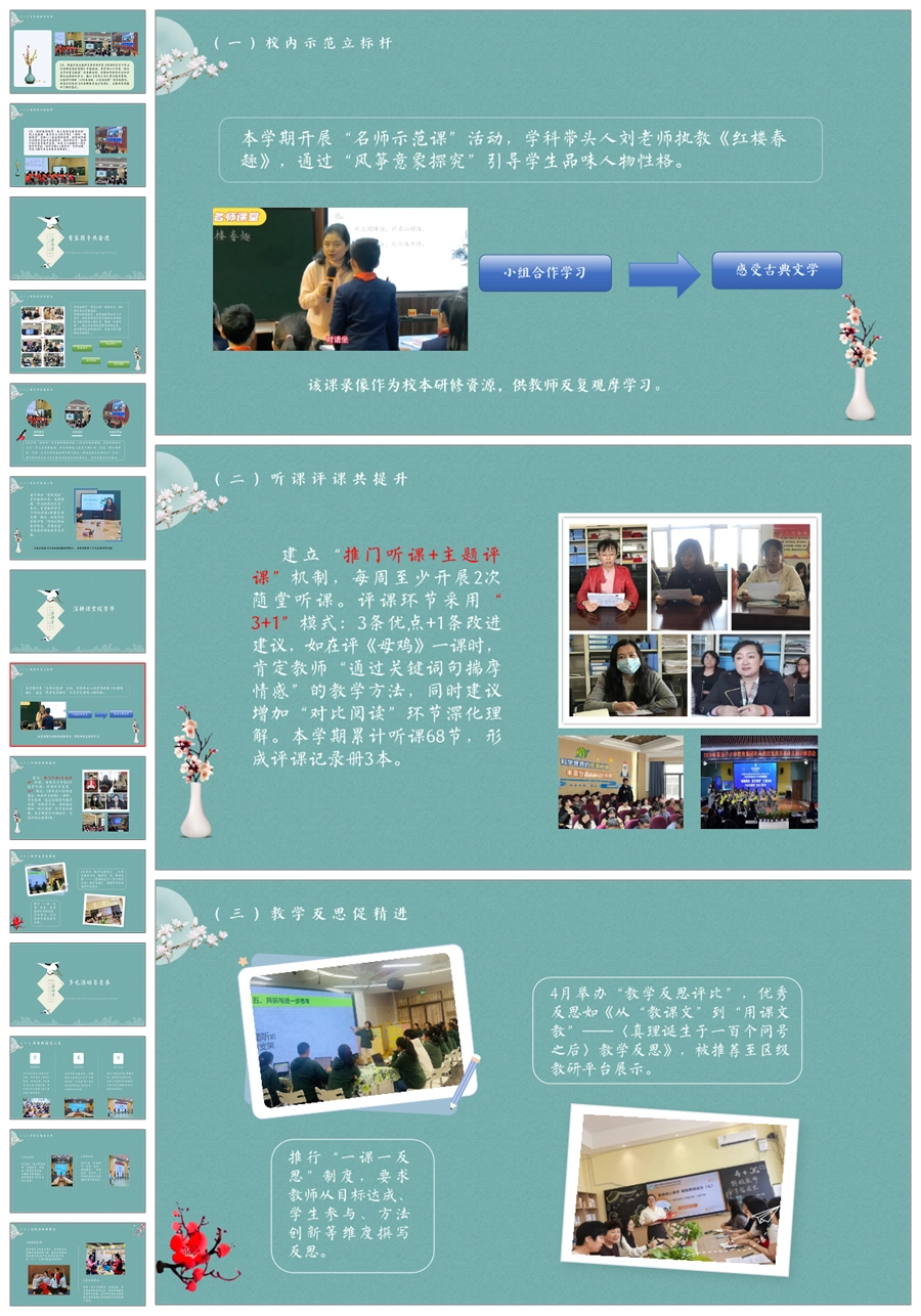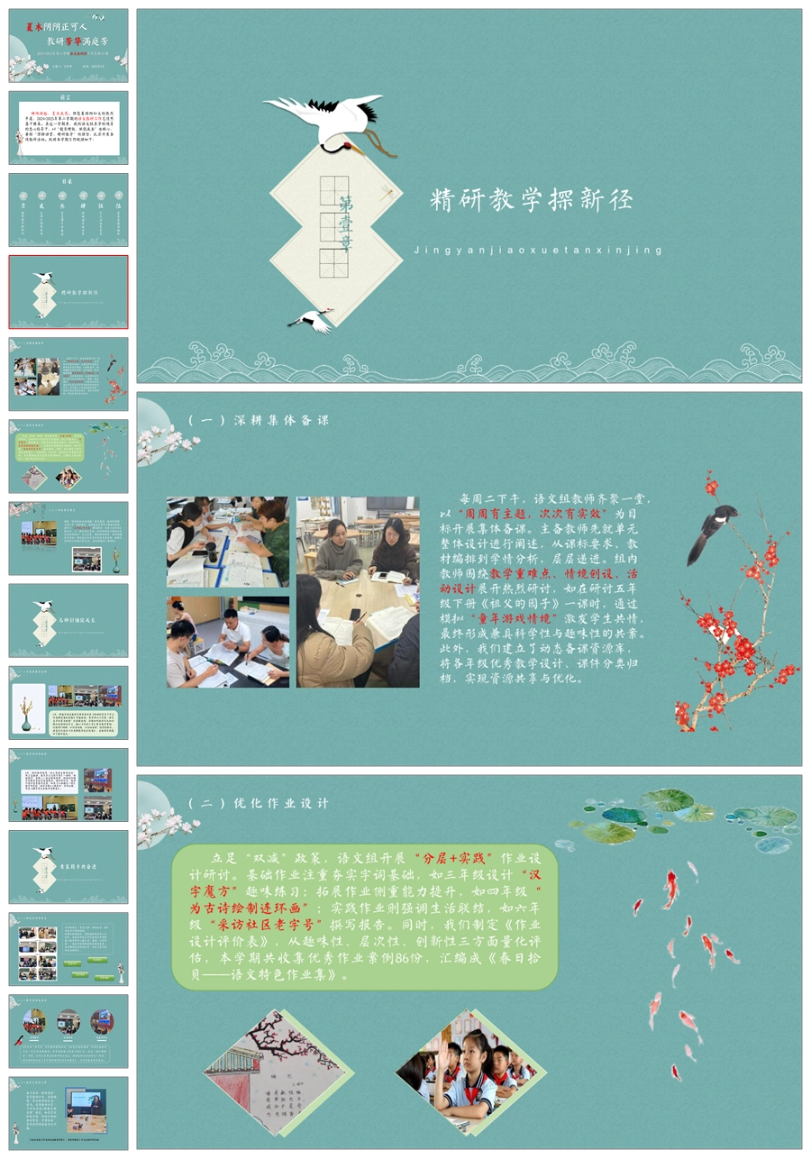 【5706】学校语文教研组工作总结《夏木阴阴正可人,教研芳华满庭芳》ppt课件+发言稿