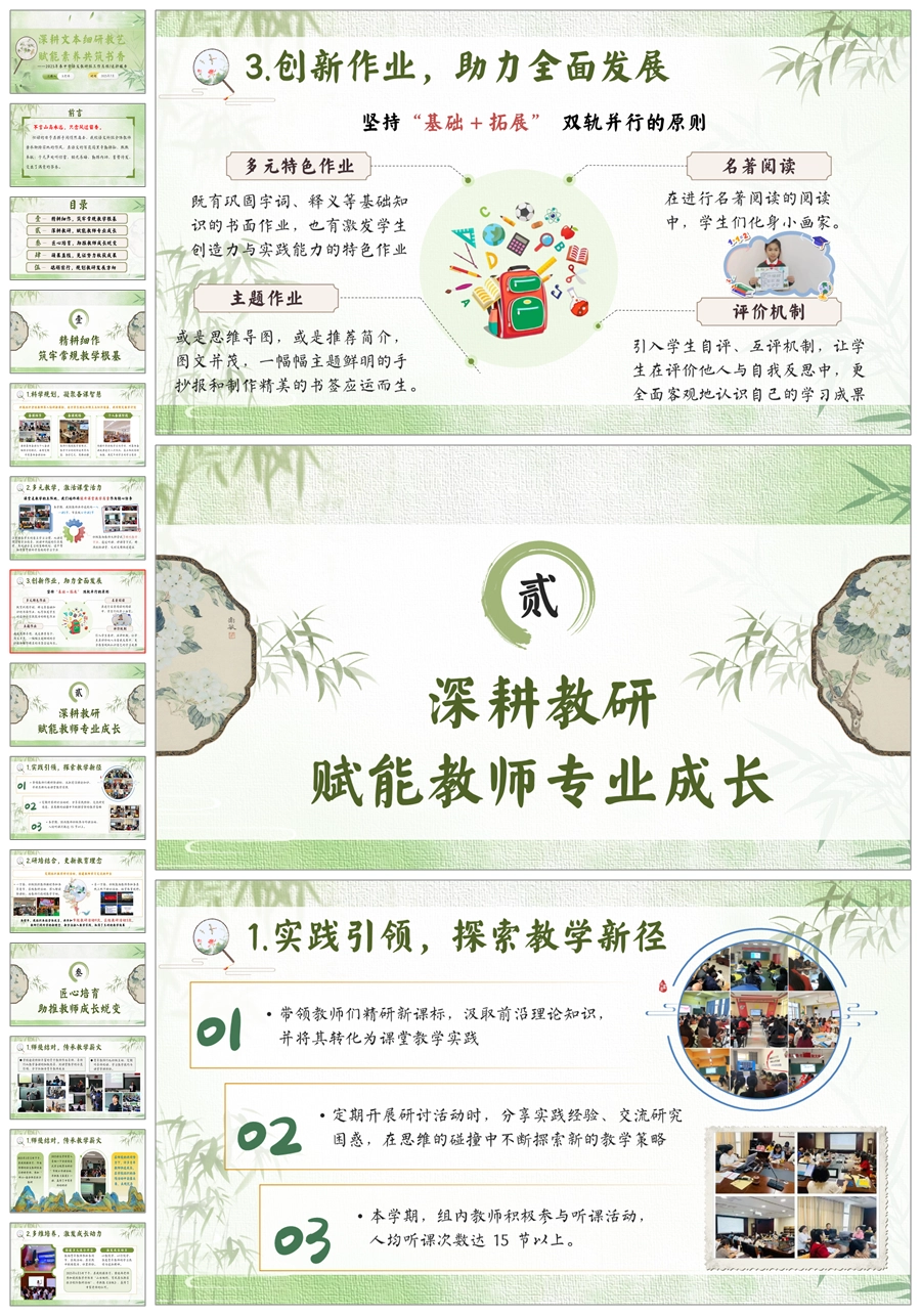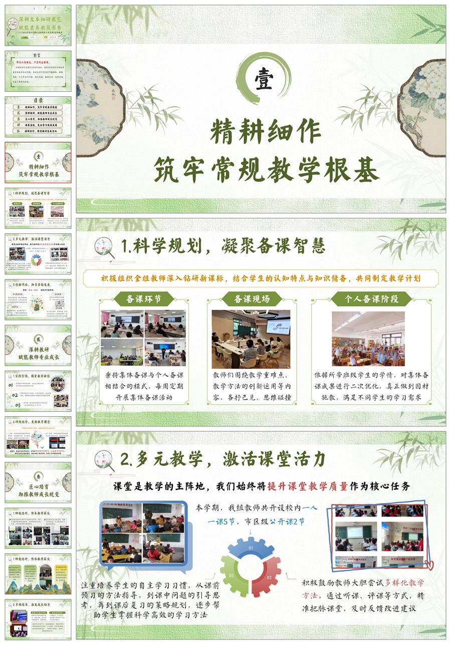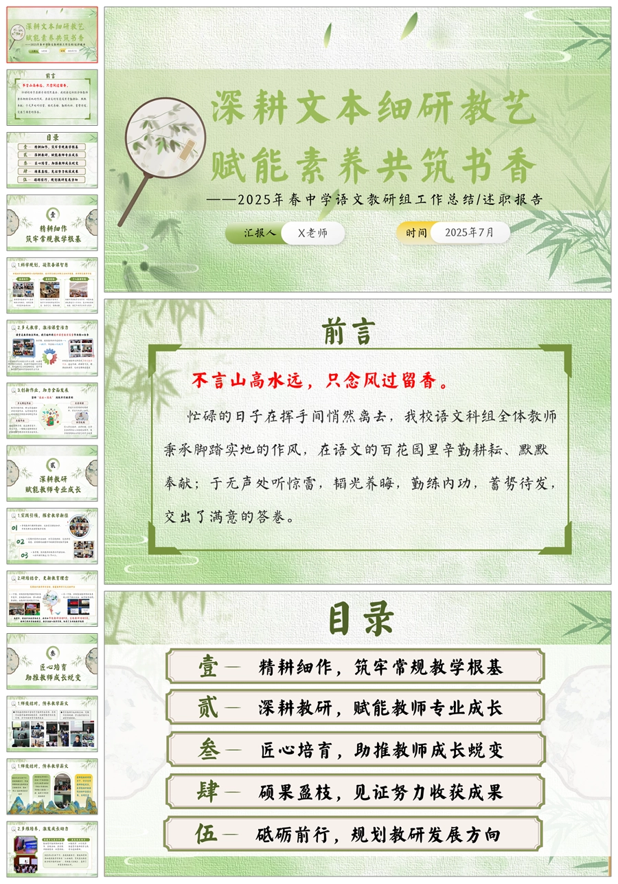 【5707】学校语文教研组工作总结《深耕文本细研教艺 赋能素养共筑书香》ppt课件+发言稿