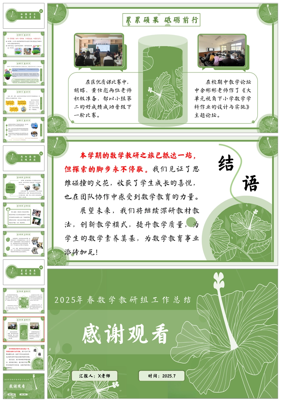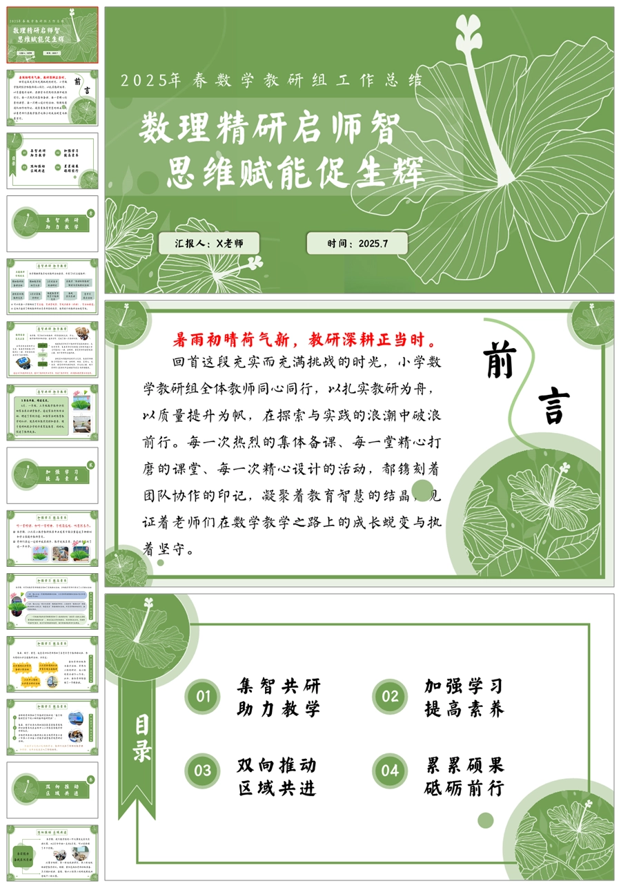 【5711】学校数学教研组工作总结《数理精研启师智 思维赋能促生辉》ppt课件+发言稿