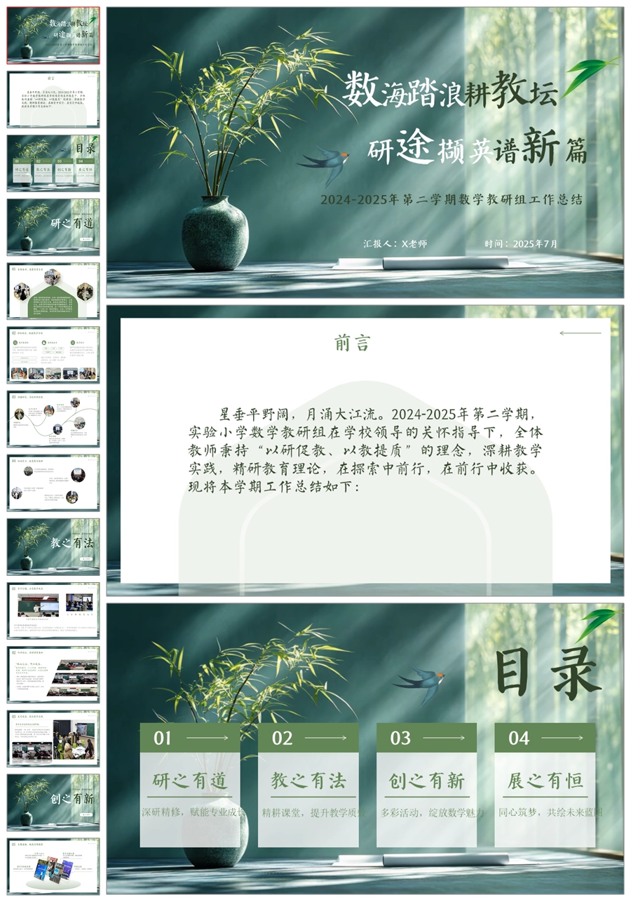 【5712】学校数学教研组工作总结《“数”海踏浪耕教坛,“研”途撷英谱新篇》ppt课件+发言稿
