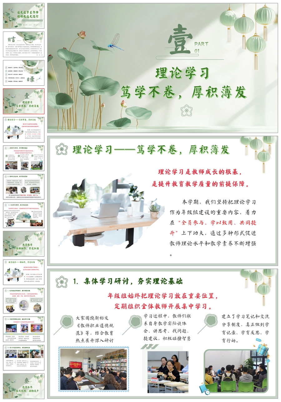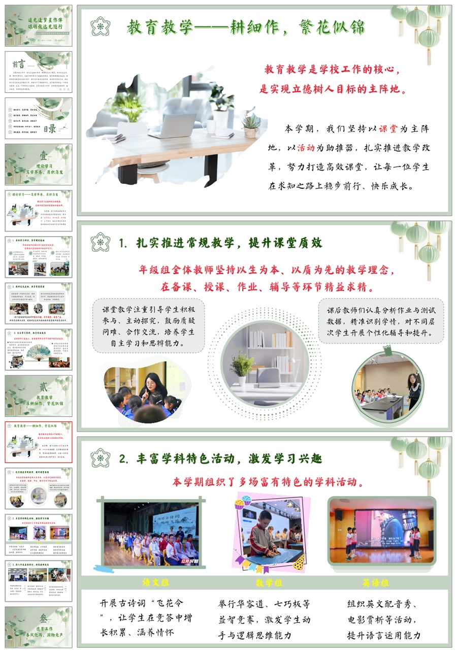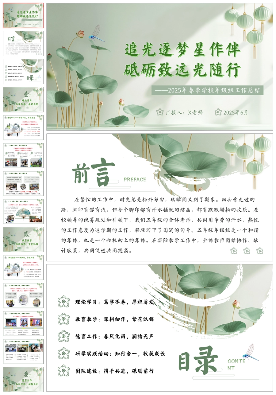 【5713】学校年级组工作总结《追光逐梦星作伴 砥砺致远光随行》ppt课件+发言稿