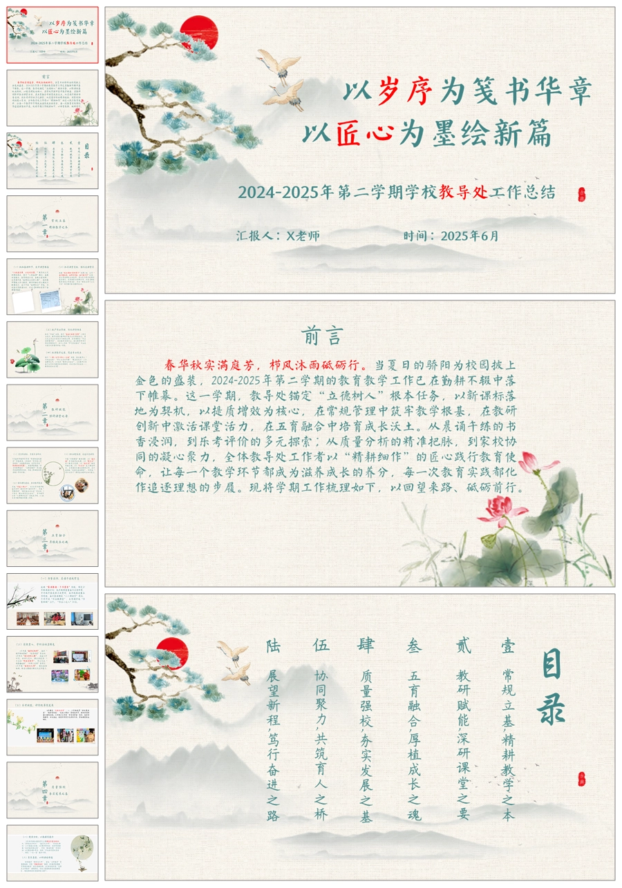 【5715】学校教导处工作总结《以岁序为笺书华章,以匠心为墨绘新篇》ppt课件+发言稿