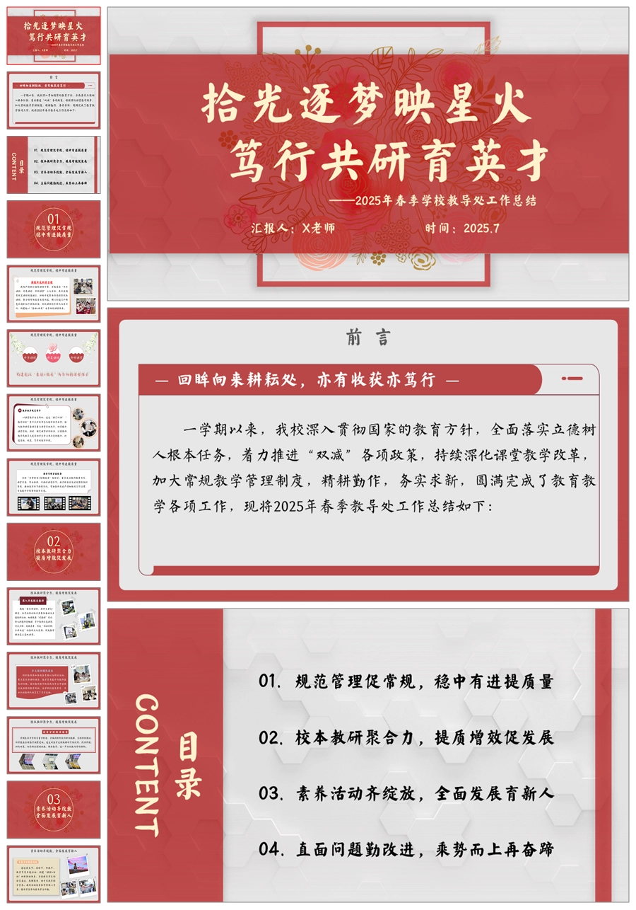 【5716】学校教导处工作总结《拾光逐梦映星火 笃行共研育英才》ppt课件+发言稿