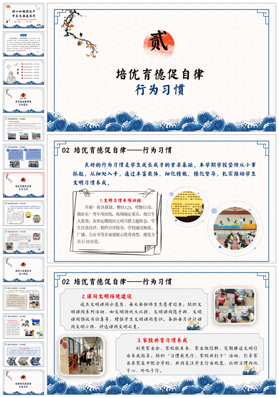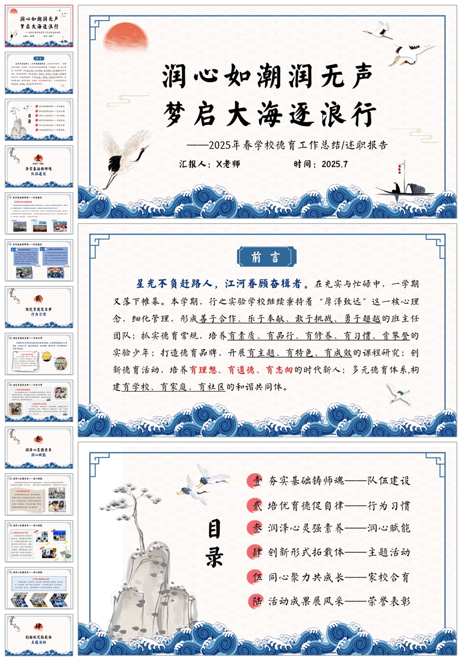 【5723】学校德育工作总结《润心如潮润无声 梦启大海逐浪行》ppt课件+发言稿