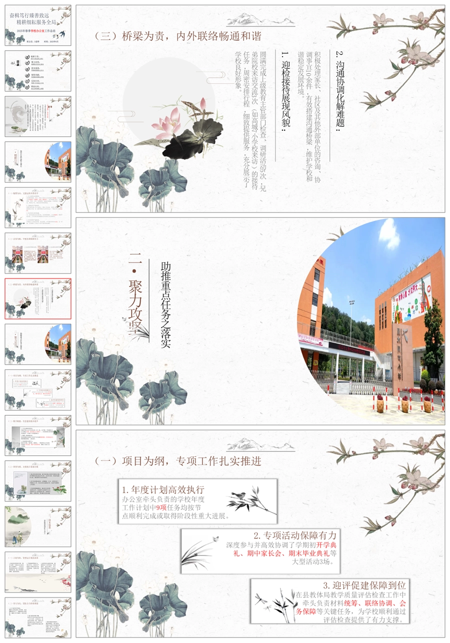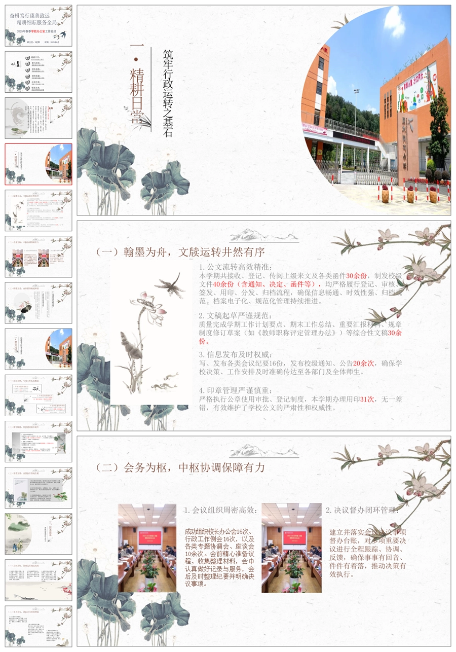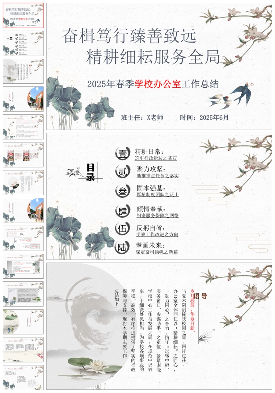 【5725】学校办公室工作总结《奋楫笃行臻善致远,精耕细耘服务全局》ppt课件+发言稿