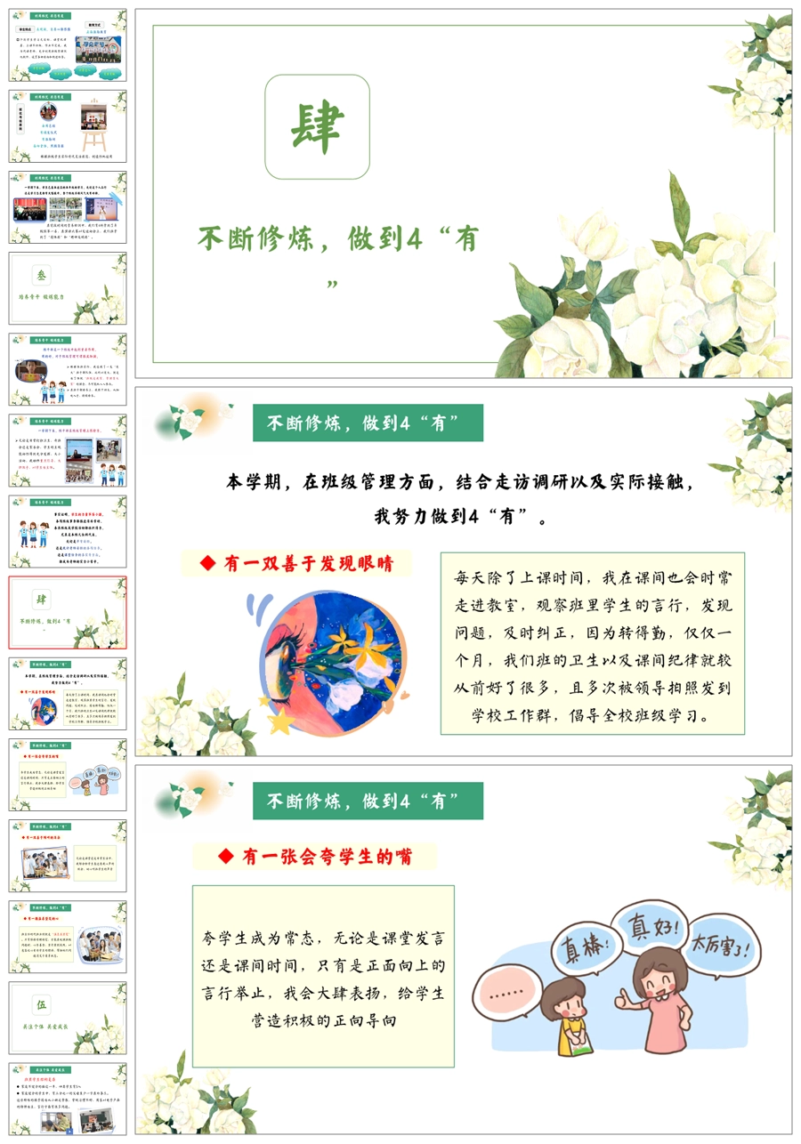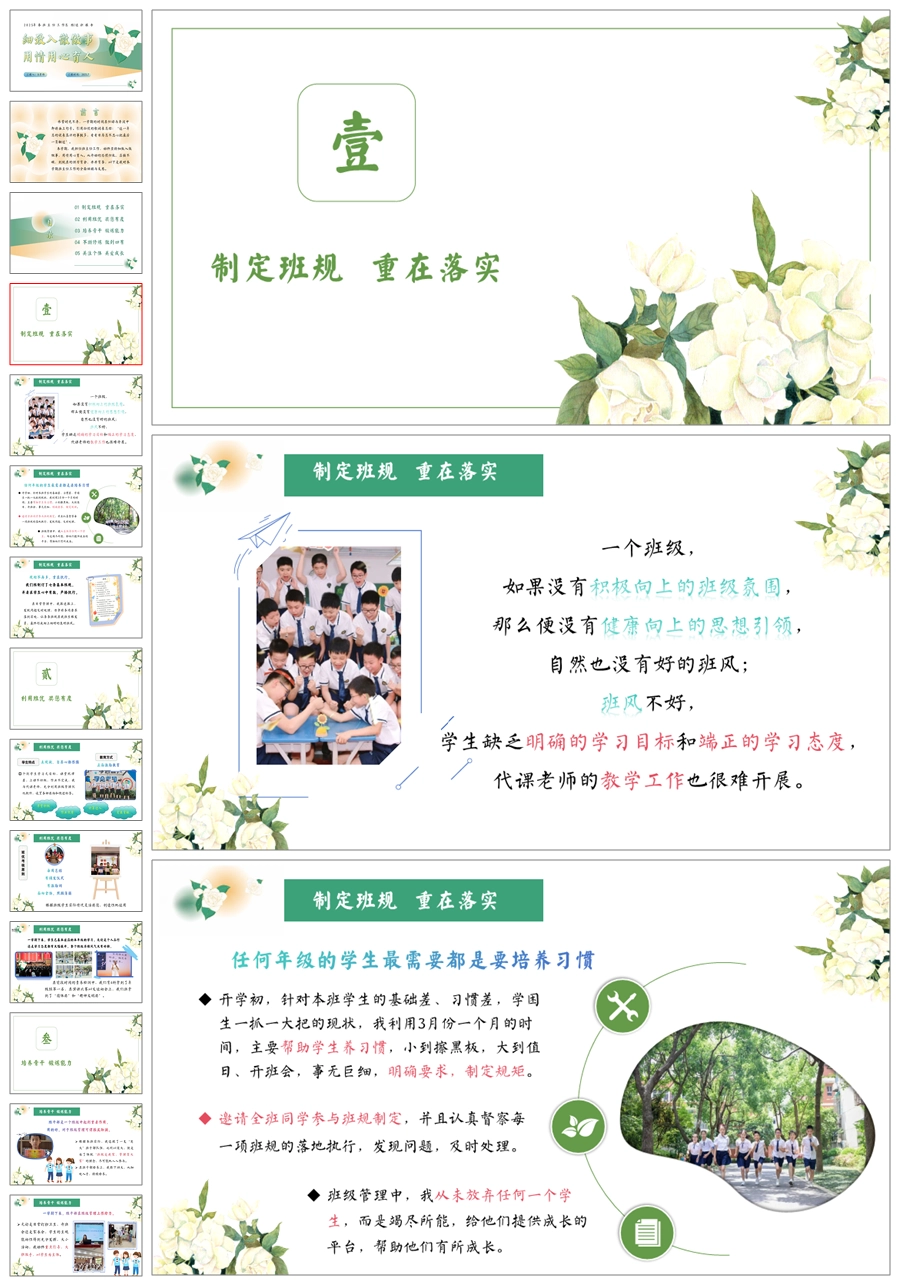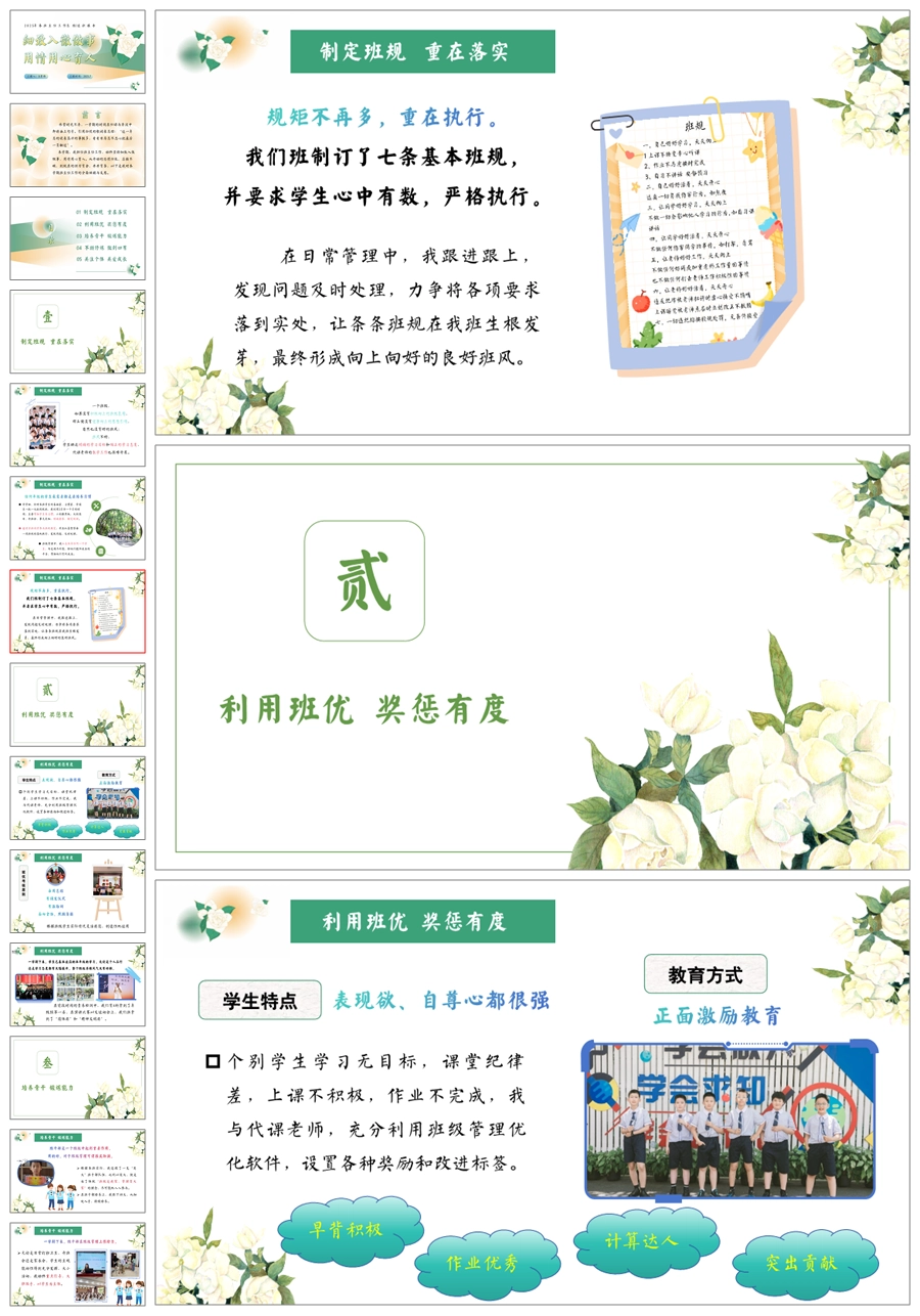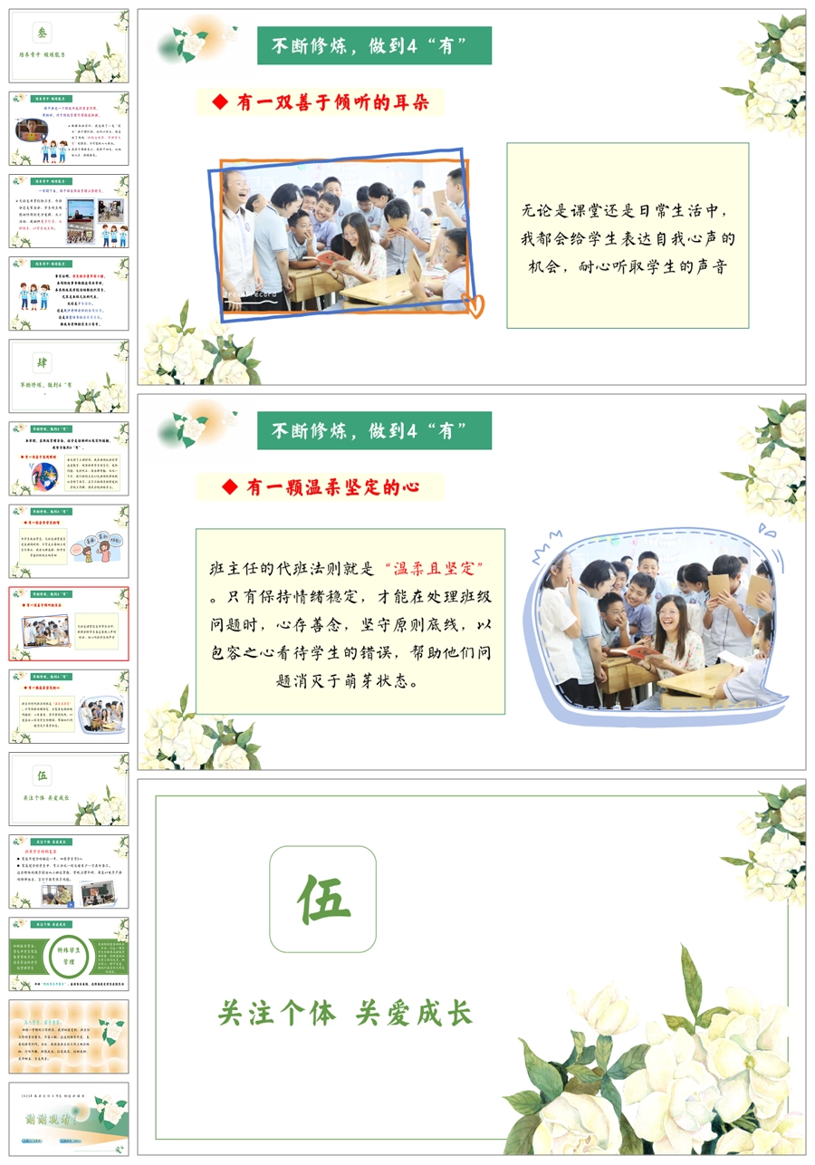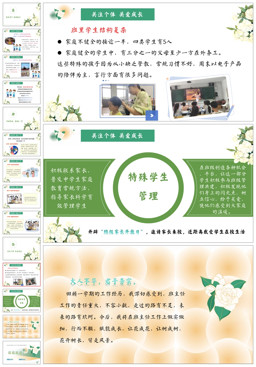 【5729】班主任工作总结《细致入微做事 用情用心育人》ppt课件+发言稿