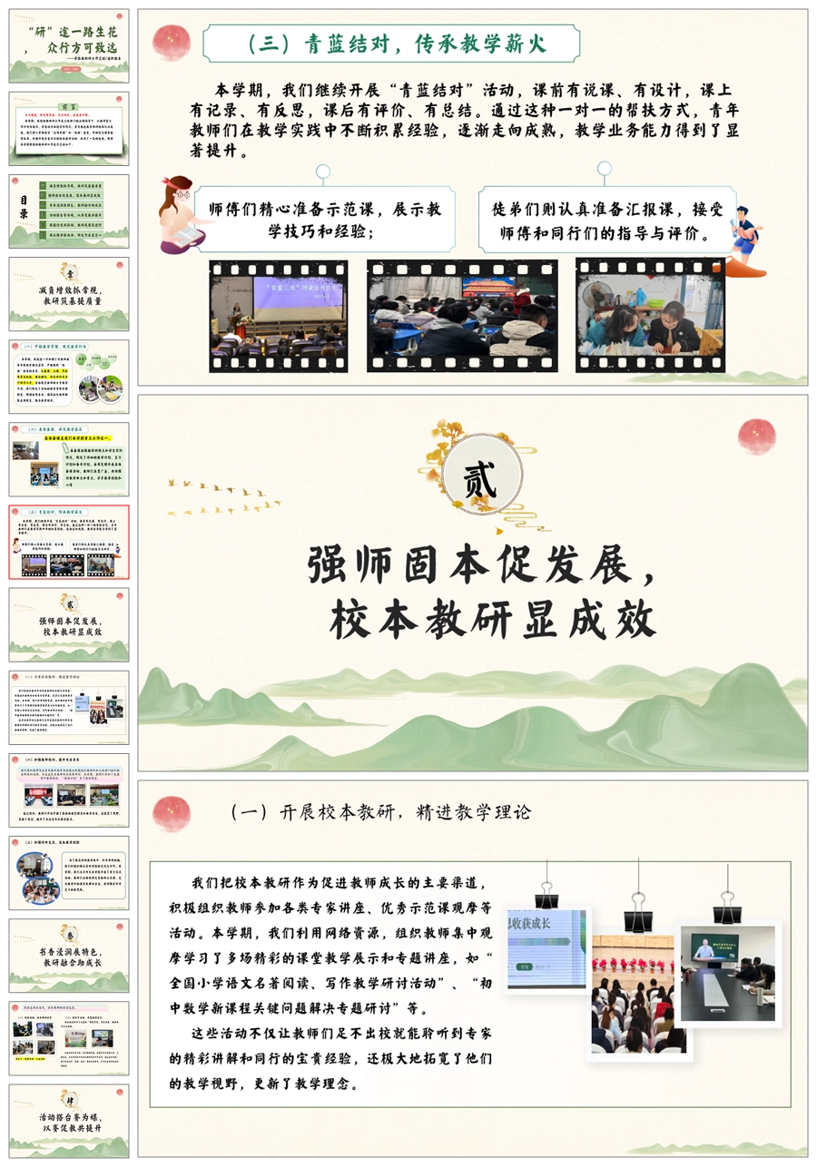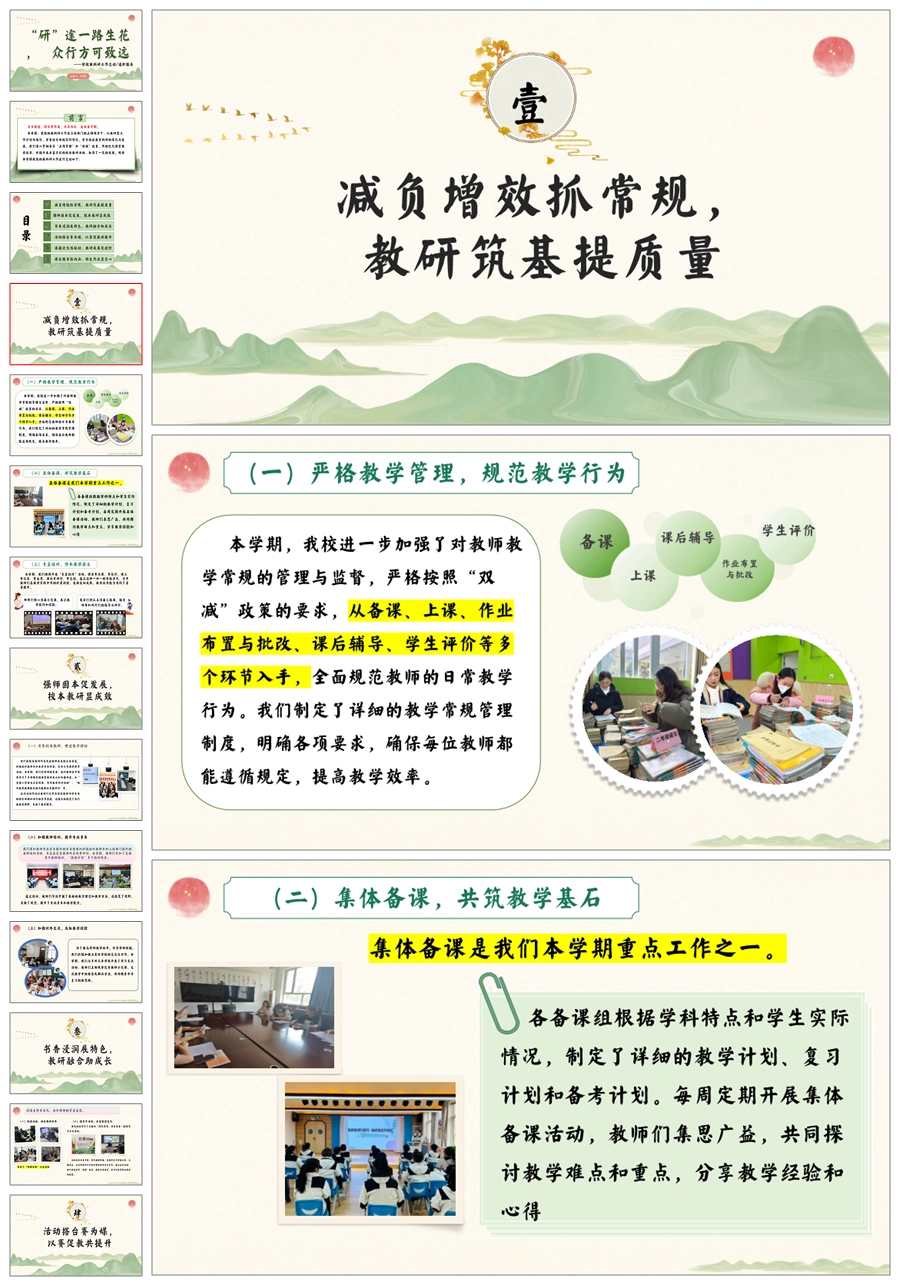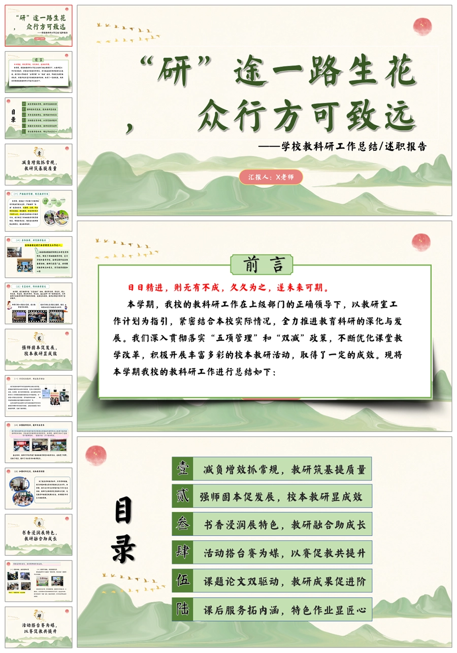 【5731】《“研”途一路生花,众行方可致远》学校教科研工作总结ppt课件+发言稿