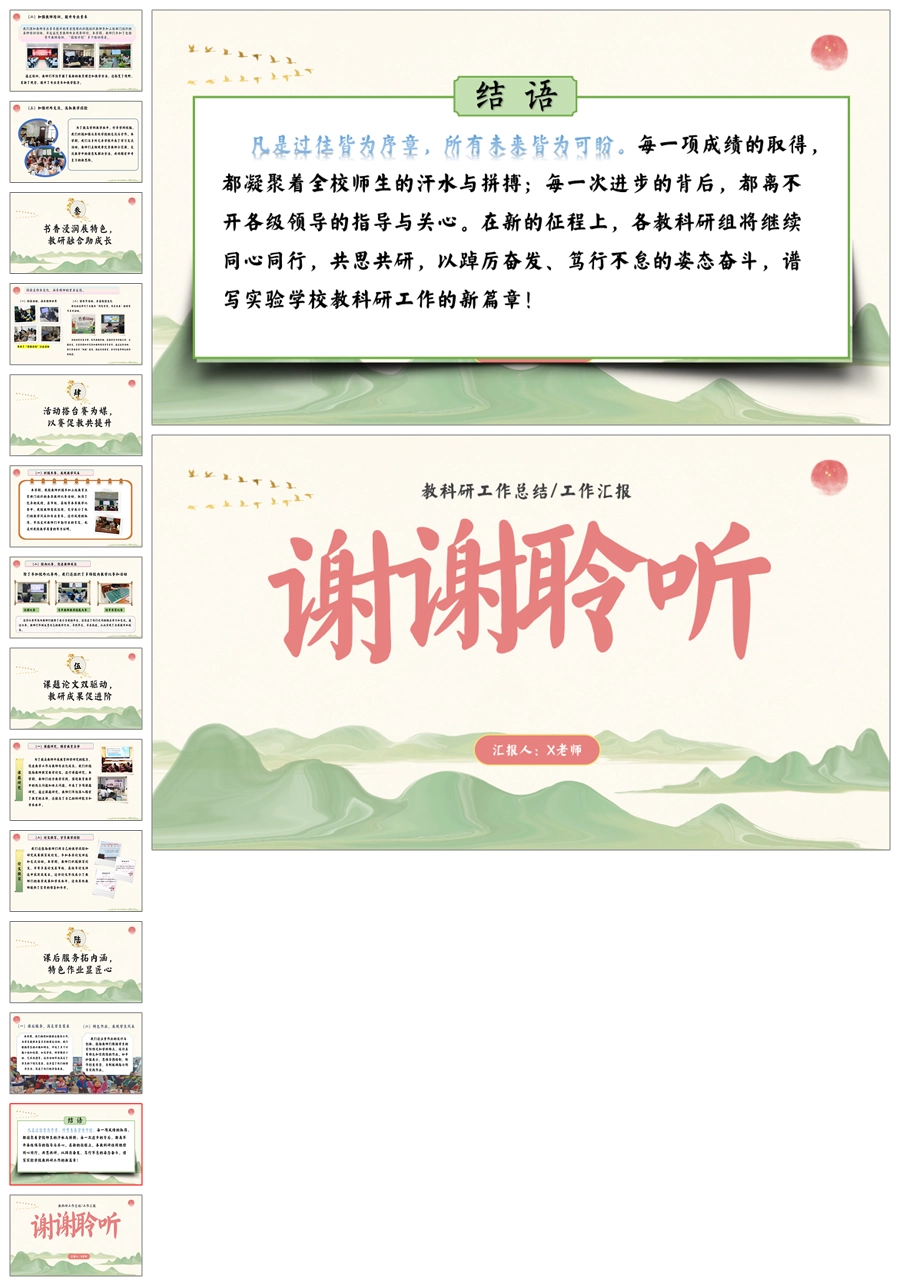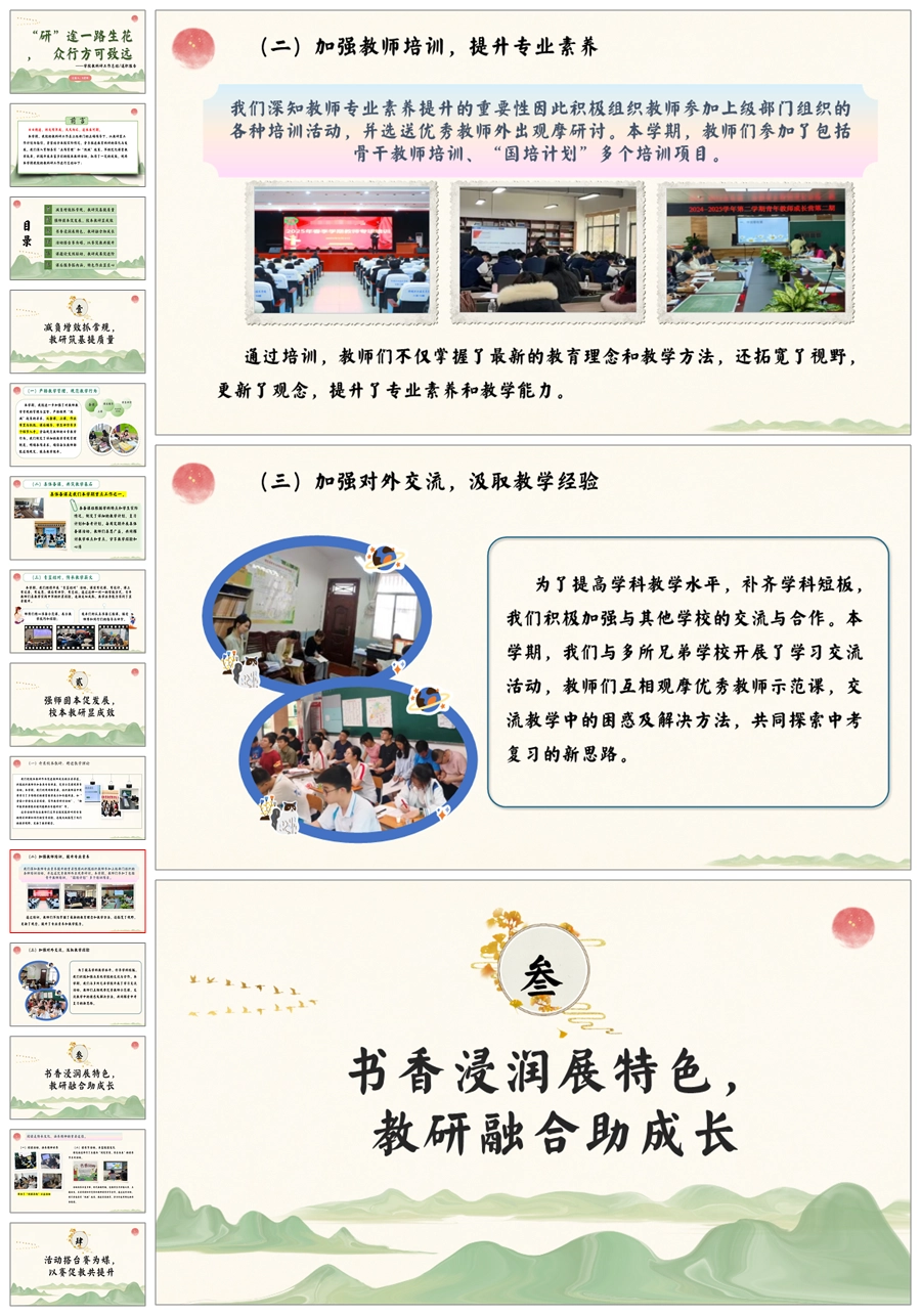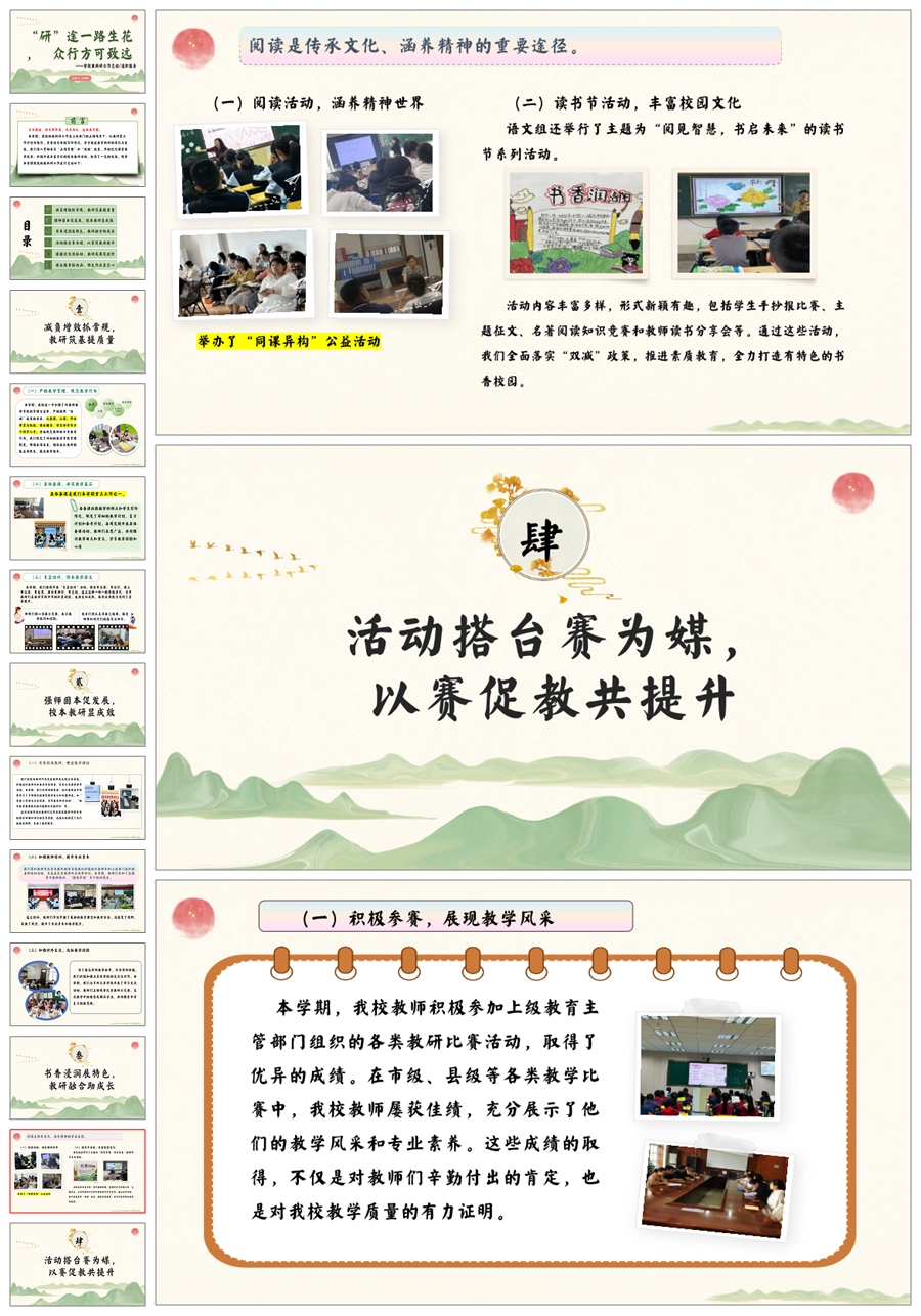 【5731】《“研”途一路生花,众行方可致远》学校教科研工作总结ppt课件+发言稿