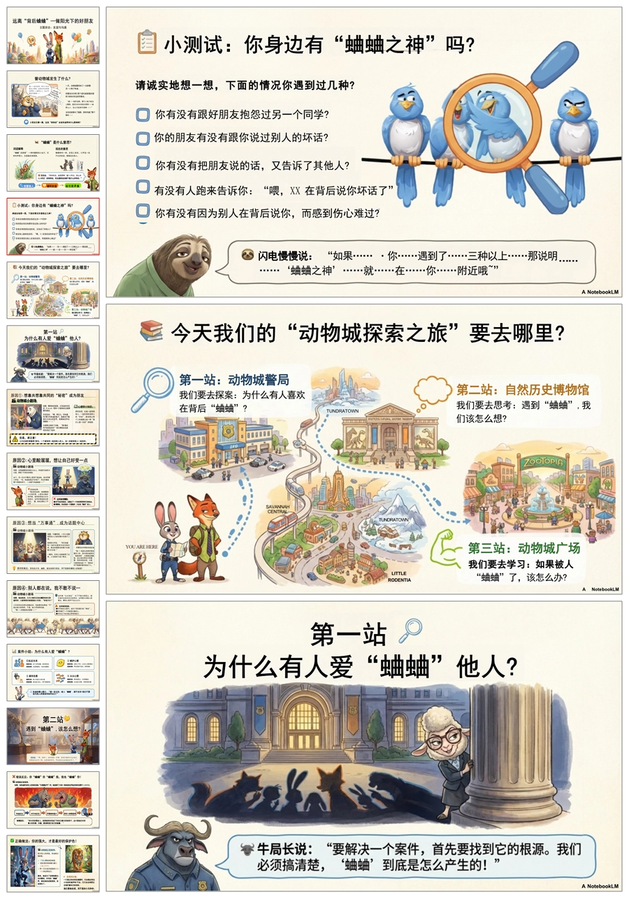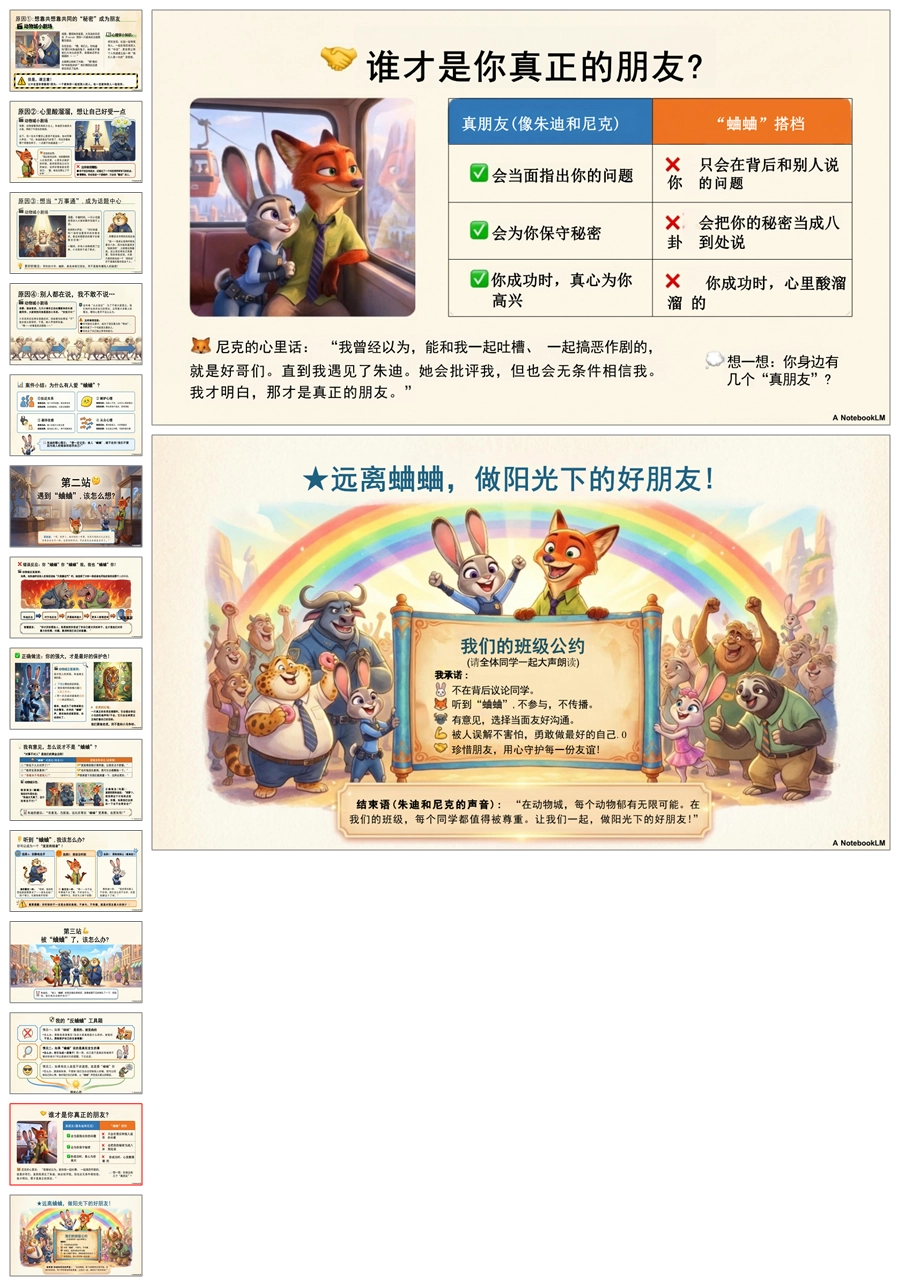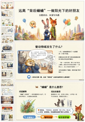 【5732】《疯狂动物城_远离背后蛐蛐_阳光下的友谊》友谊与沟通主题班会PPT课件+教案