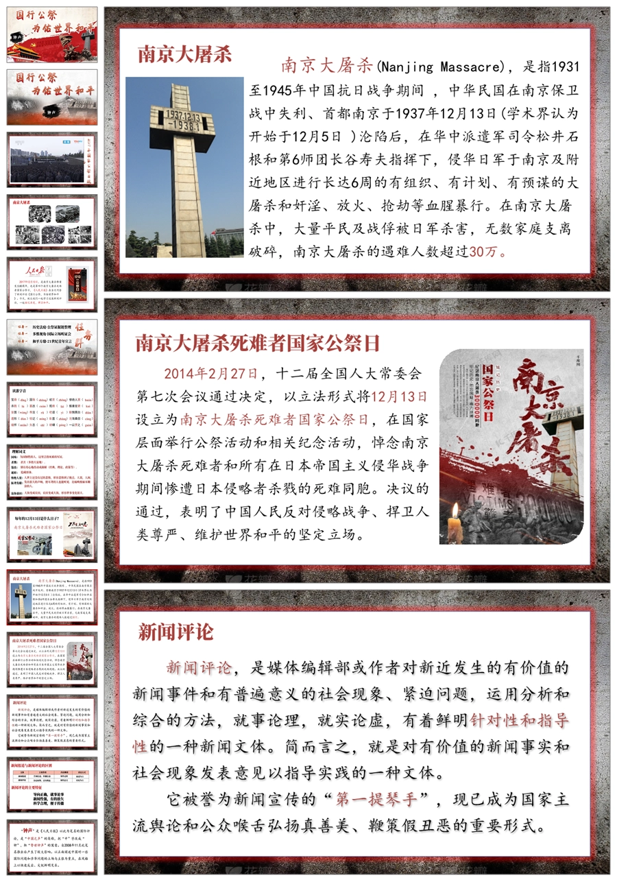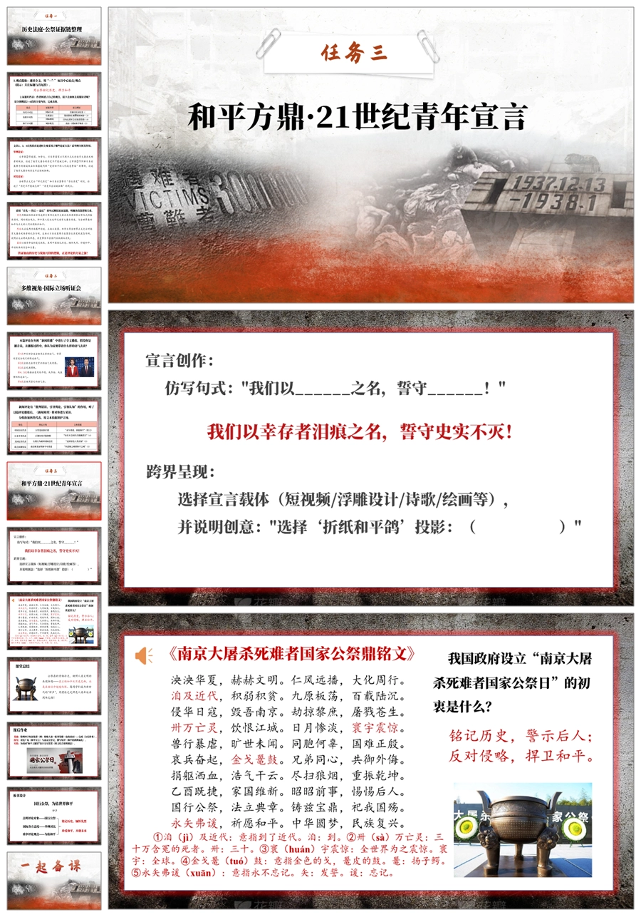 【5735】国家公祭日《国行公祭,为佑世界和平》爱国主义教育主题班会PPT课件+视频+教案