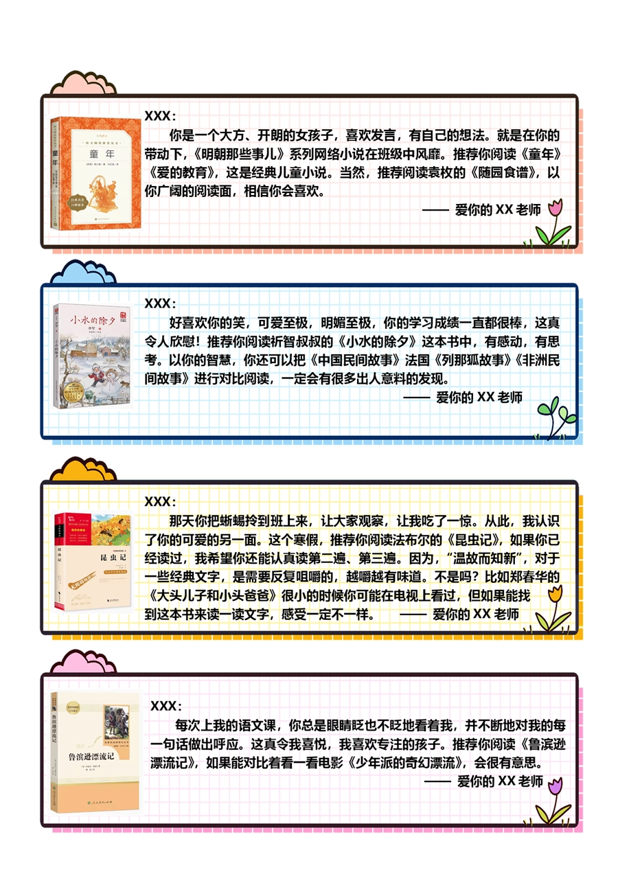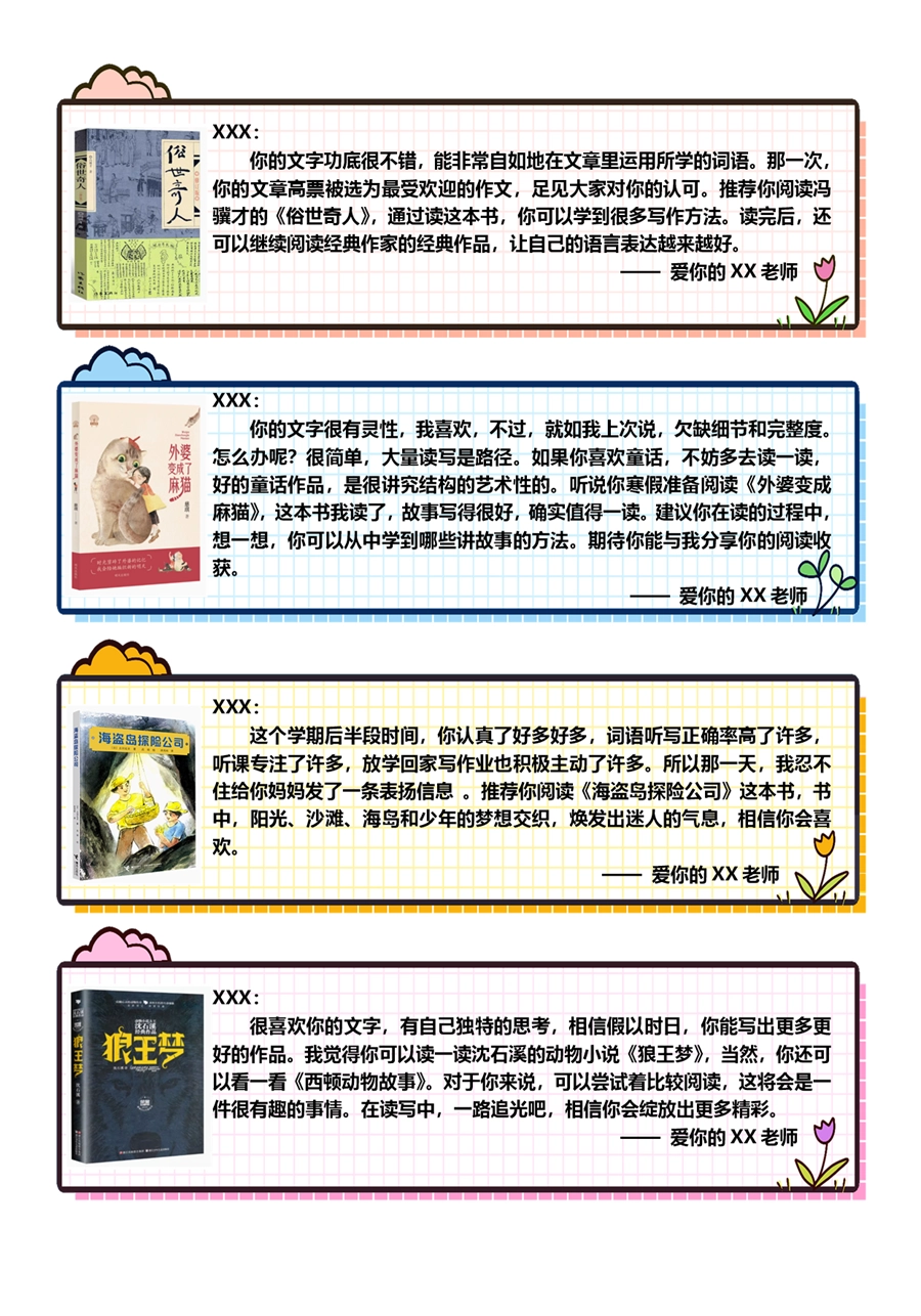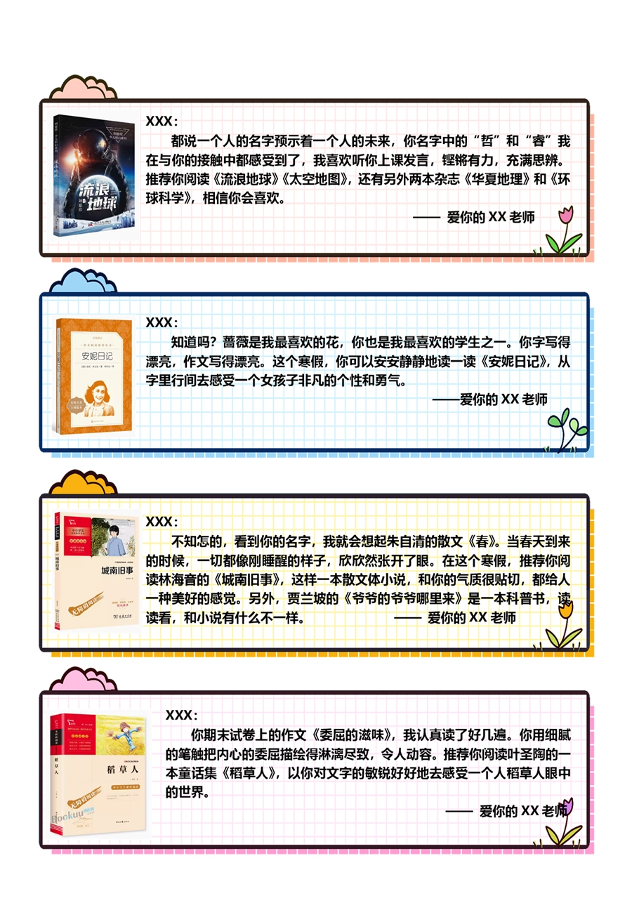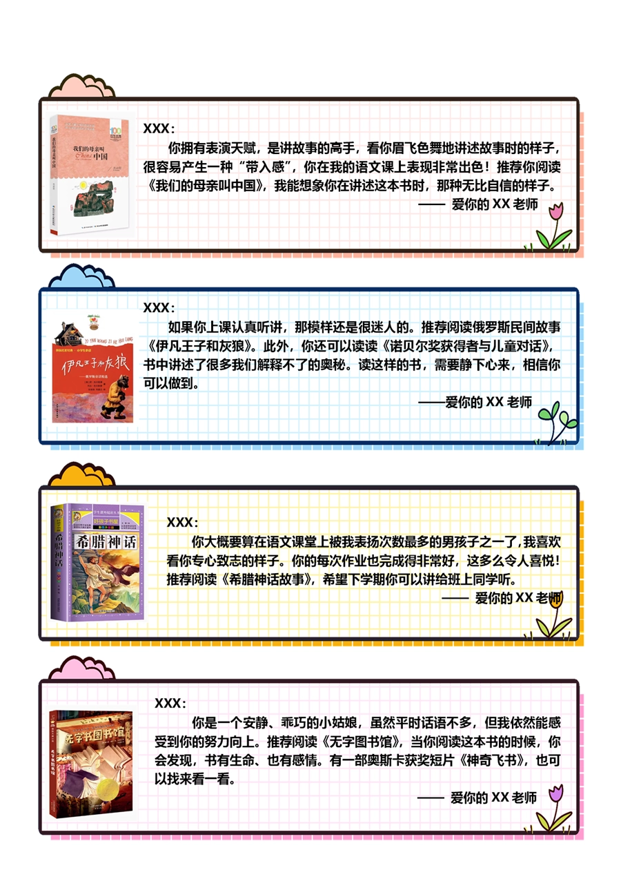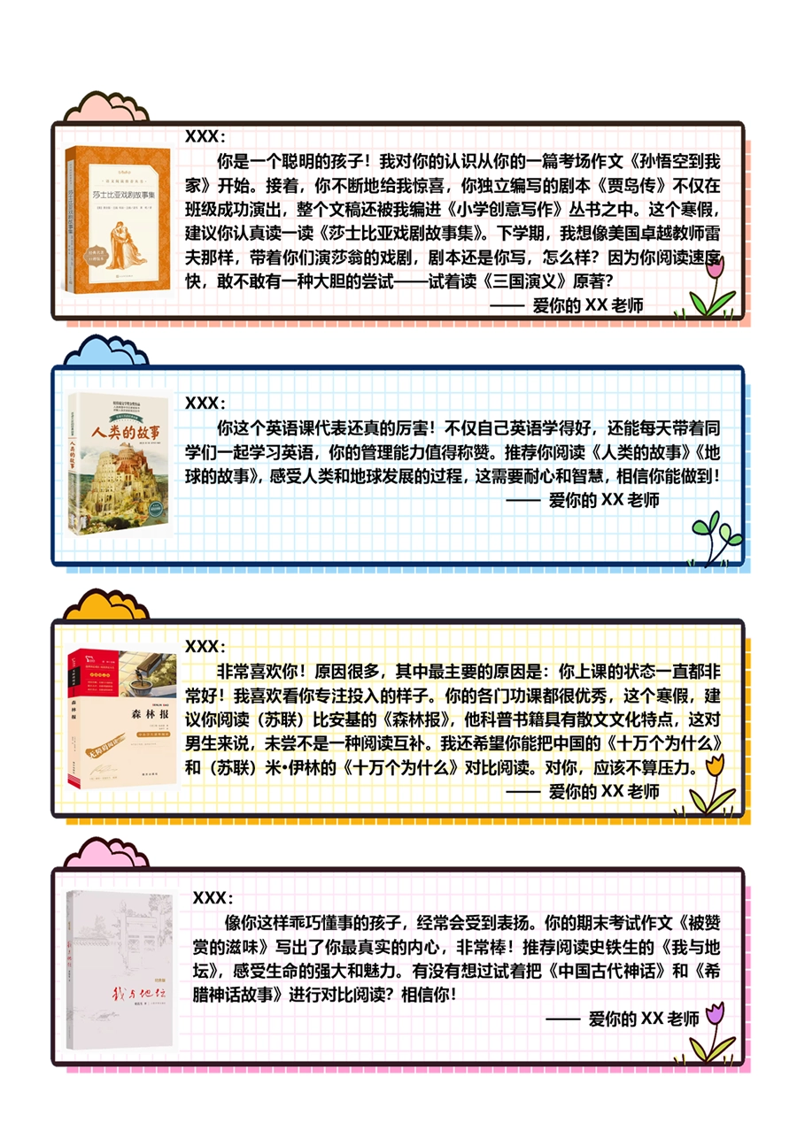 【期末学生评语】【书单推荐】80则语文期末评语-样式1