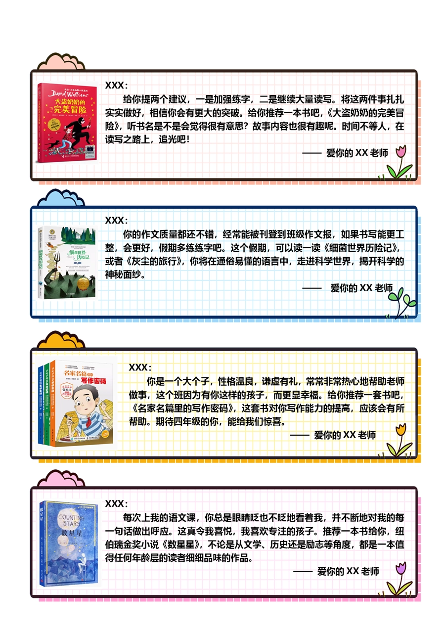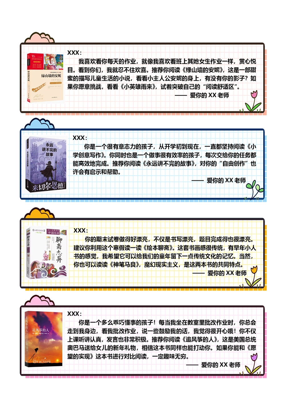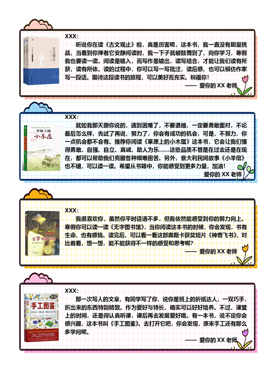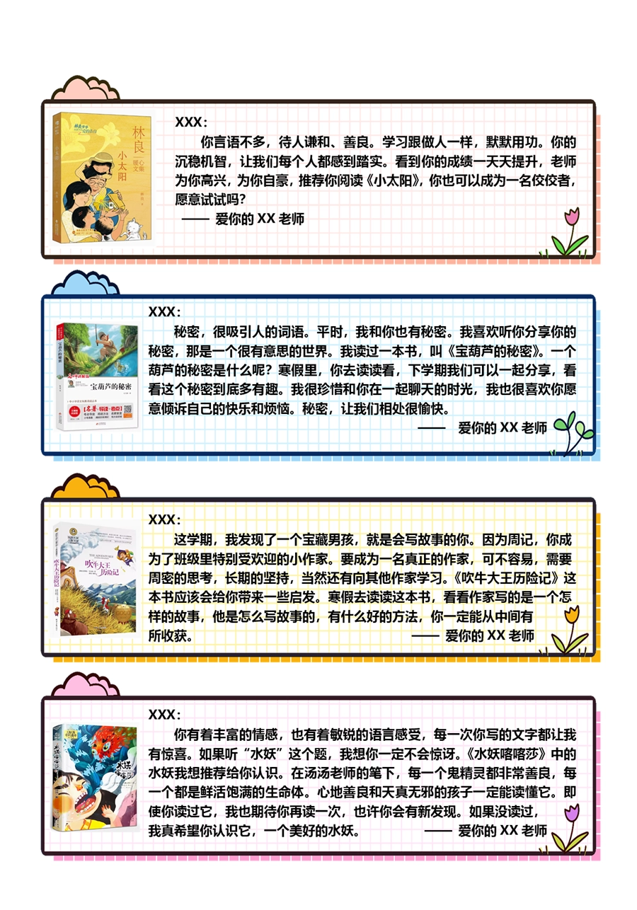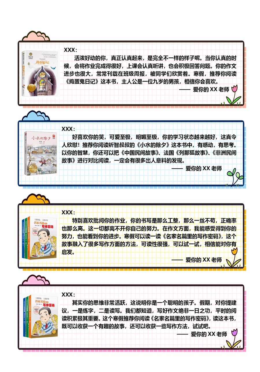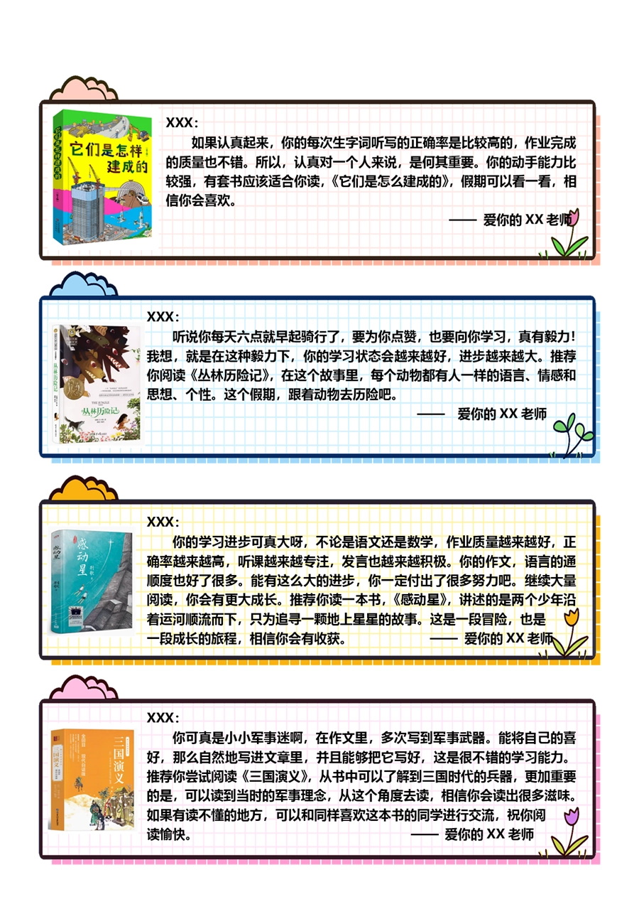 【期末学生评语】【书单推荐】80则语文期末评语-样式1