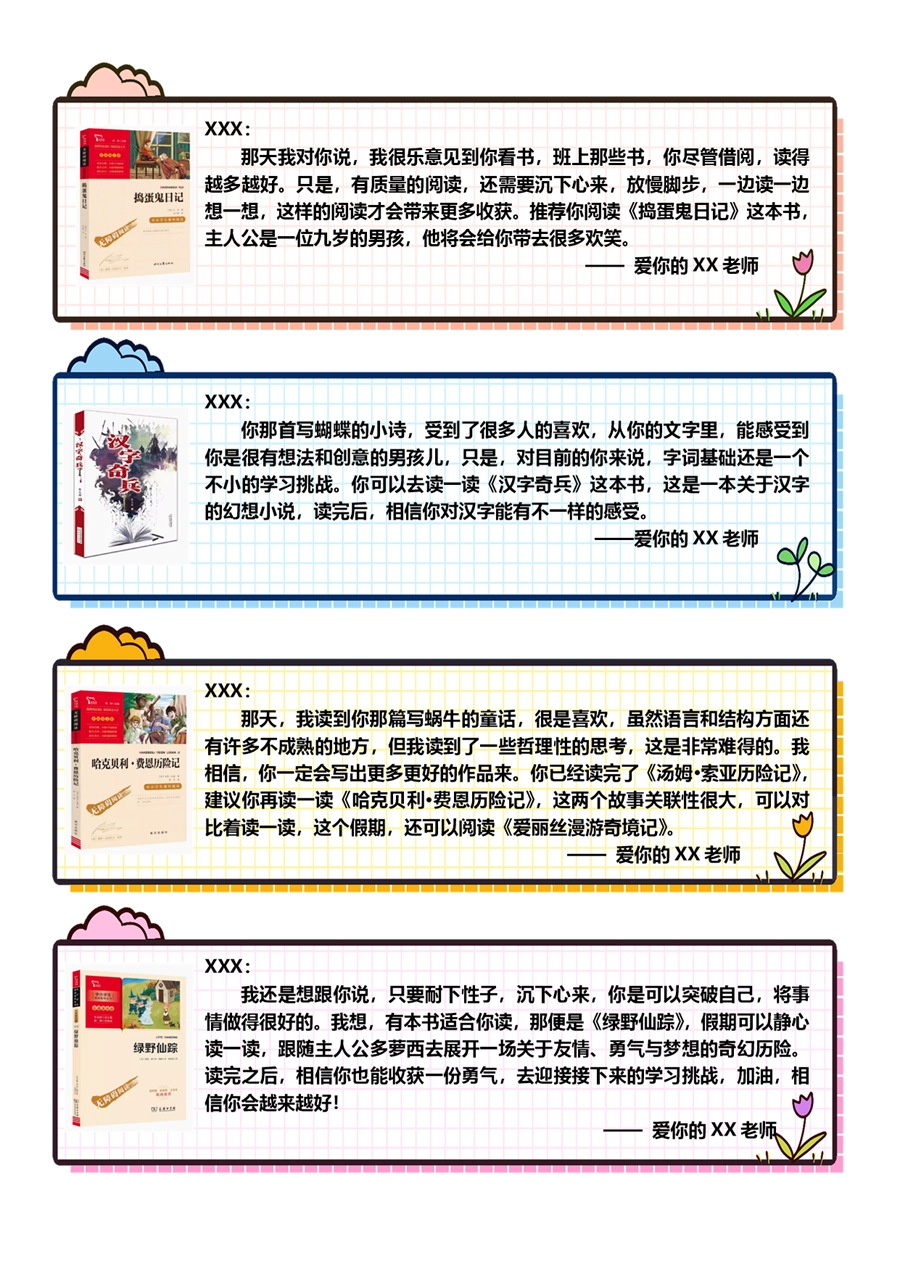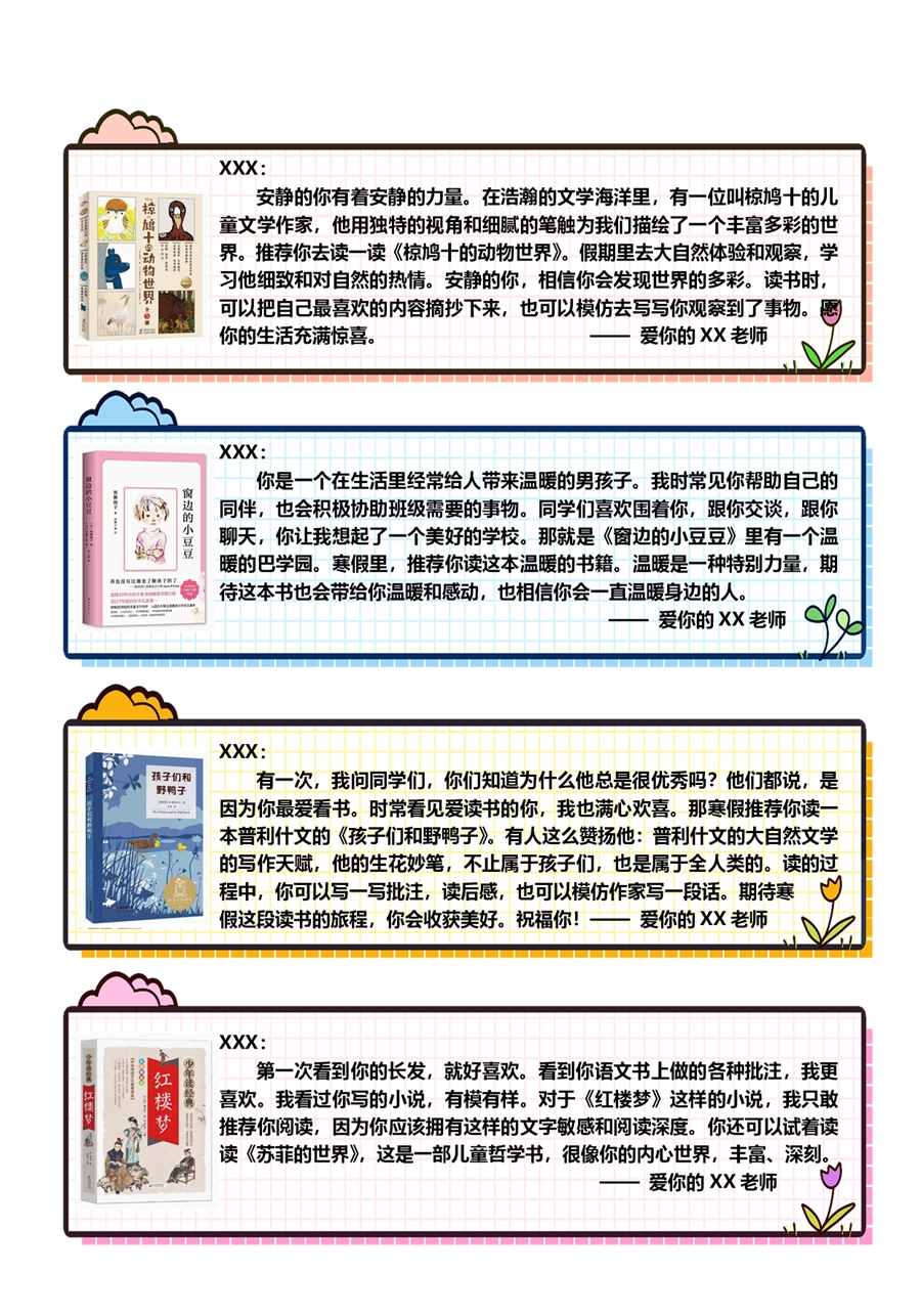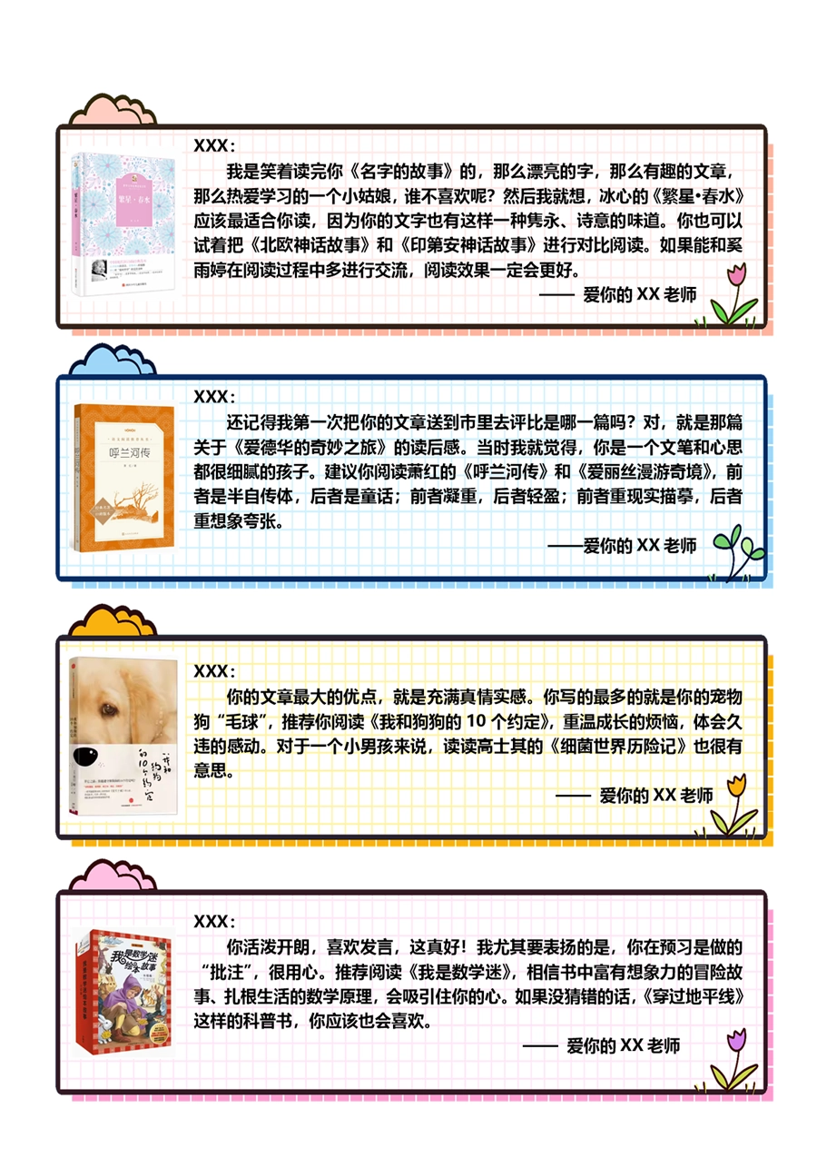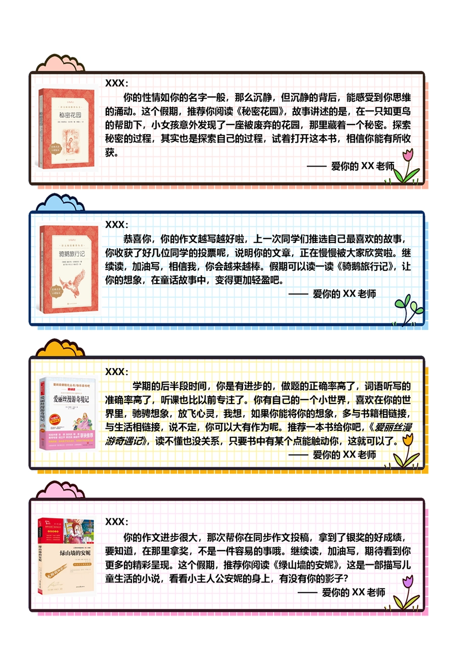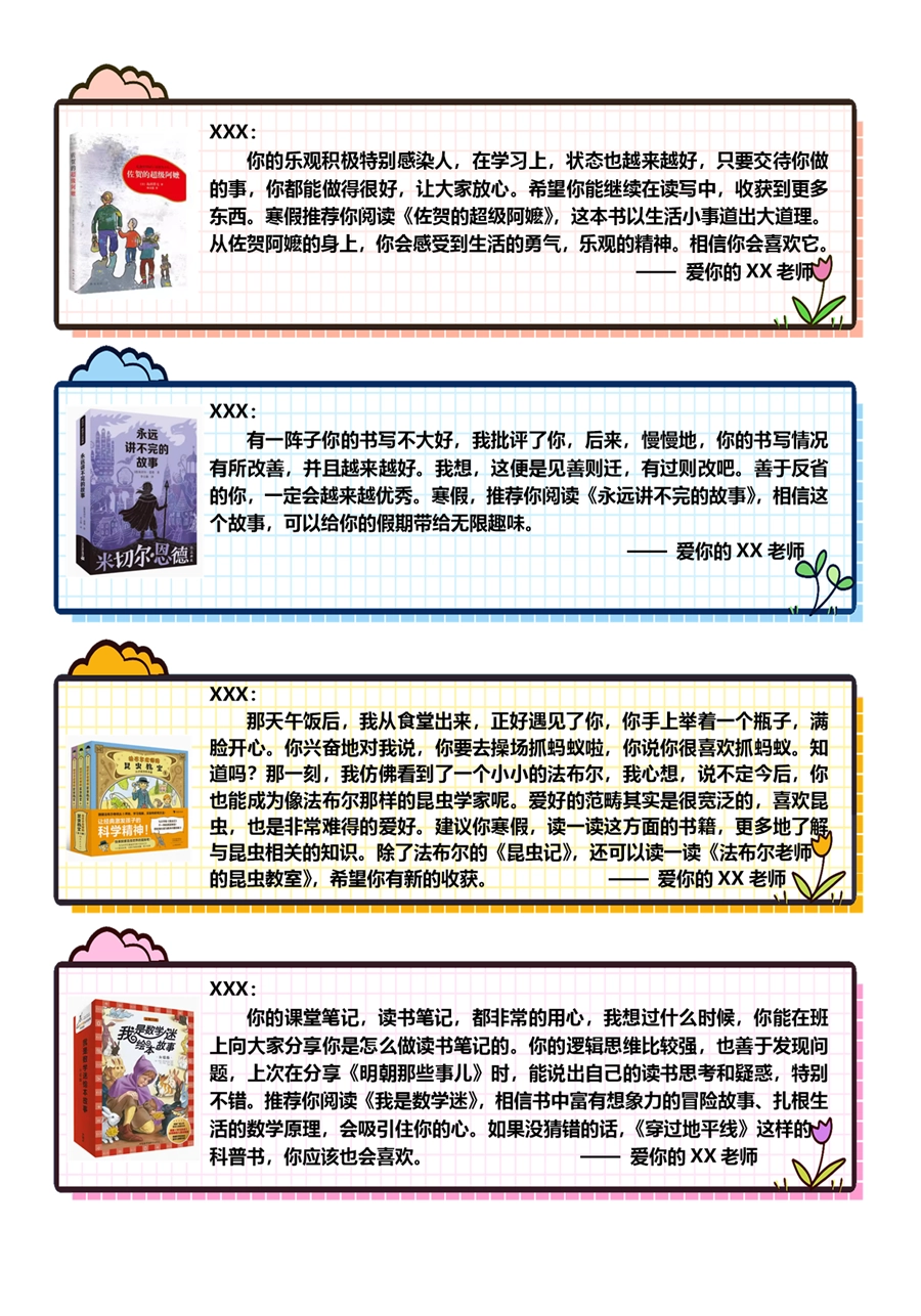 【期末学生评语】【书单推荐】80则语文期末评语-样式1