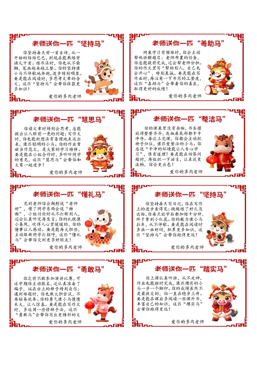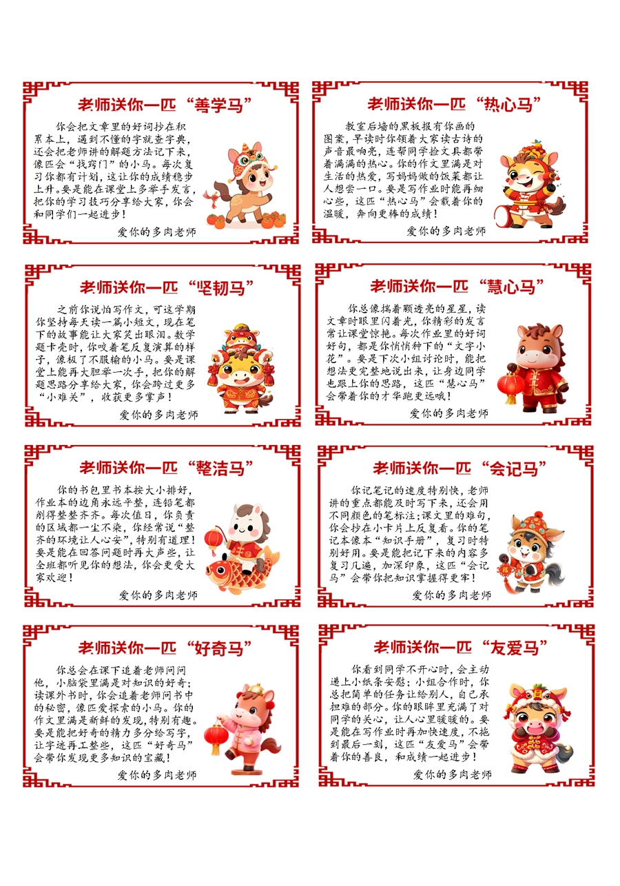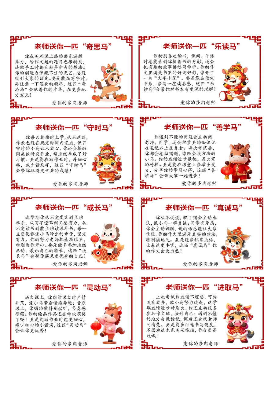 【期末学生评语】【老师送你一匹马】期末评语64则