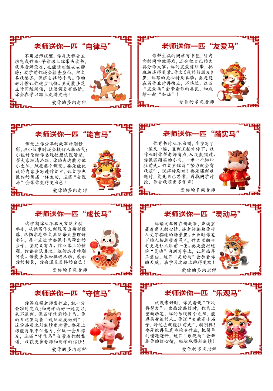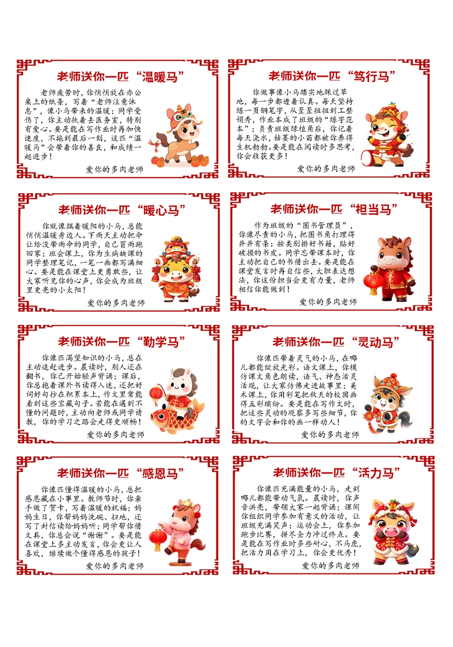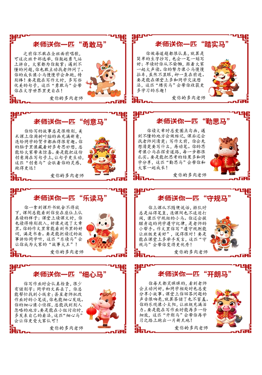 【期末学生评语】【老师送你一匹马】期末评语64则