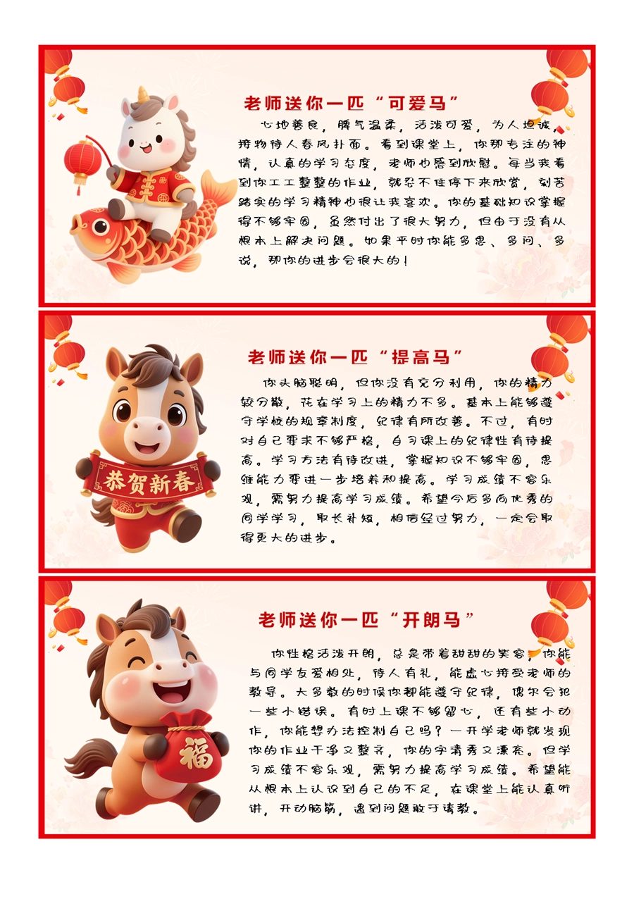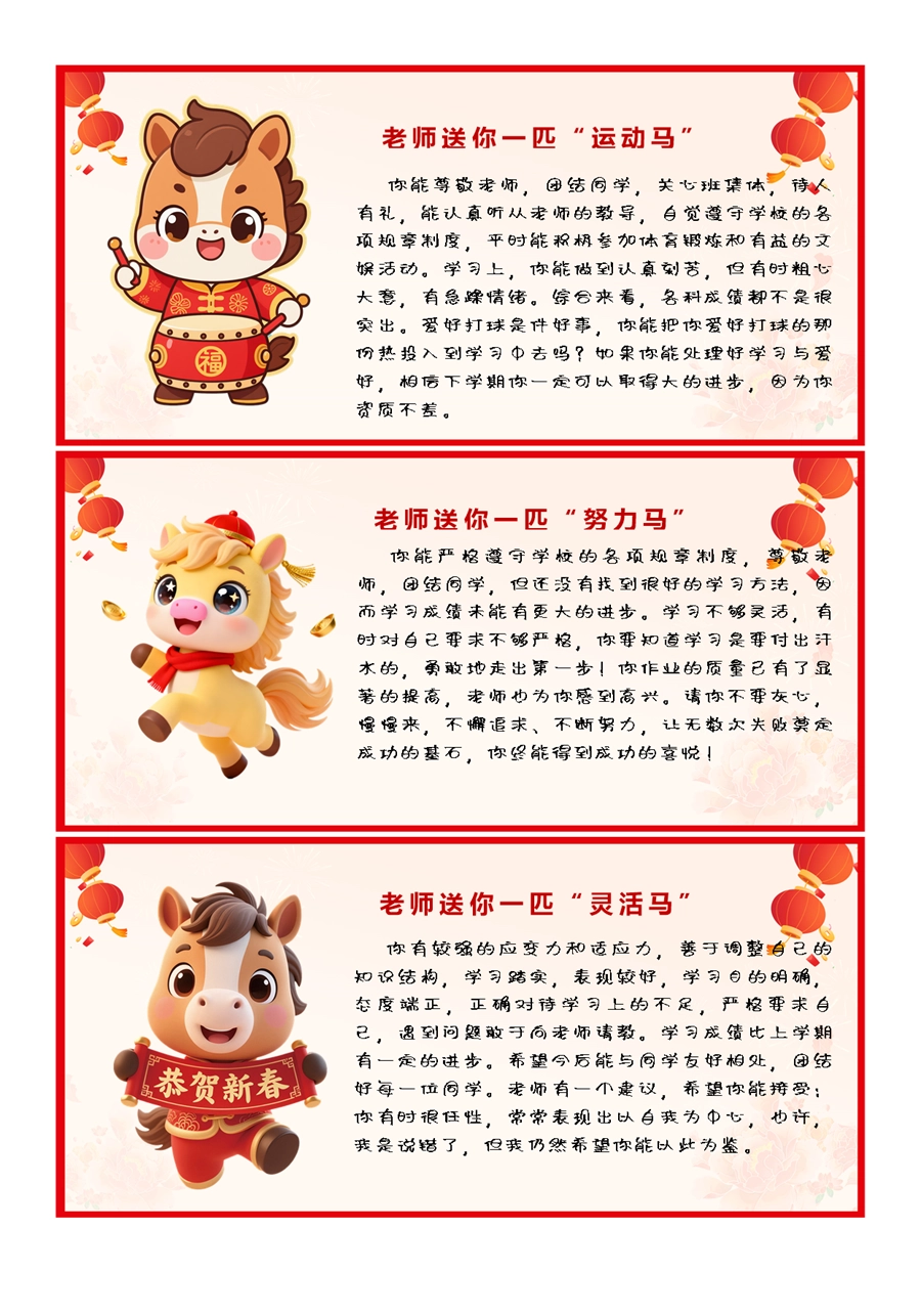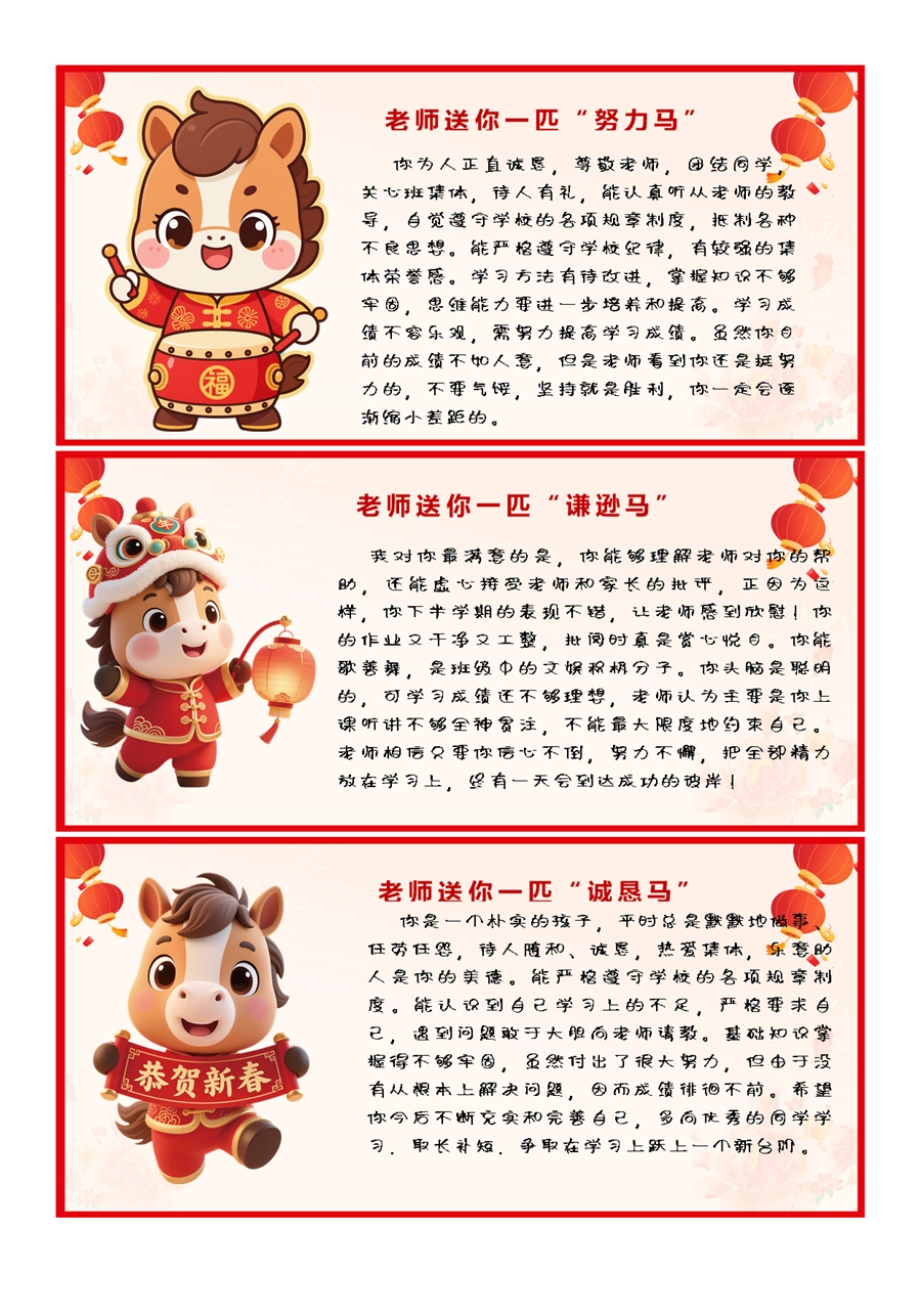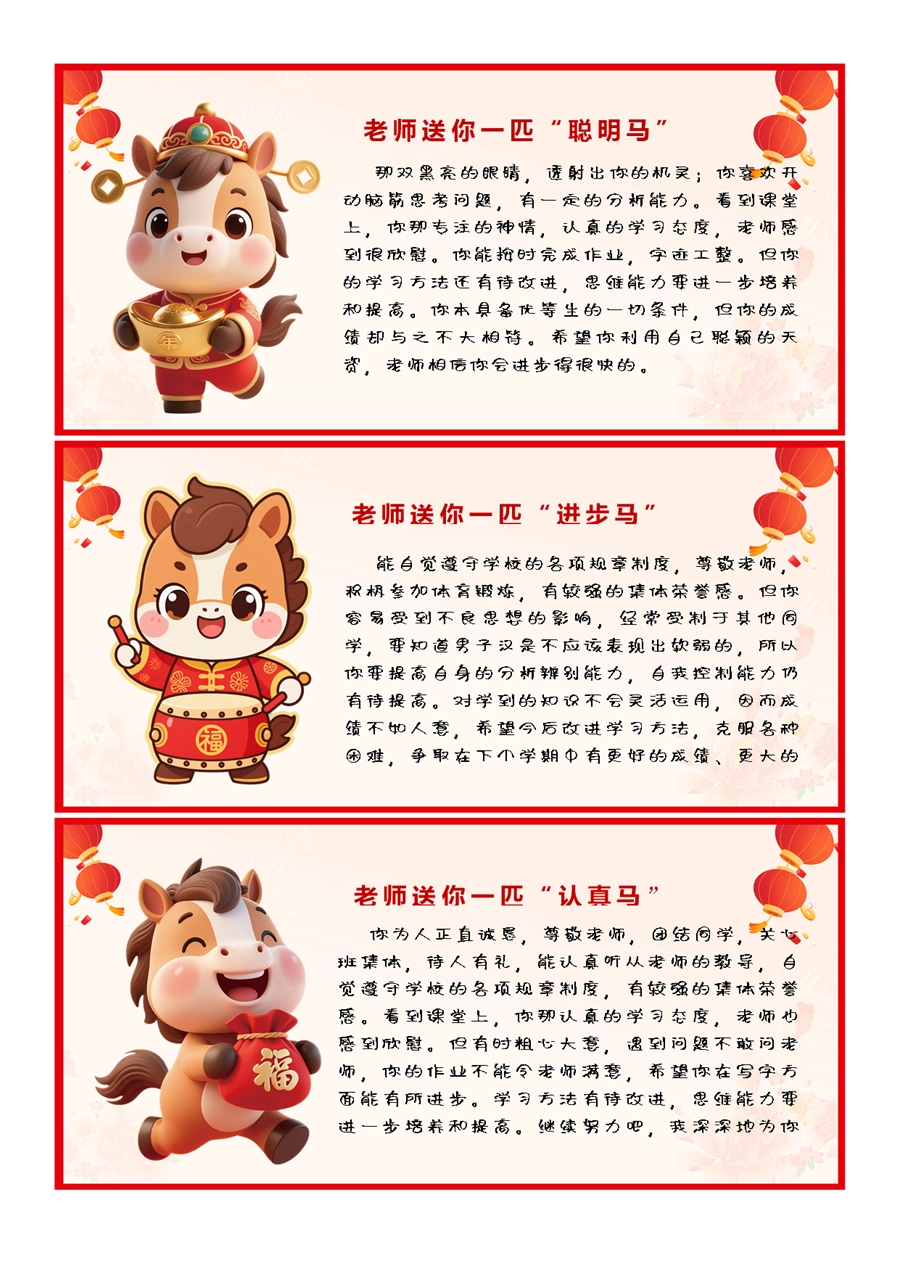 【期末学生评语】2026马年卡通特色评语(45条)