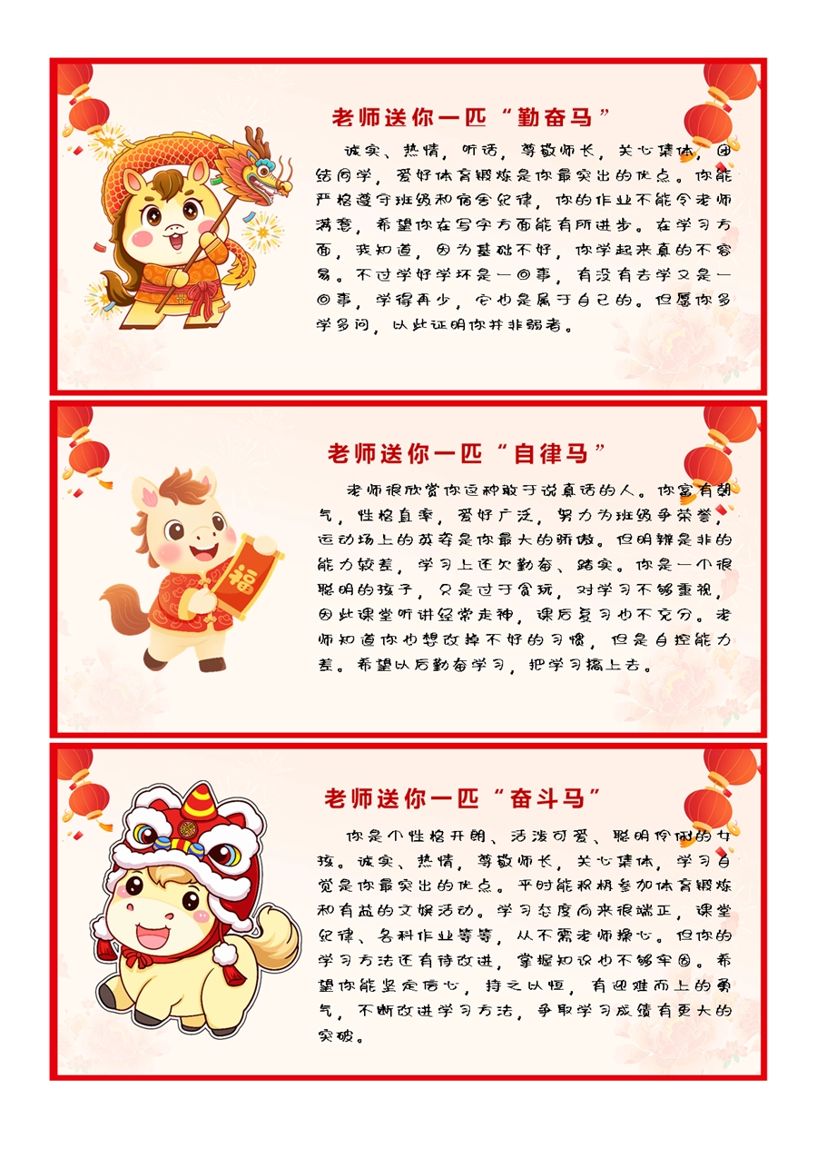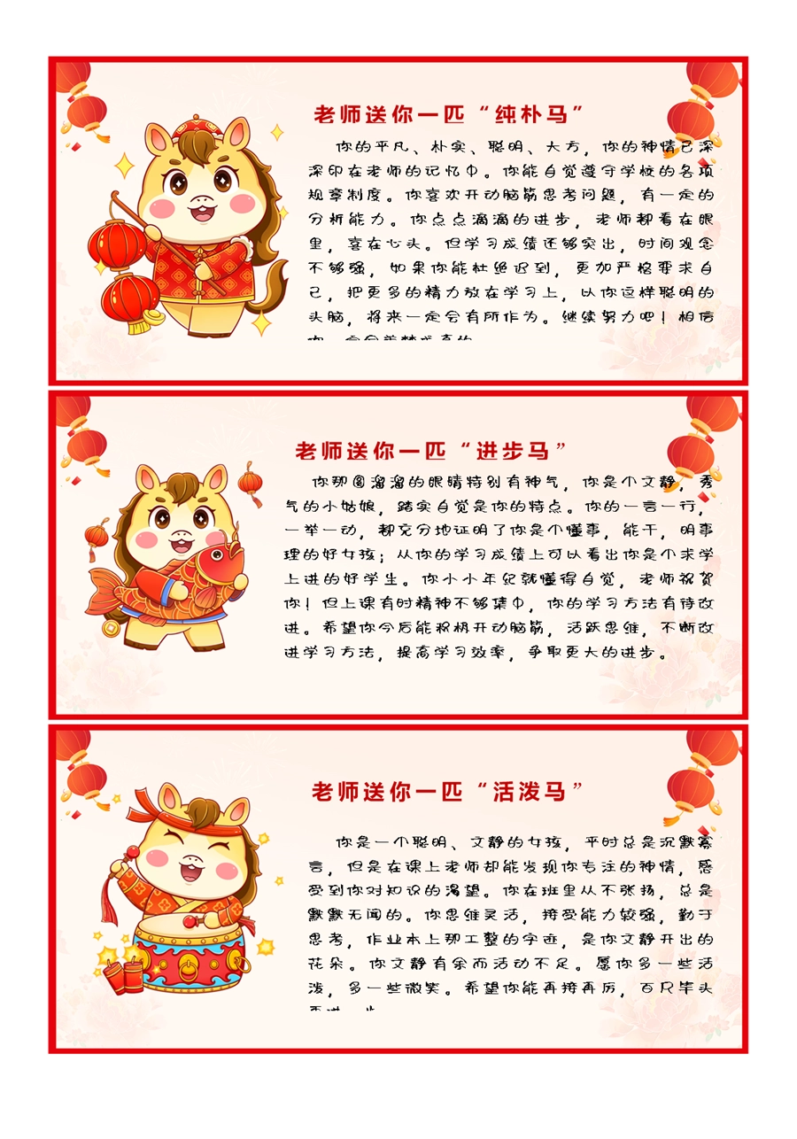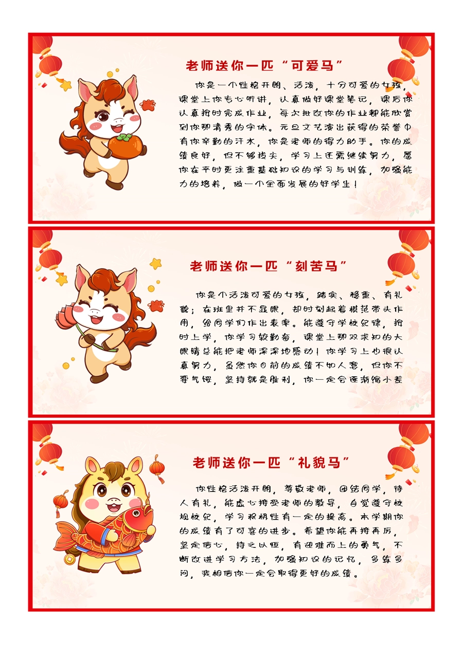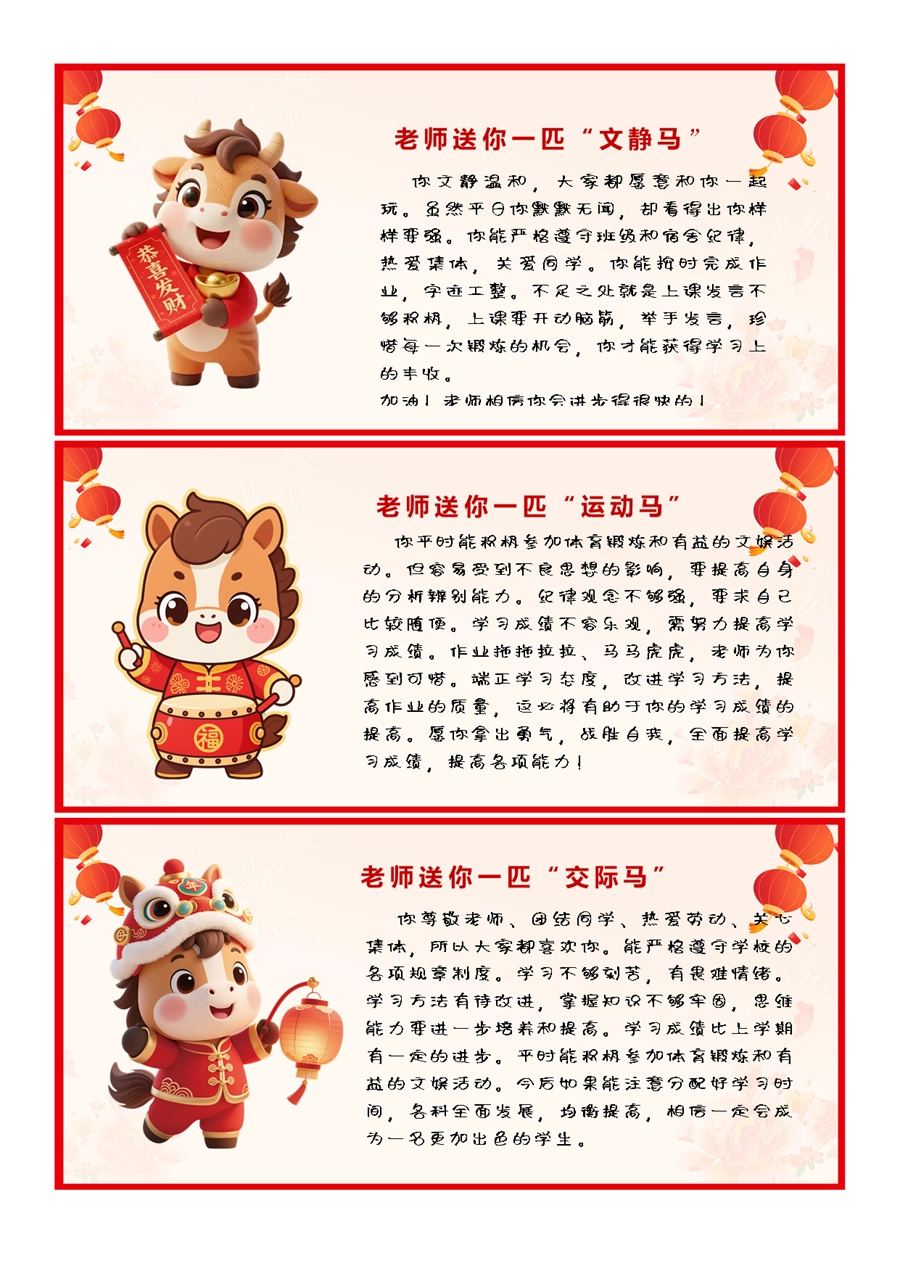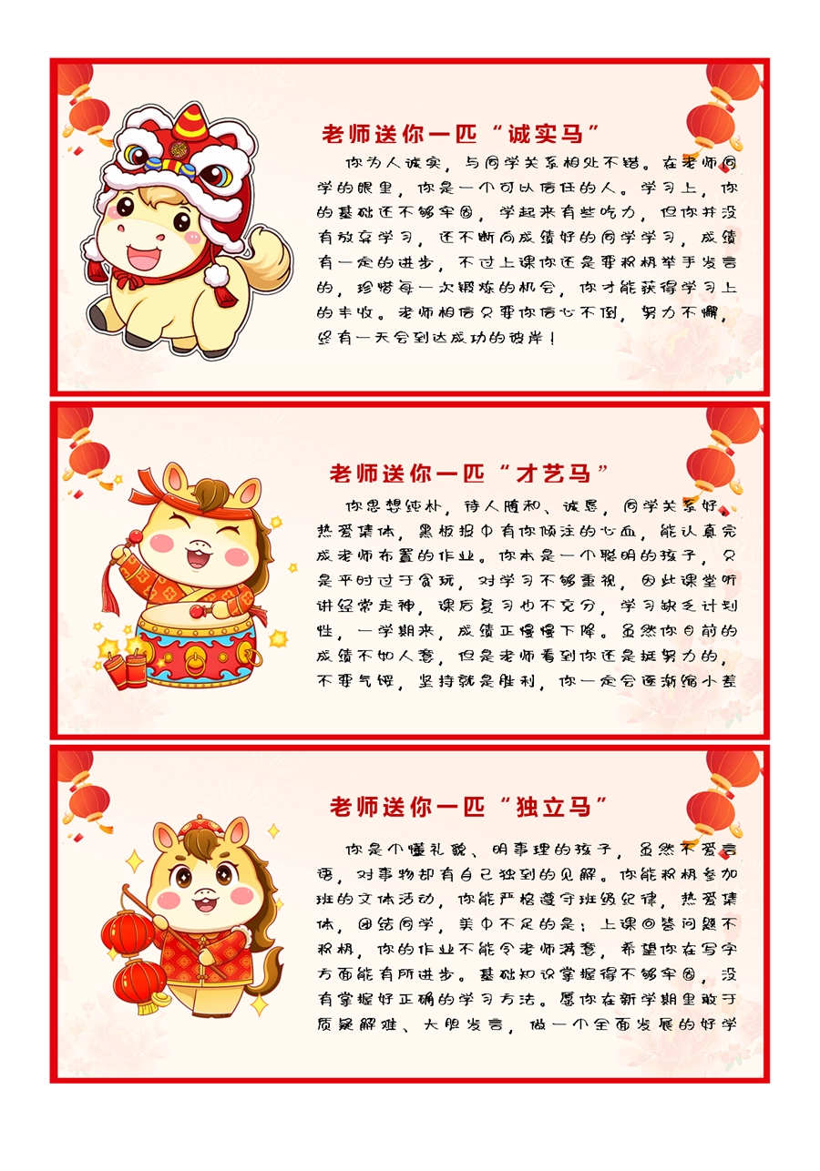【期末学生评语】2026马年卡通特色评语(45条)