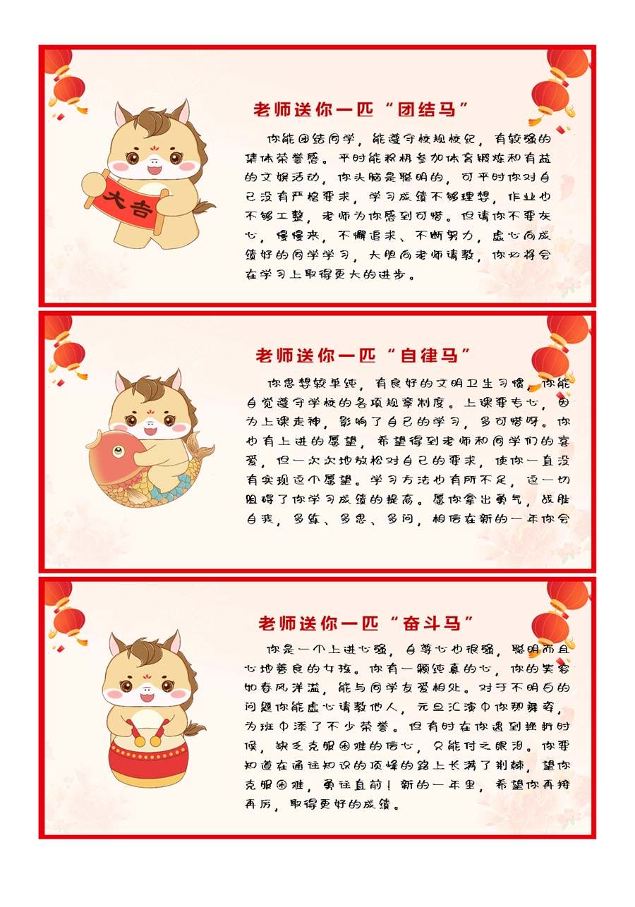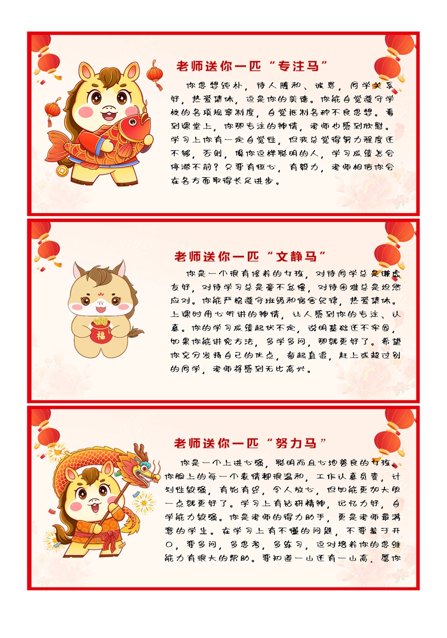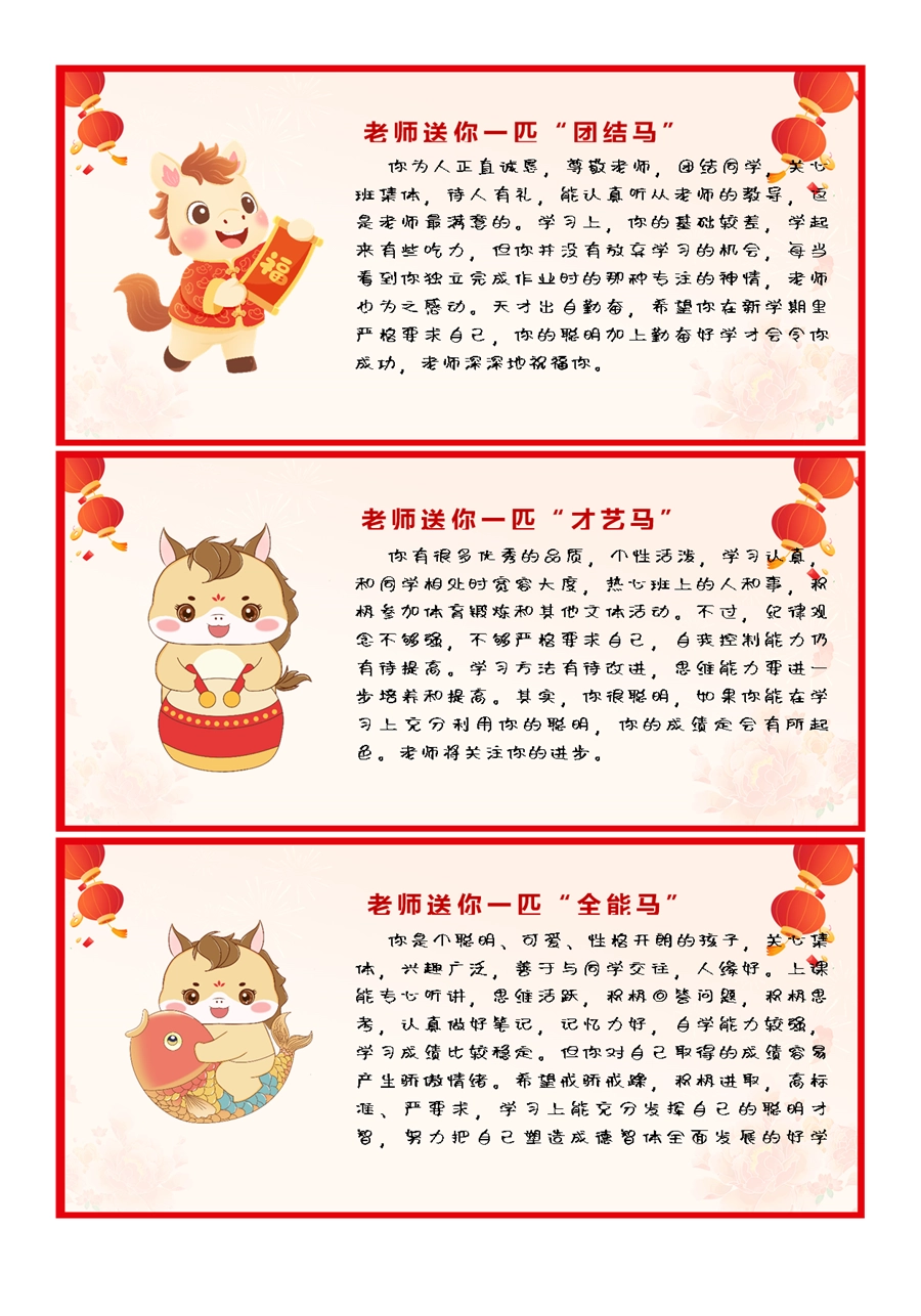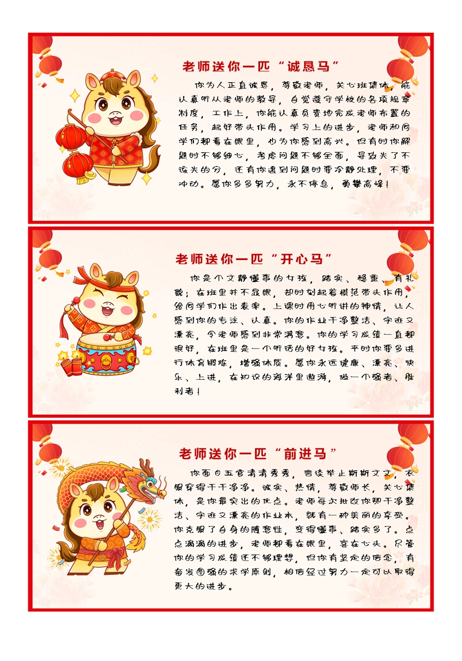 【期末学生评语】2026马年卡通特色评语(45条)
