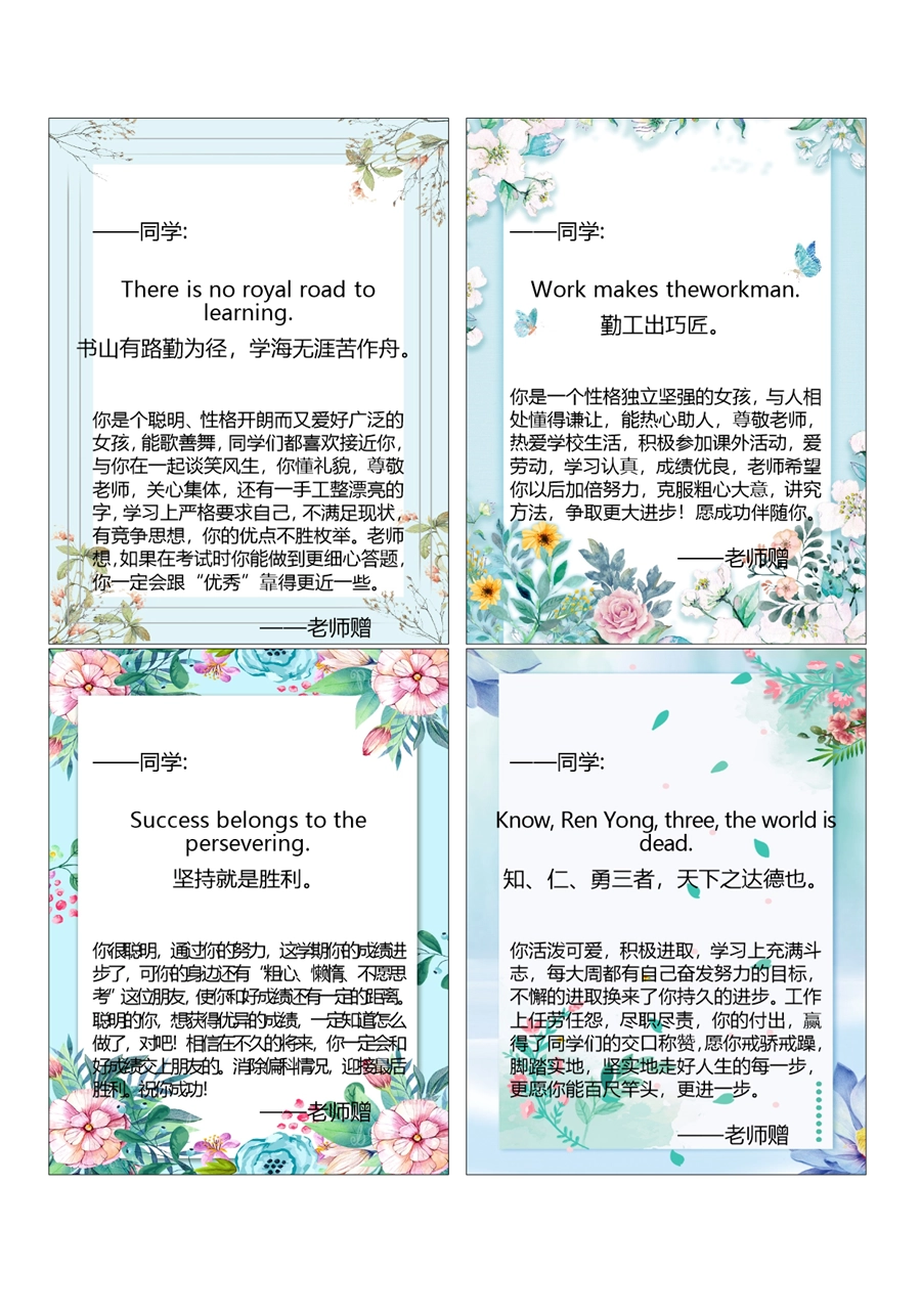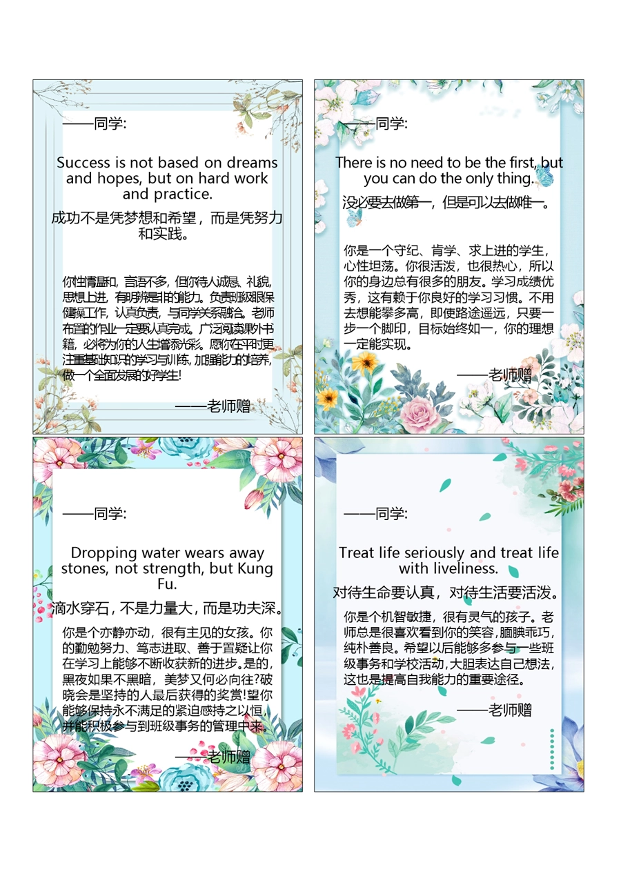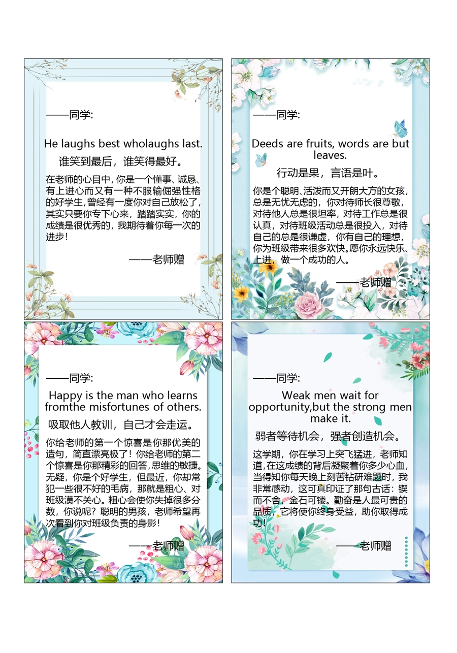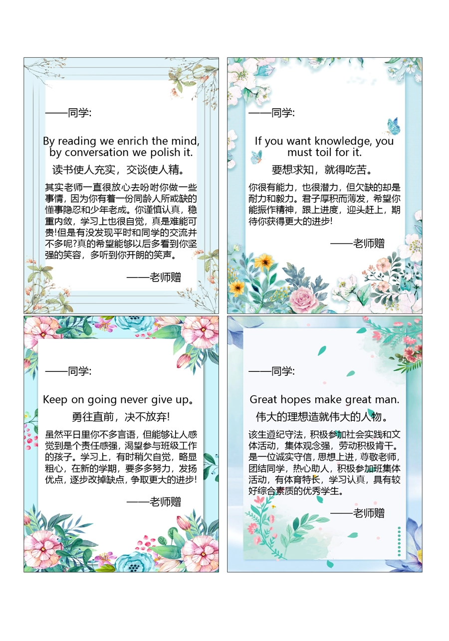 【期末学生评语】送你一棵树期末评语60条(6x10cm)