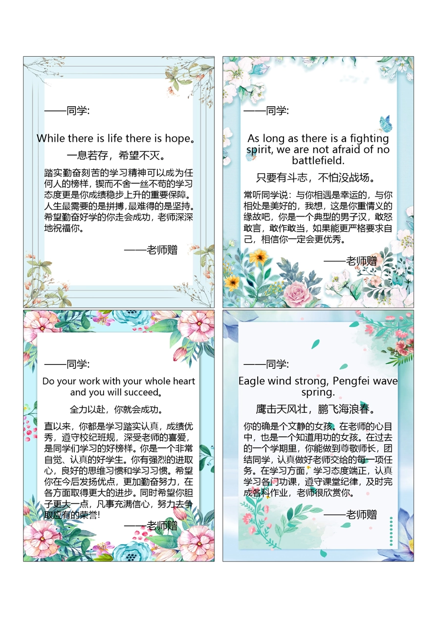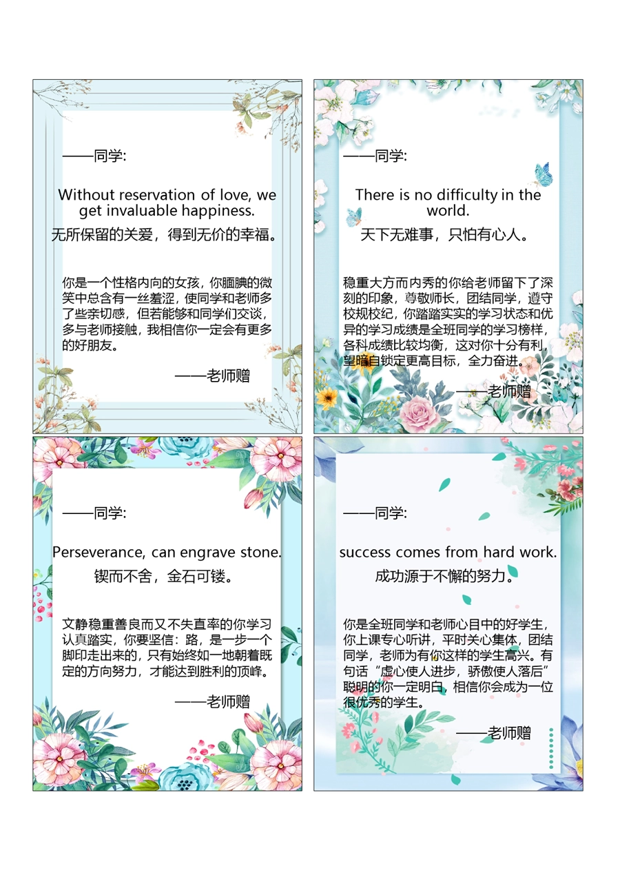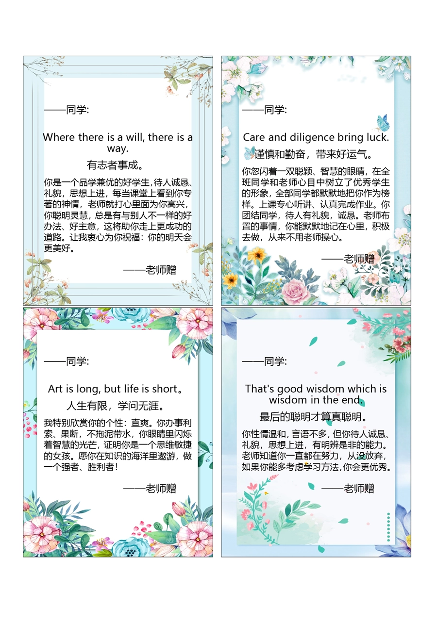 【期末学生评语】送你一棵树期末评语60条(6x10cm)