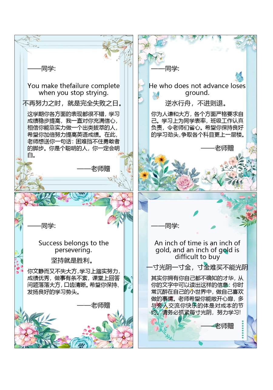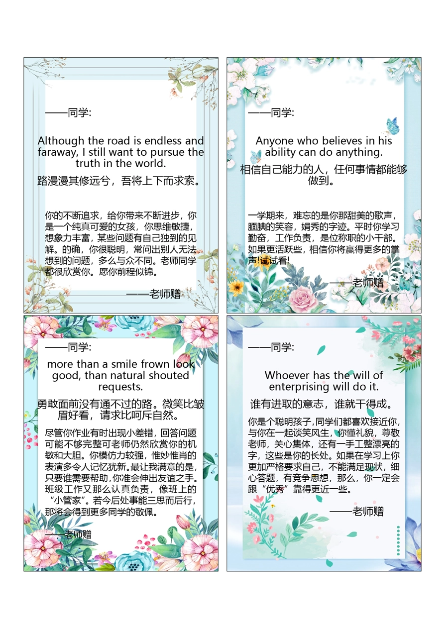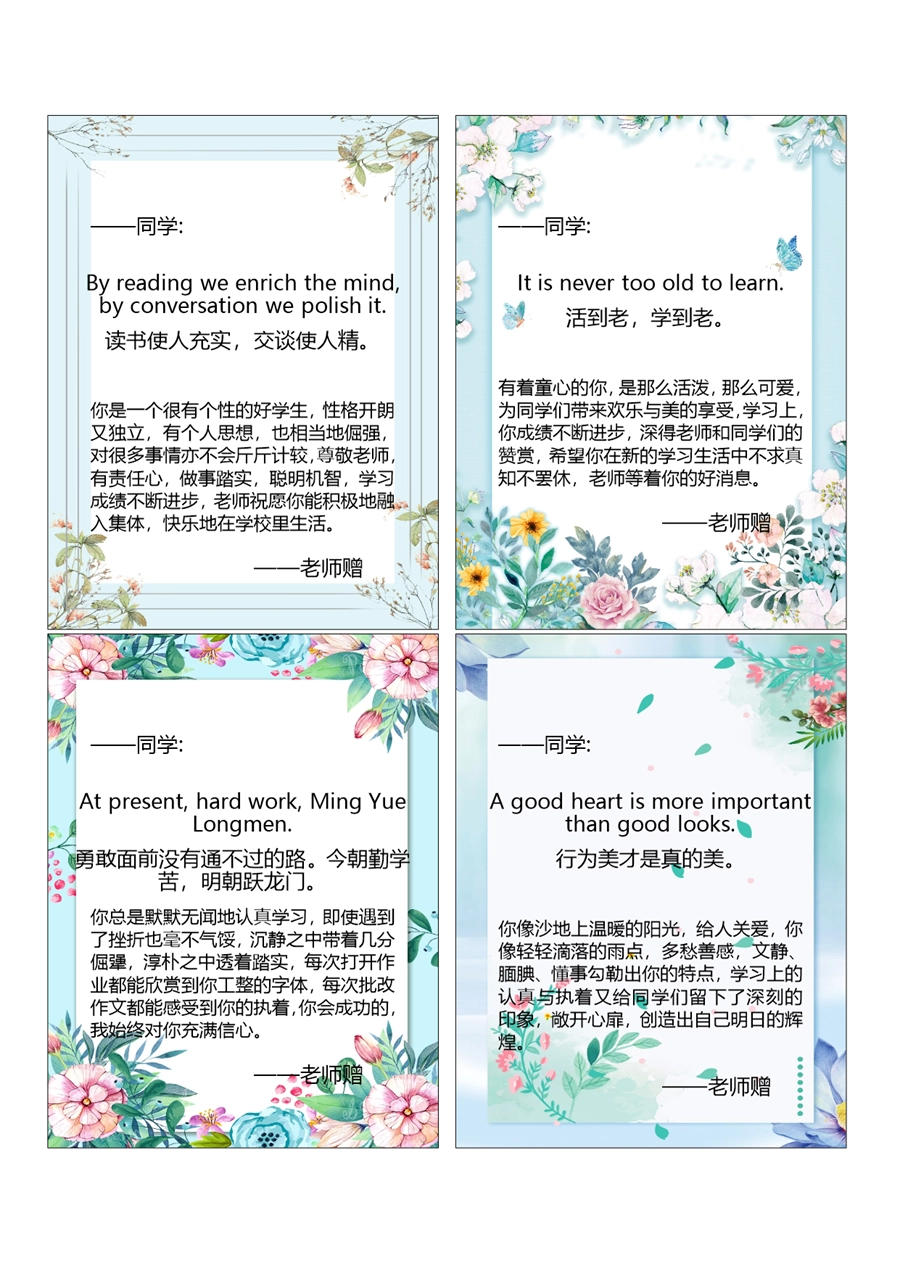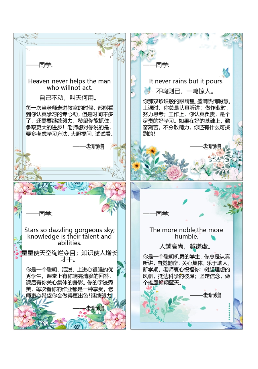 【期末学生评语】送你一棵树期末评语60条(6x10cm)