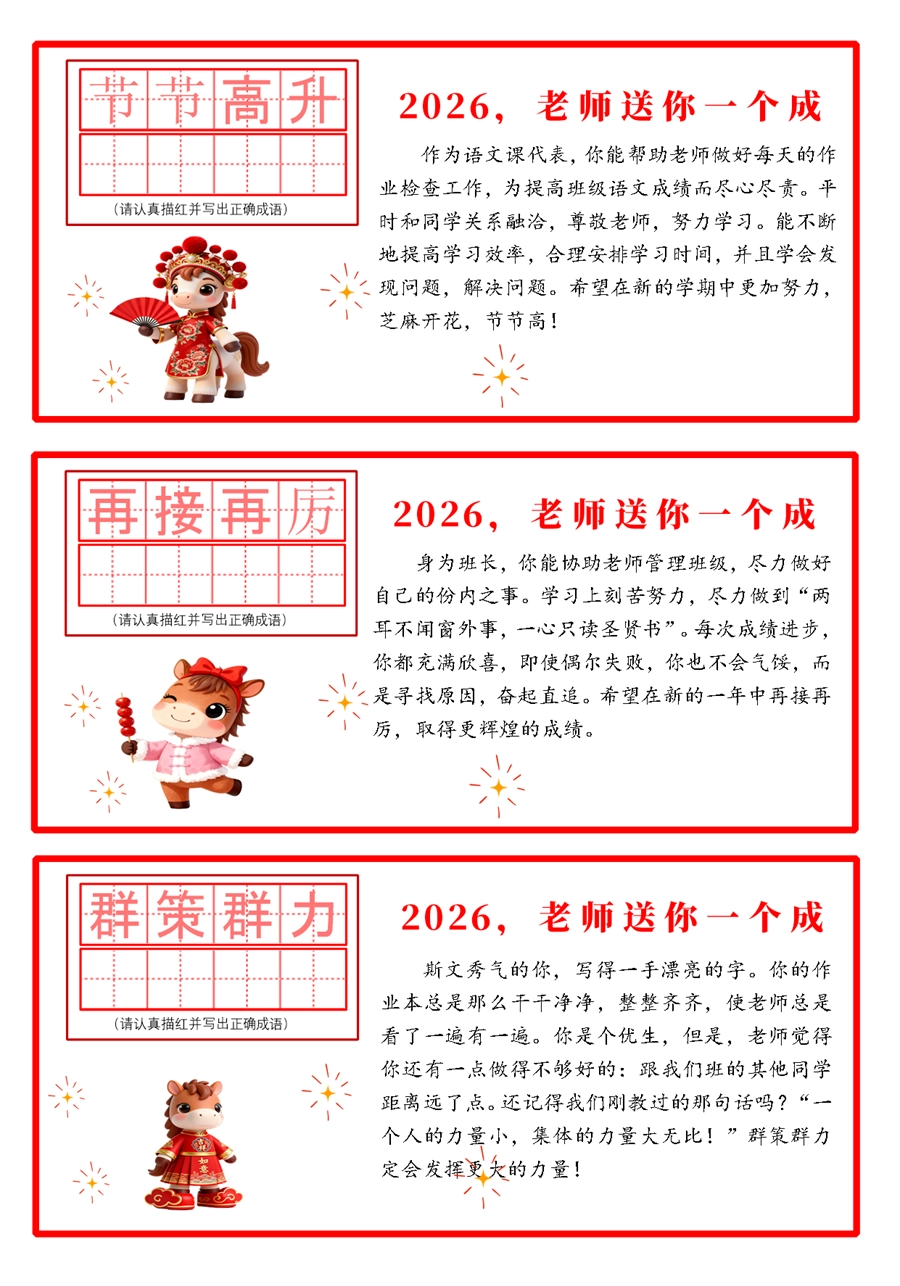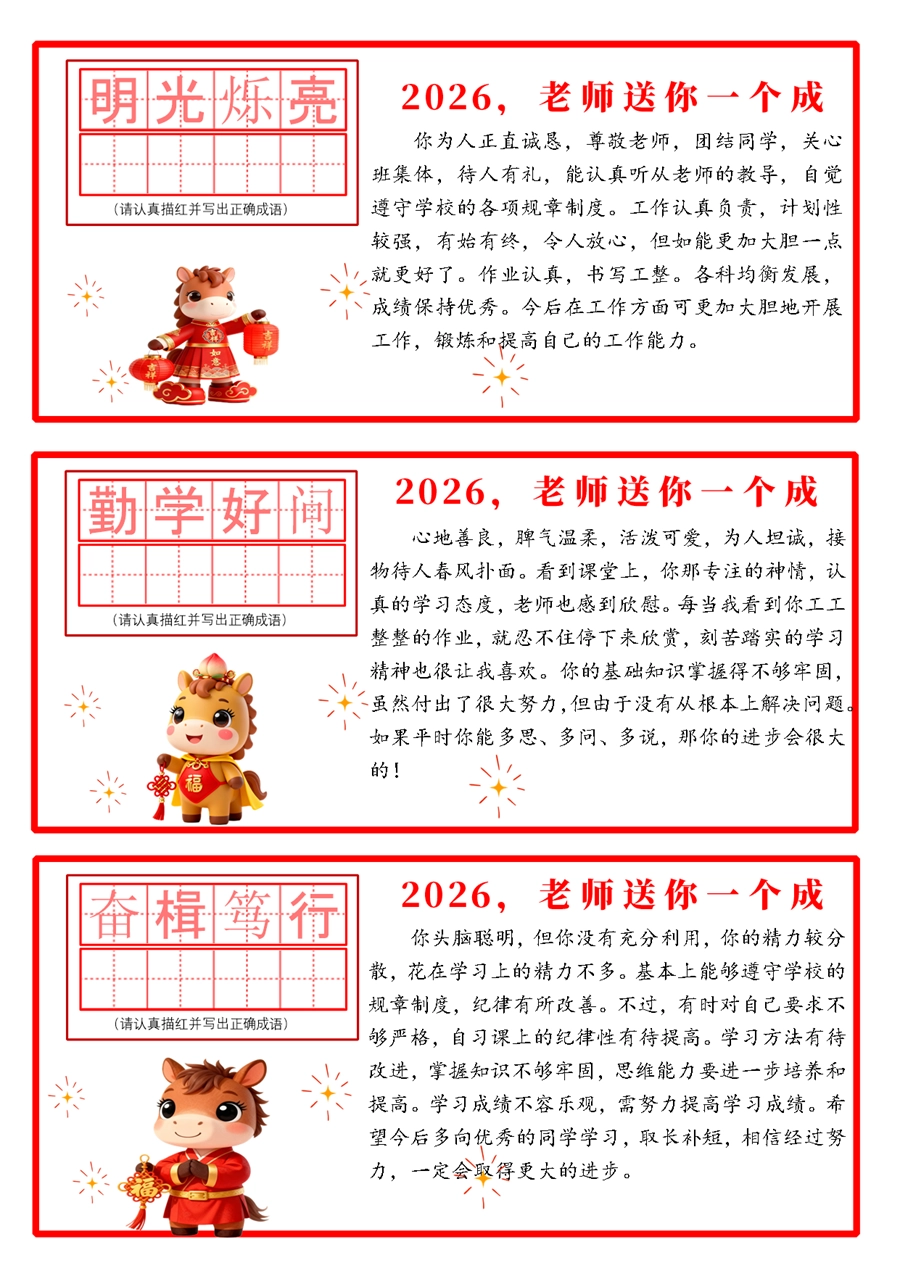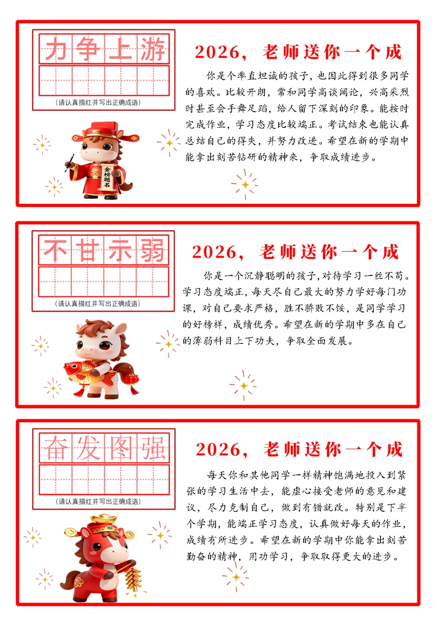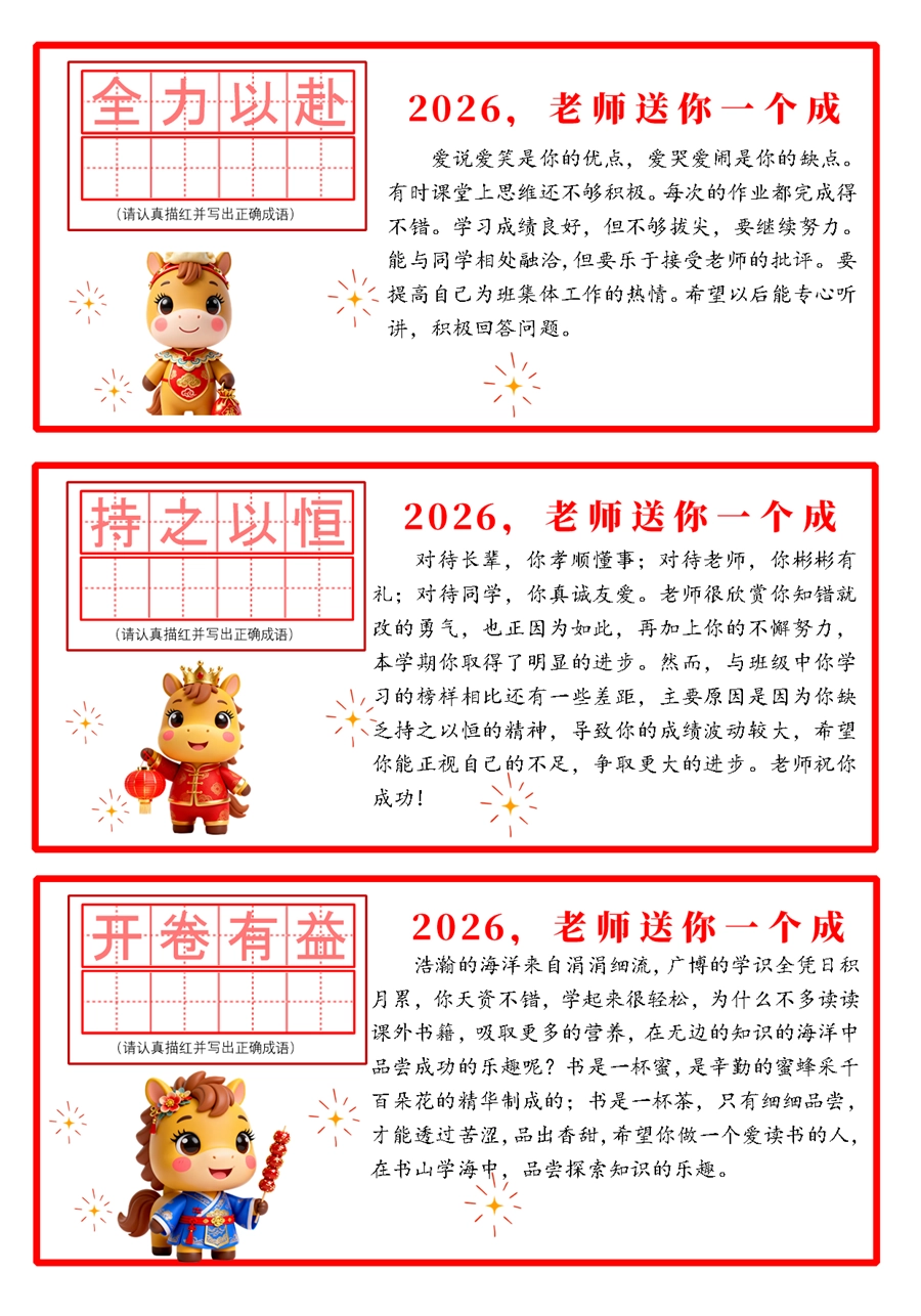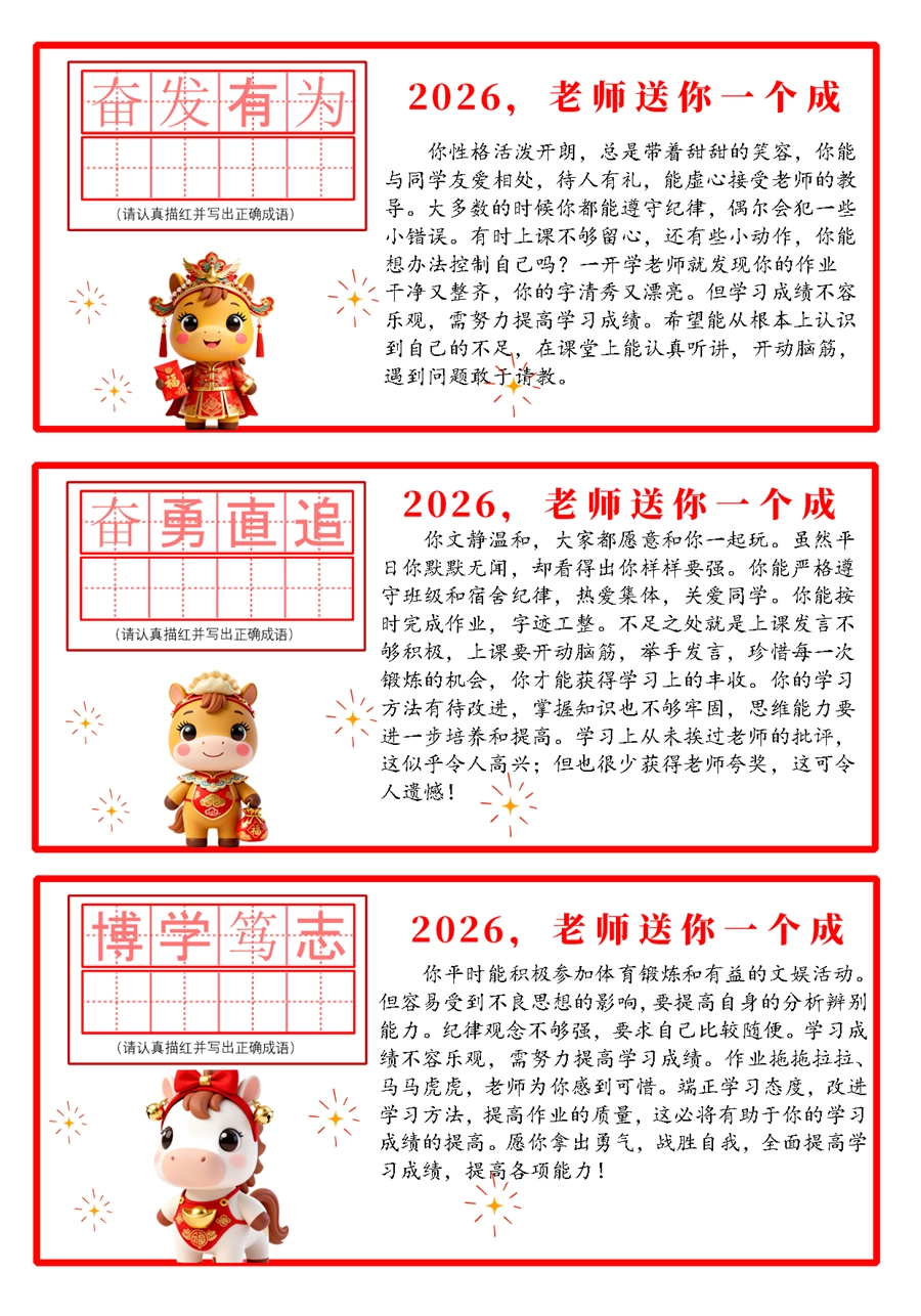 【期末学生评语】【马年】送你一个成语创意期末评语54条(修改版)