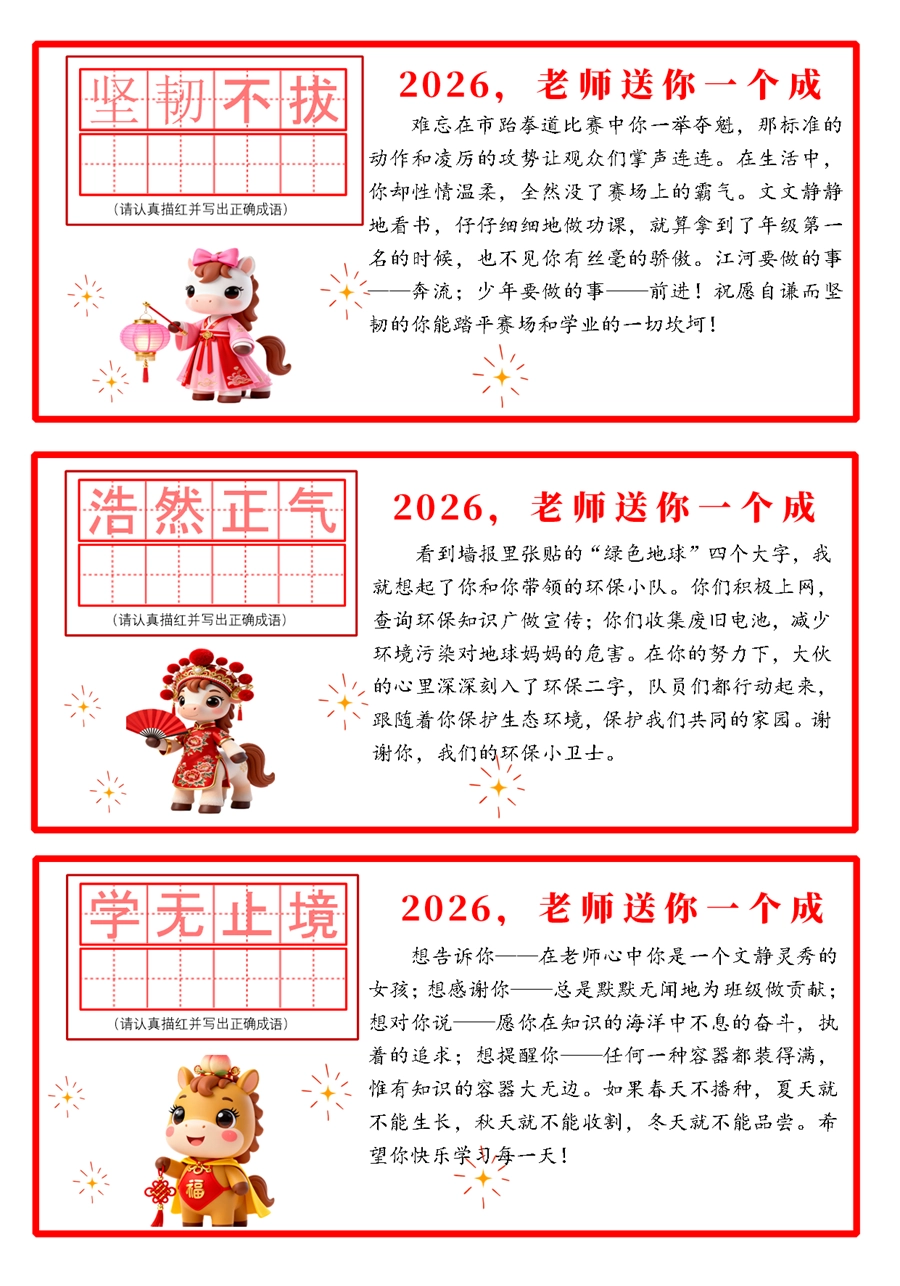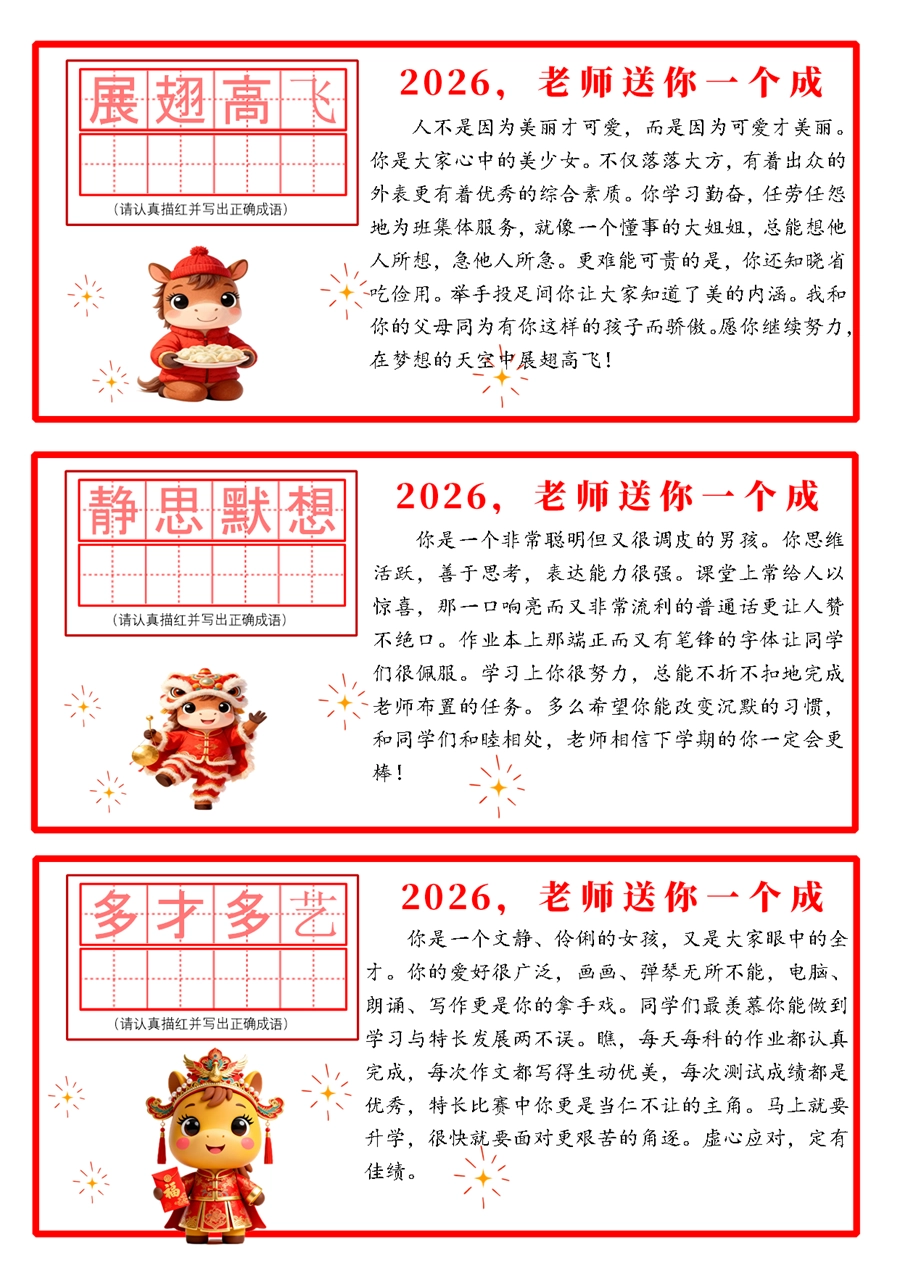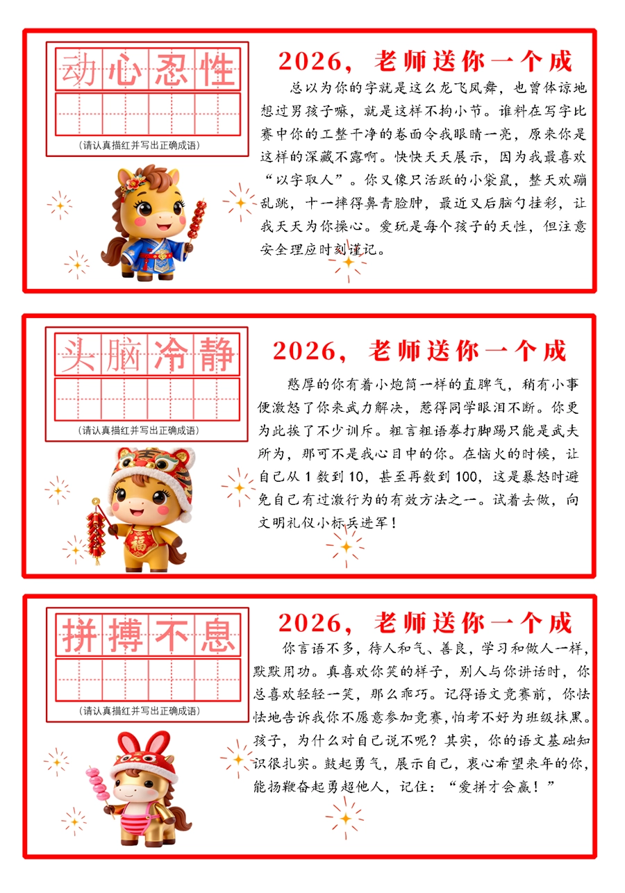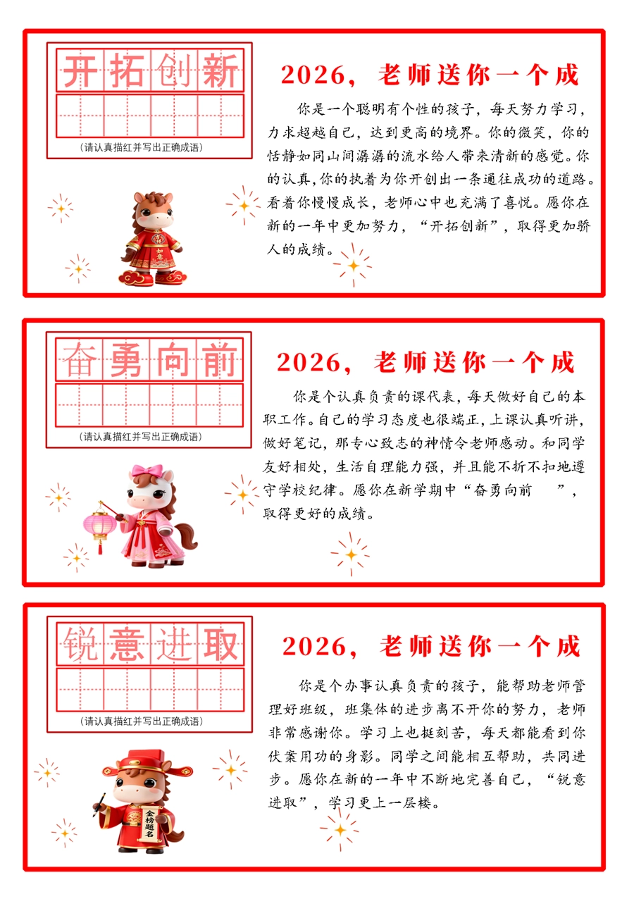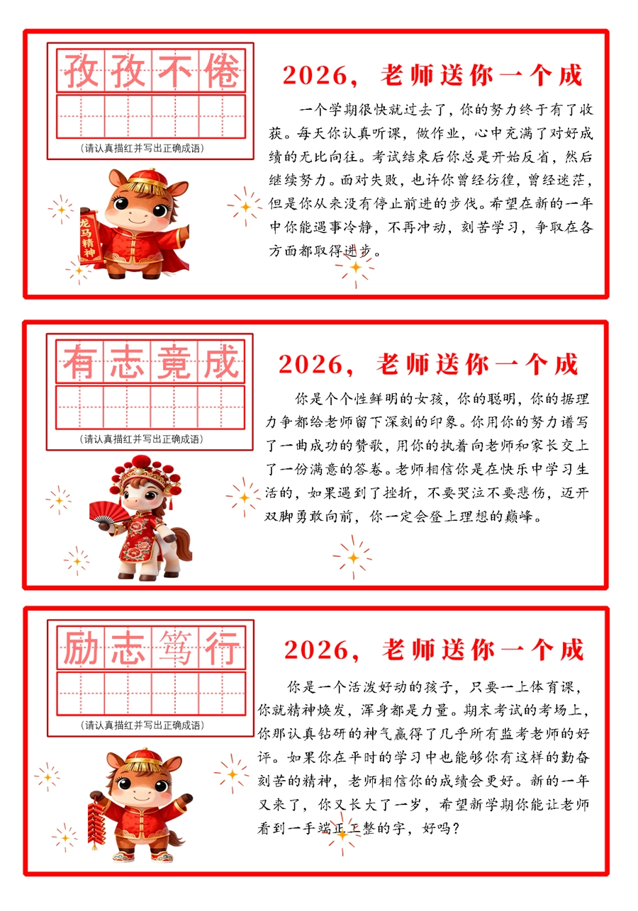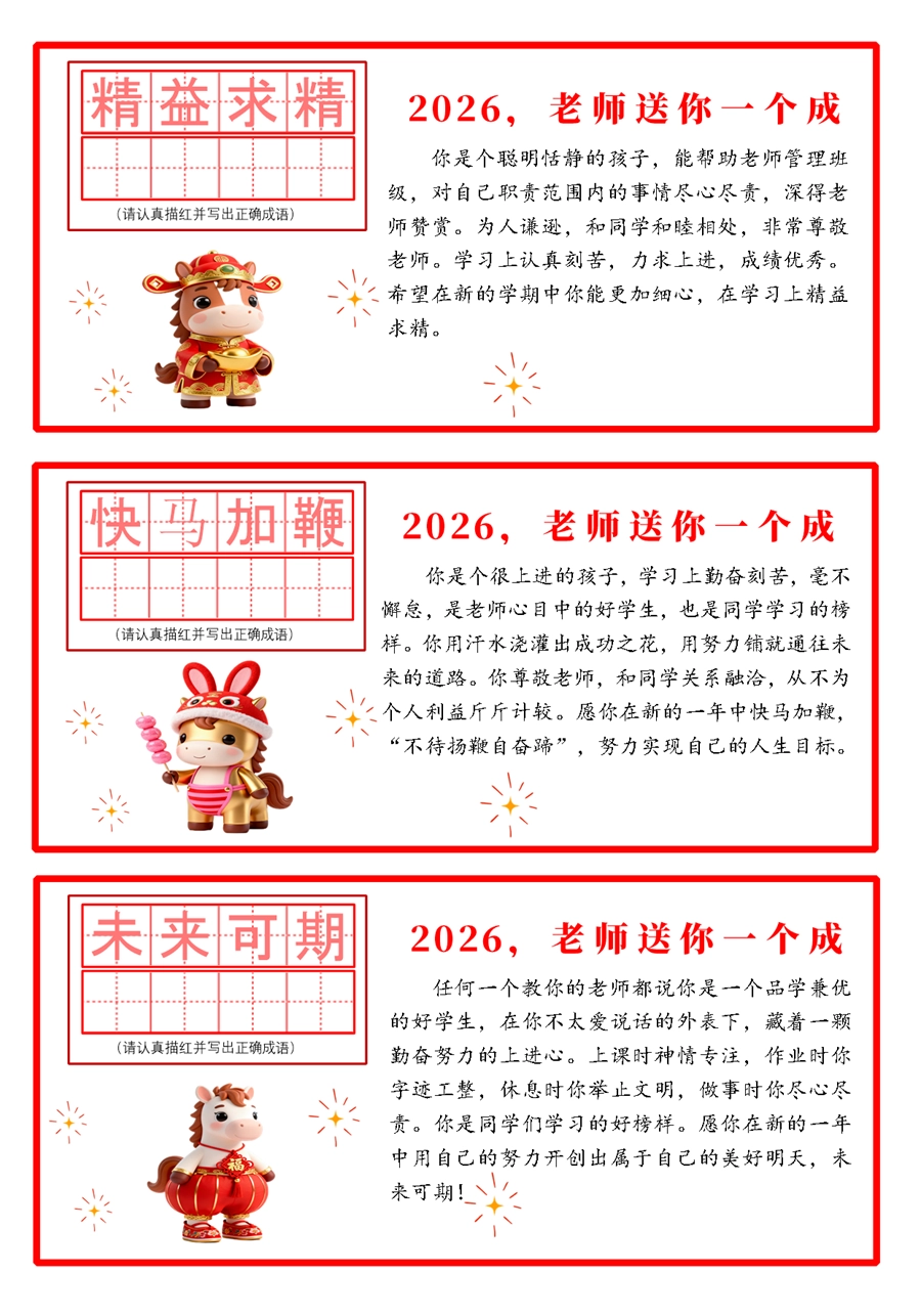 【期末学生评语】【马年】送你一个成语创意期末评语54条(修改版)