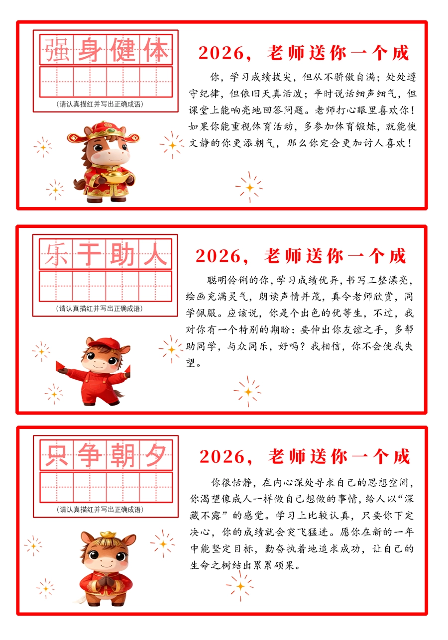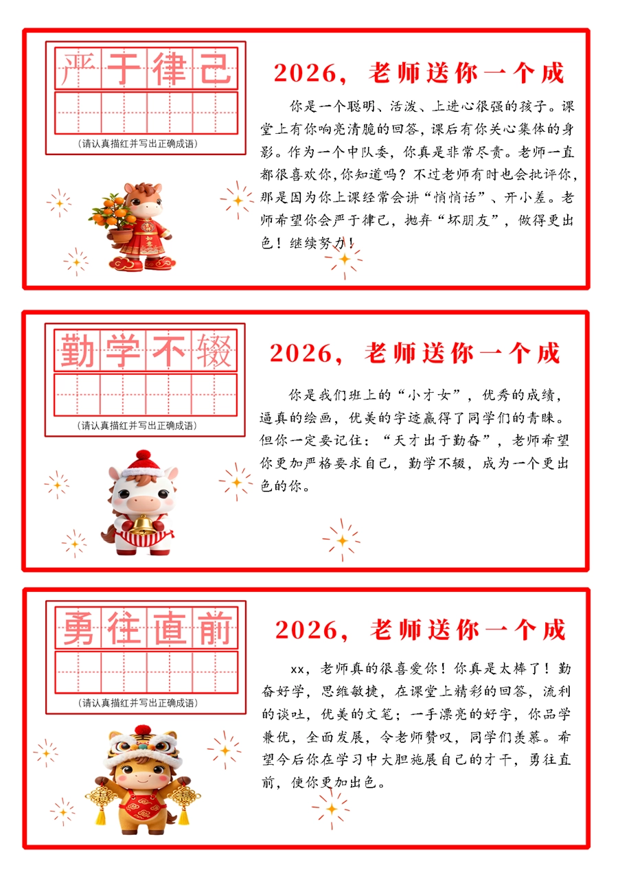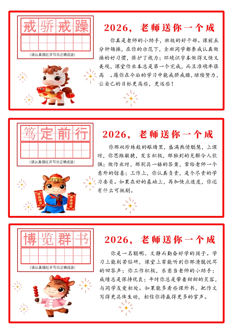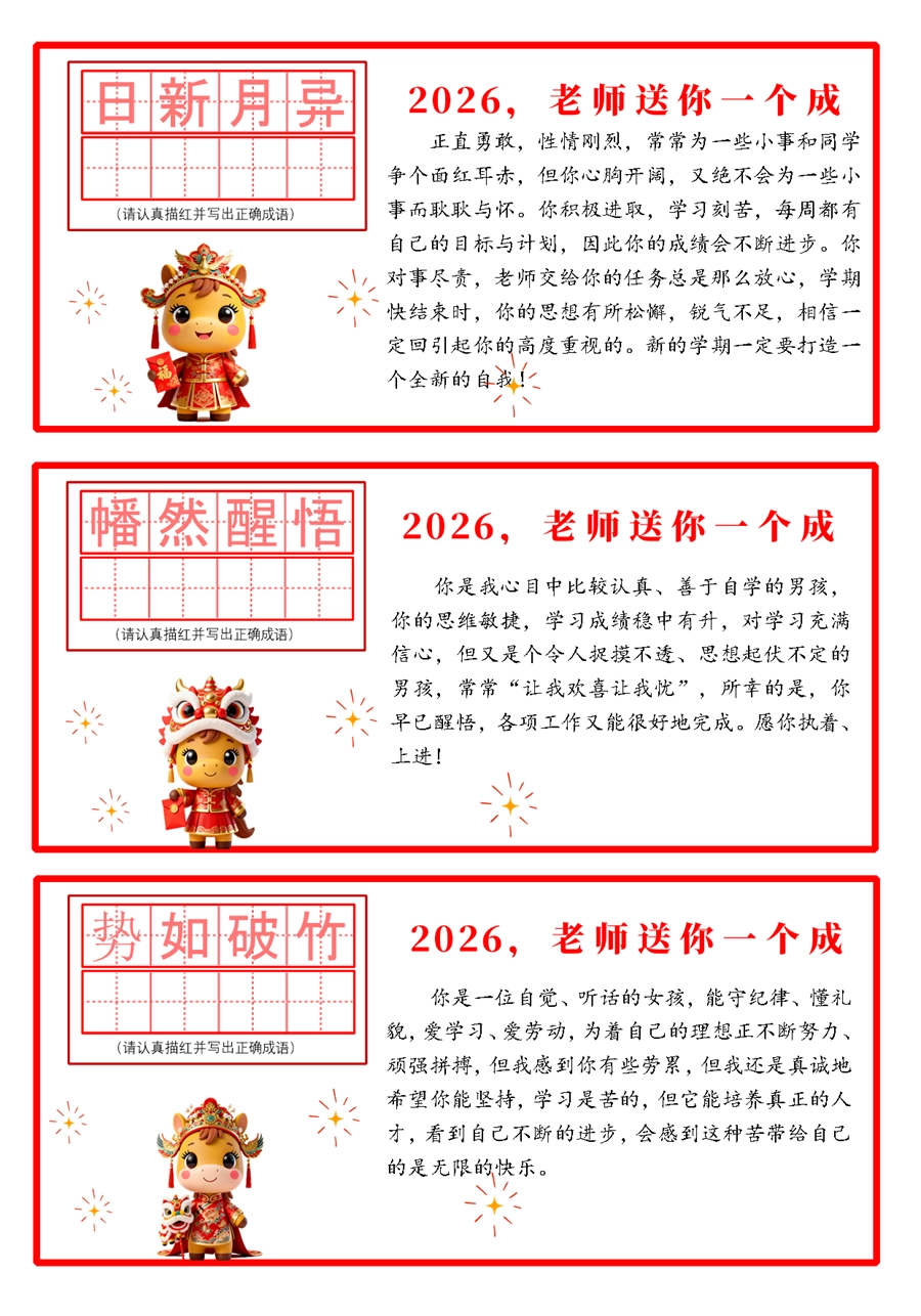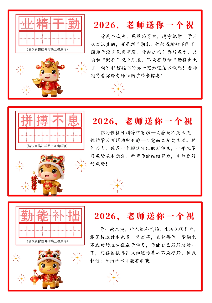 【期末学生评语】【马年】送你一个成语创意期末评语54条(修改版)