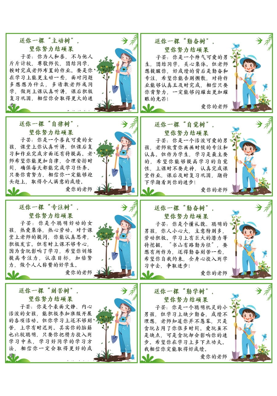 【期末学生评语】送你一棵树期末评语60条(6x10cm)