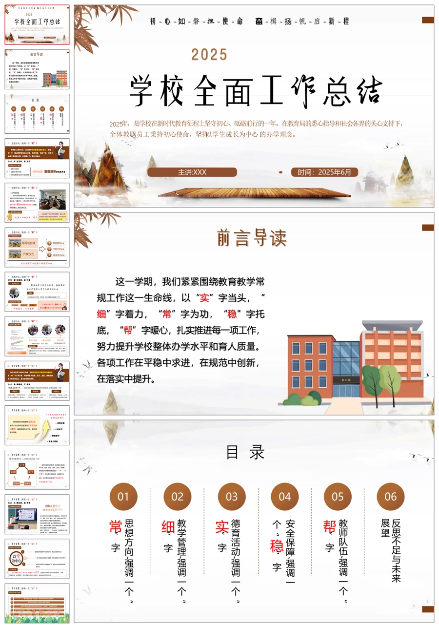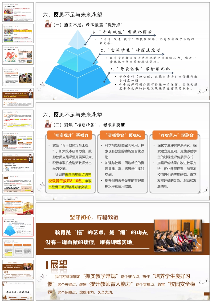 《初心如磐担使命 奋楫扬帆启新程》学校全面工作总结ppt课件+发言稿