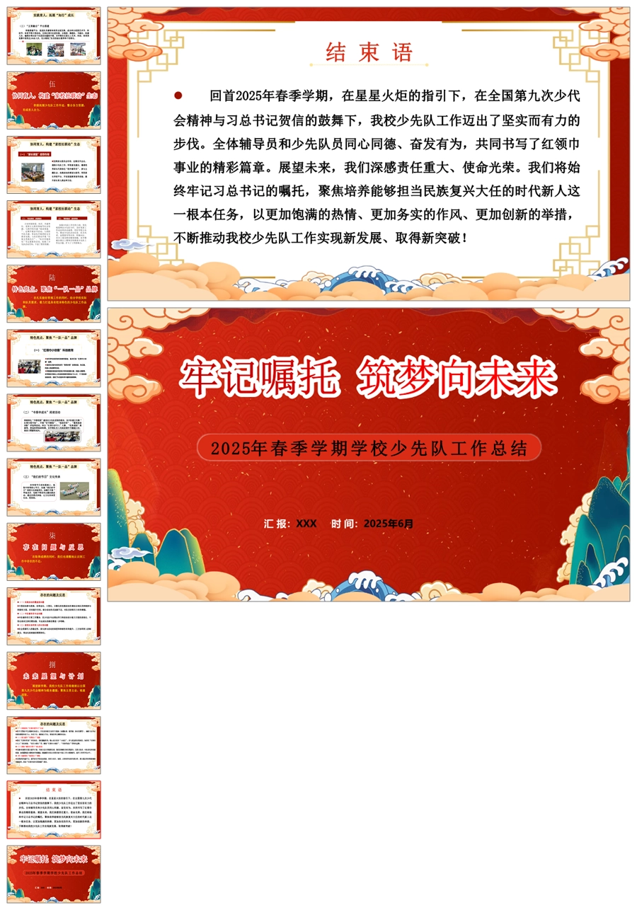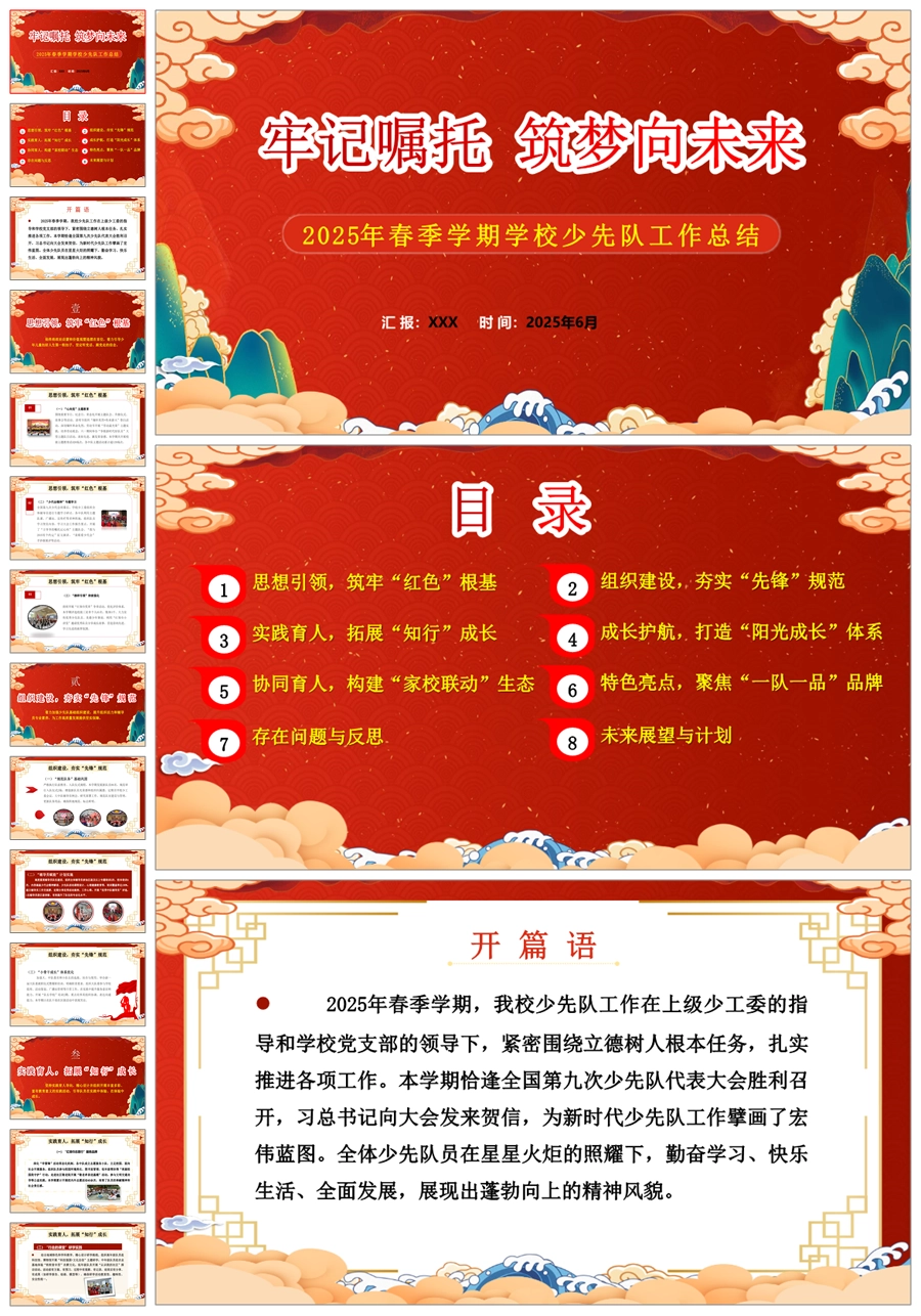 《牢记嘱托 筑梦未来》学校少先队工作总结ppt课件+发言稿