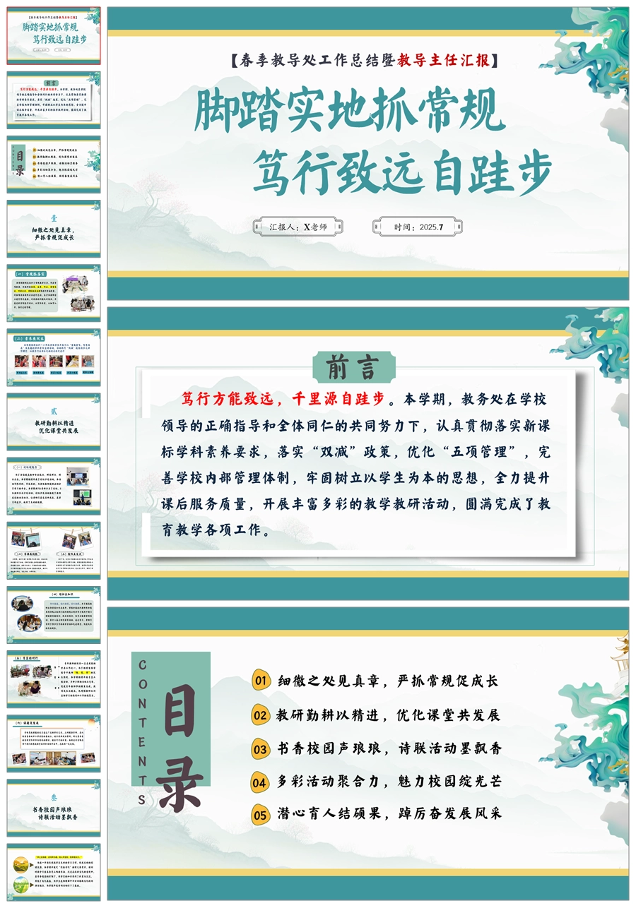 《脚踏实地抓常规 笃行致远自跬步》学校教导处工作总结ppt课件+发言稿