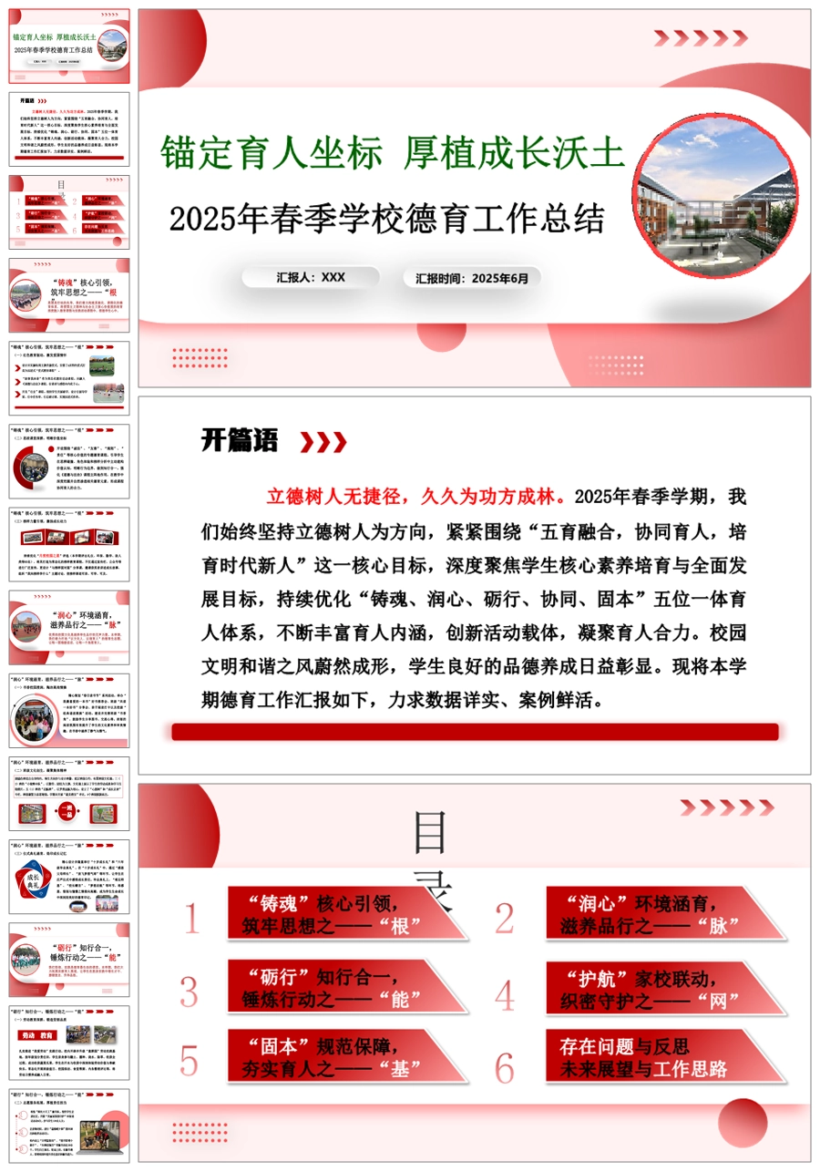 《锚定育人坐标》学校德育工作总结ppt课件+发言稿