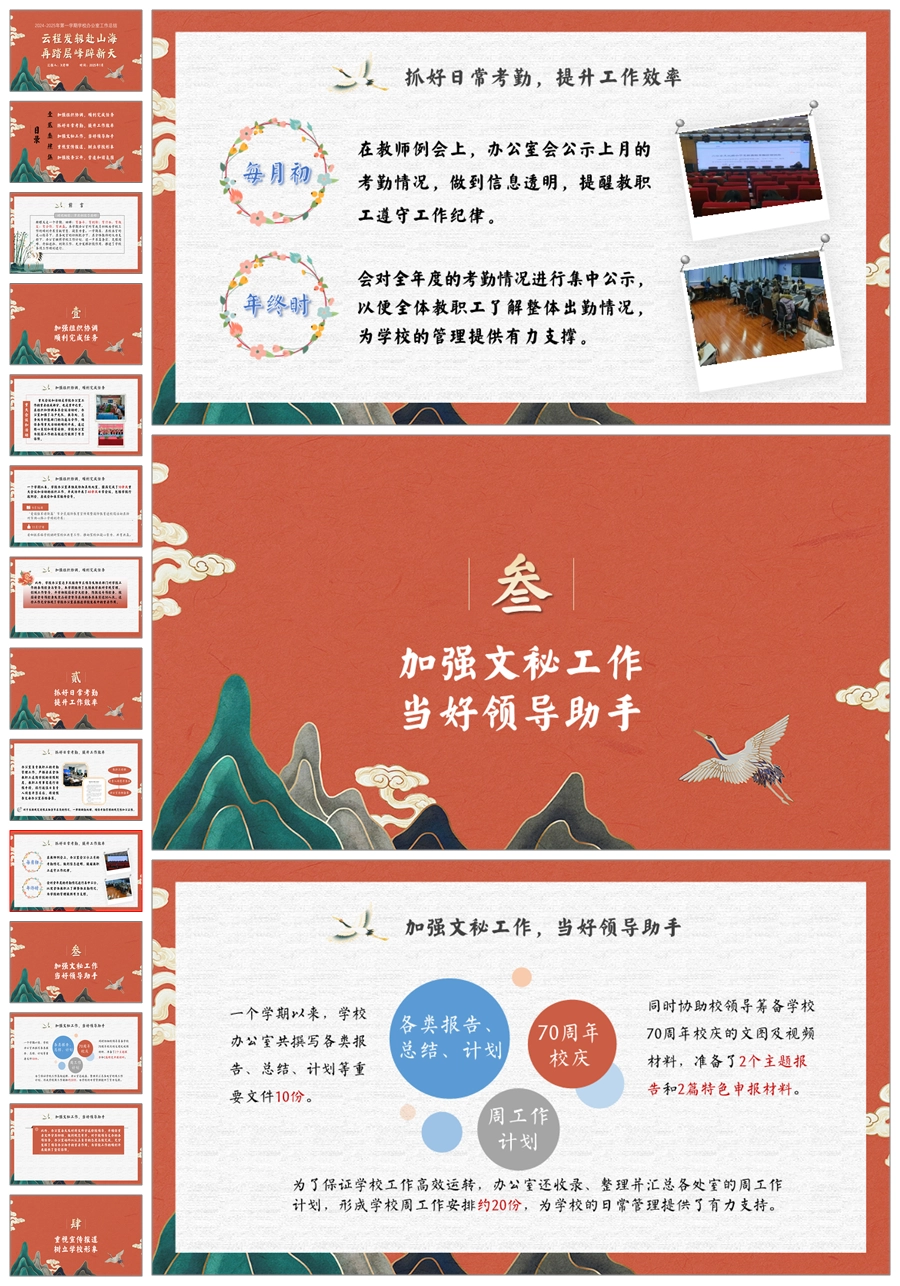 学校办公室工作总结(云程发轫赴山海)ppt课件+发言稿