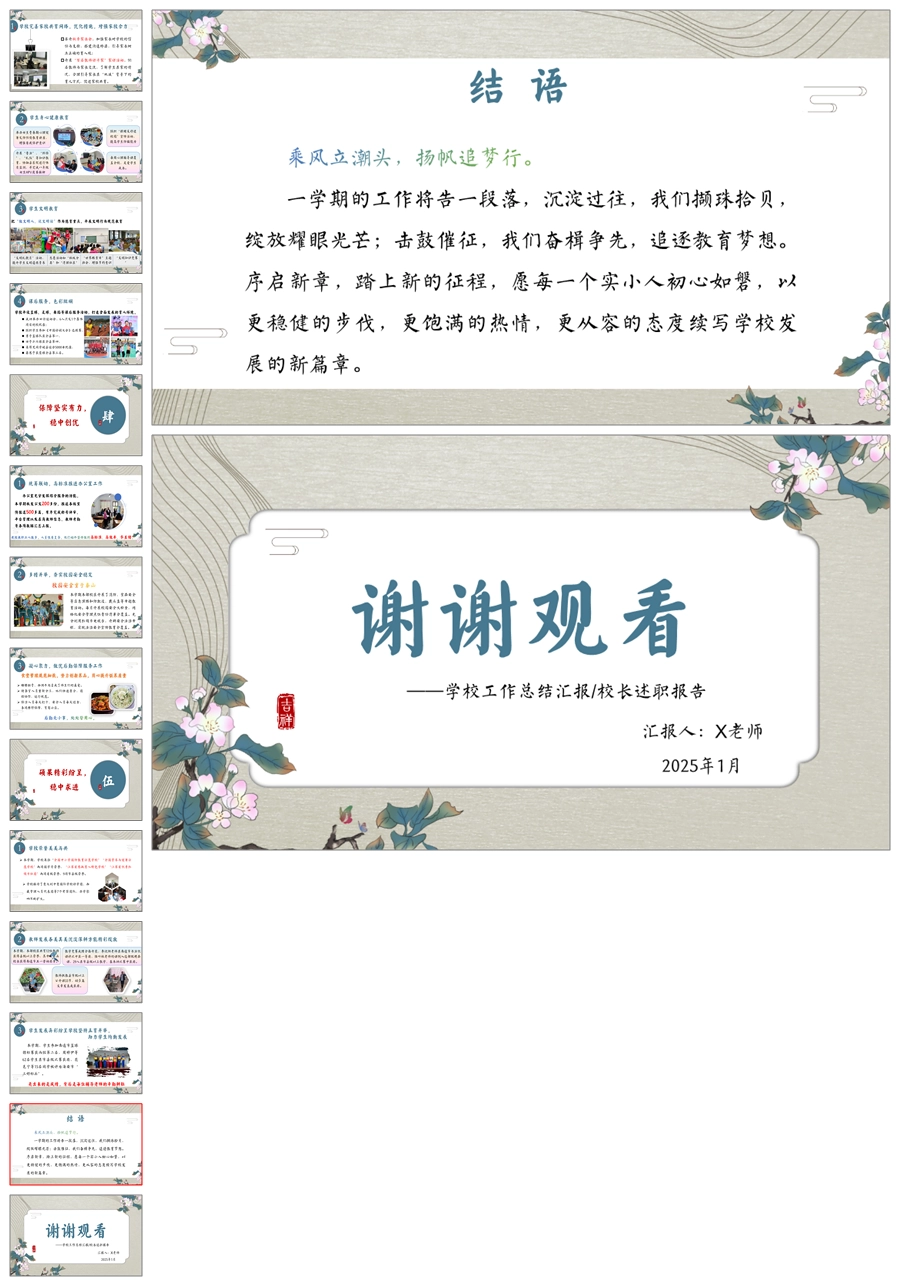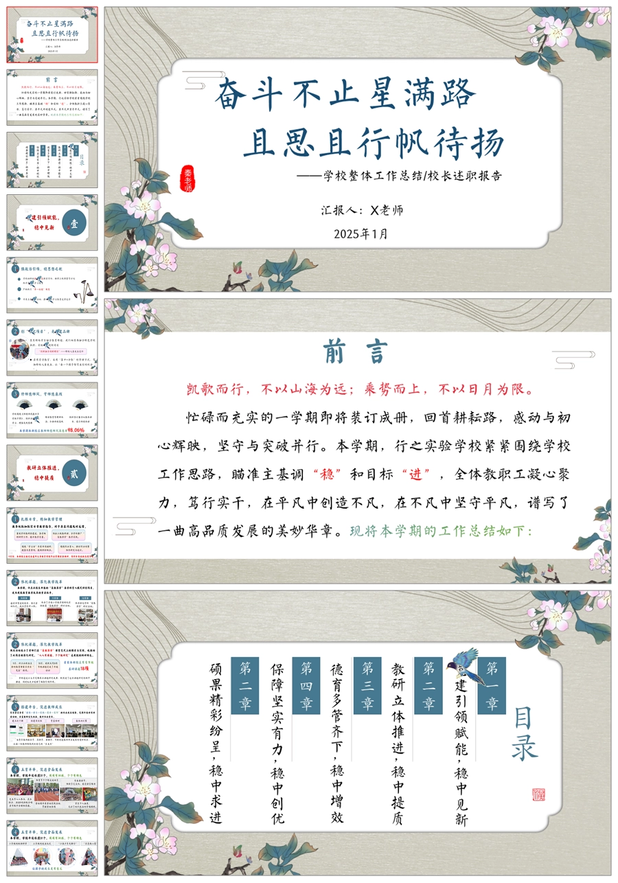 学校学校工作总结-奋斗不止星满路ppt课件+发言稿