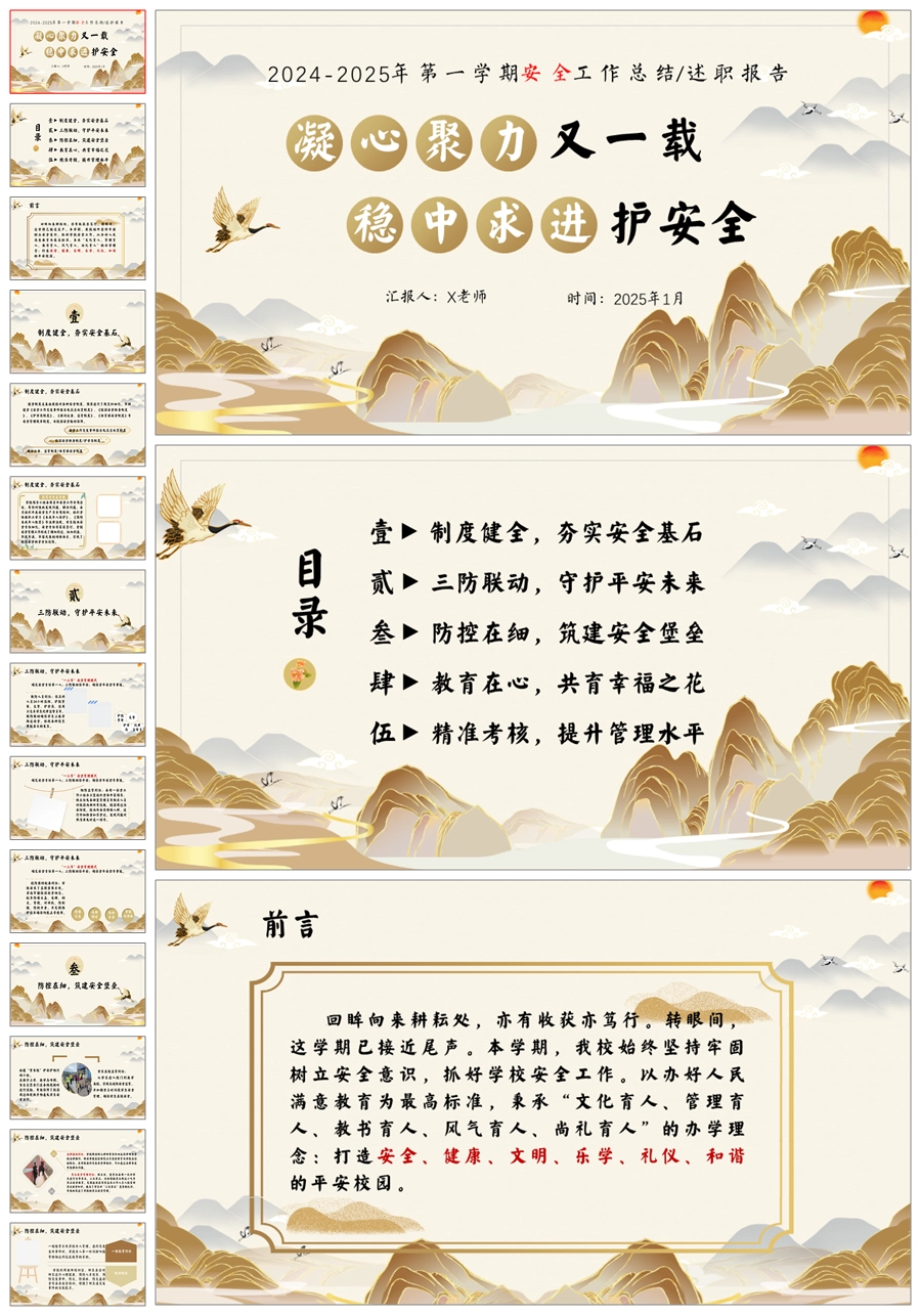 学校安全工作总结(稳中求进护安全)ppt课件+发言稿