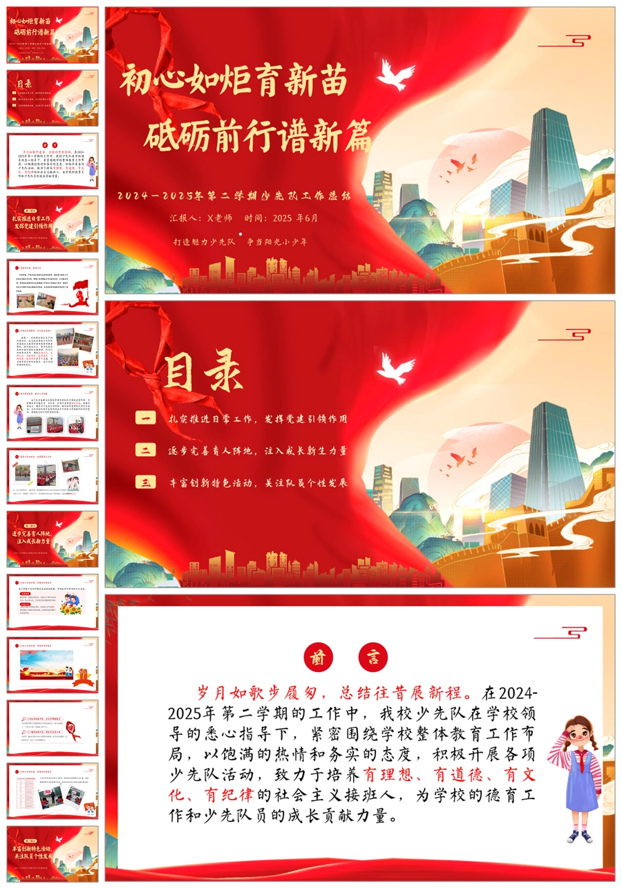 学校少先队工作总结-初心如炬育新苗ppt课件+发言稿