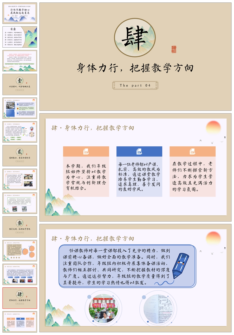 学校年级组工作总结(行而不辍)ppt课件+发言稿