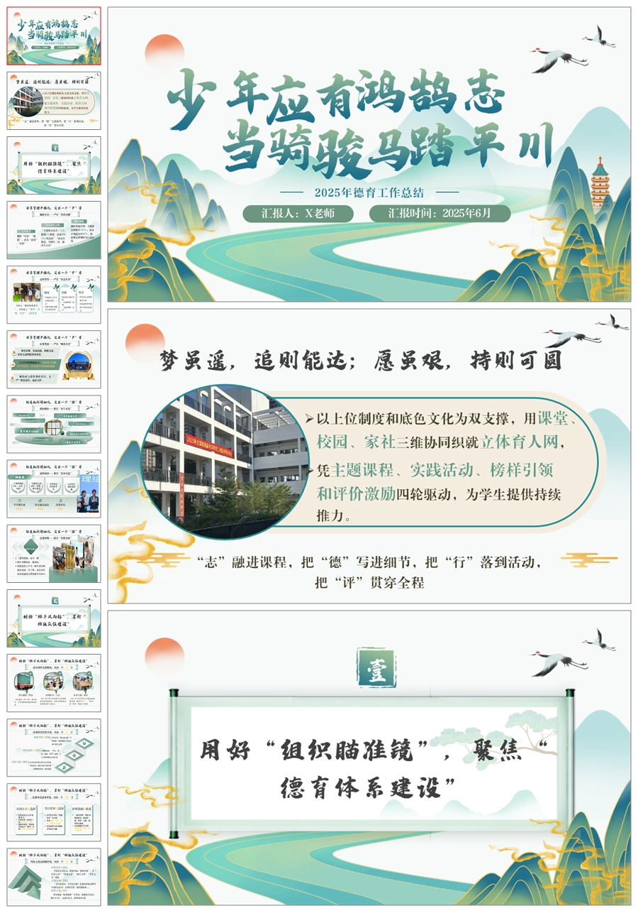 学校德育工作总结-少年应有鸿鹄志ppt课件+发言稿