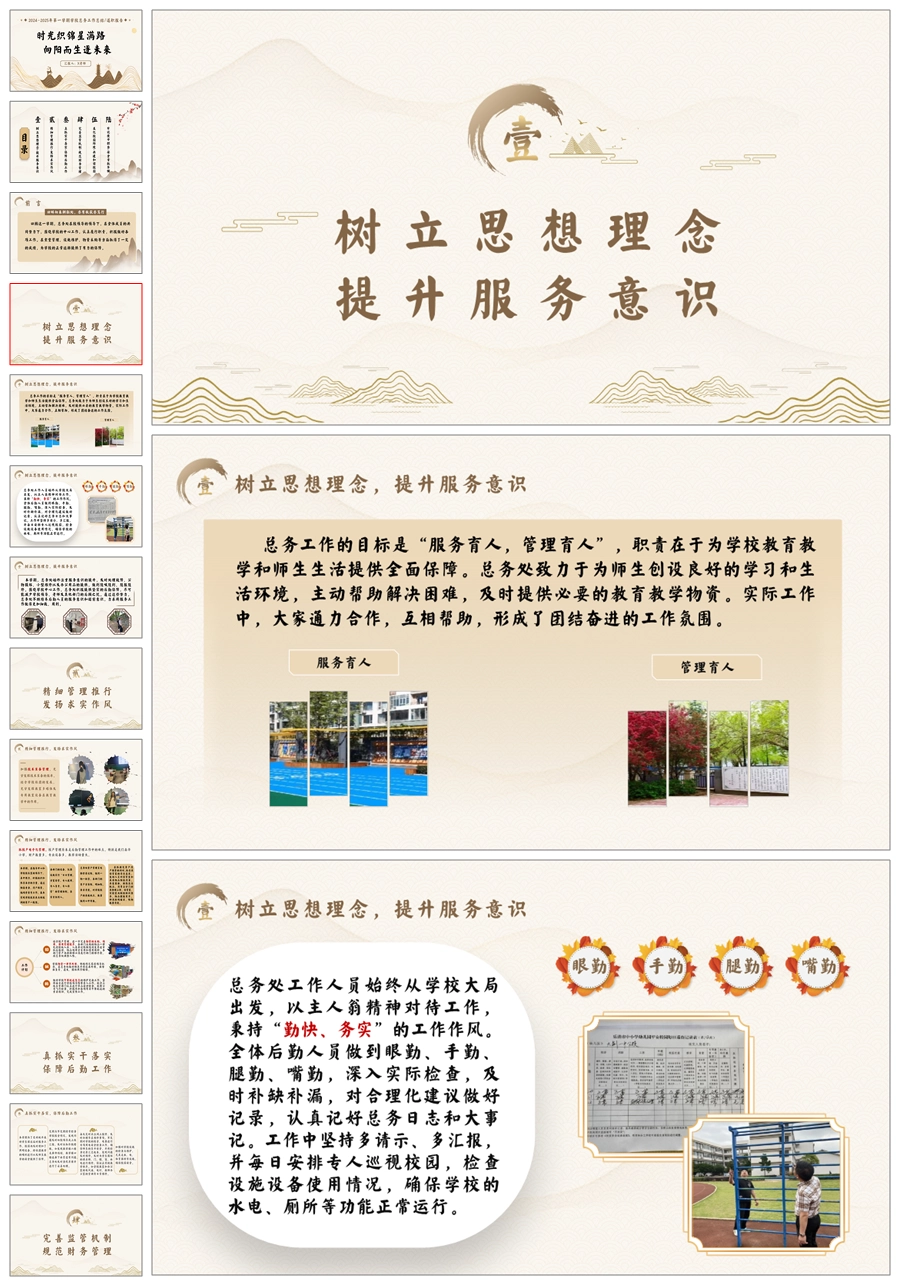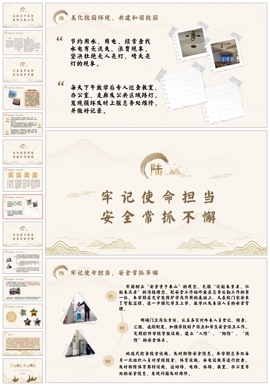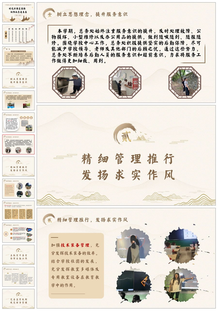学校总务工作总结(时光织锦)ppt课件+发言稿