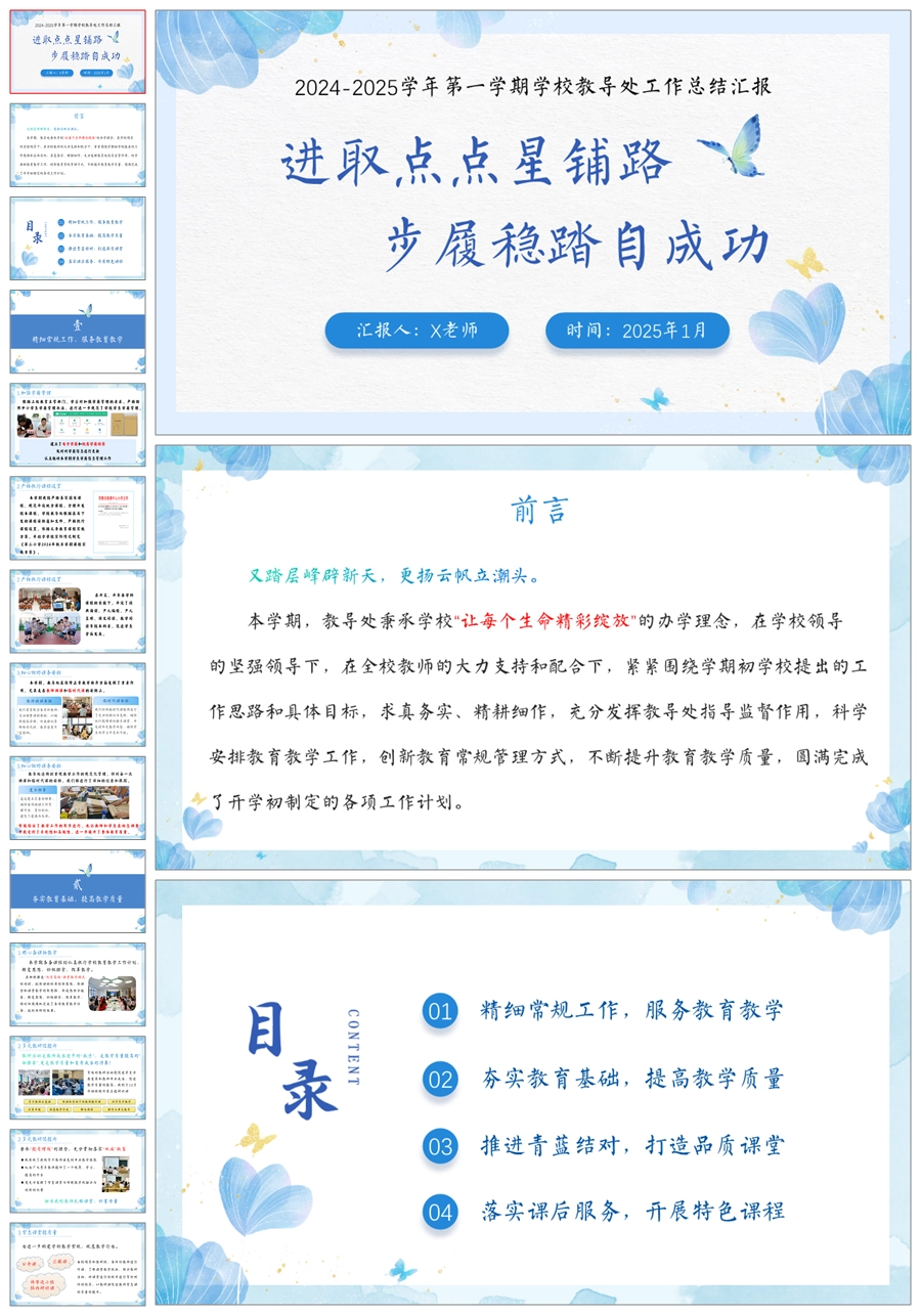 学校教导处工作总结-进取点点星铺路ppt课件+发言稿
