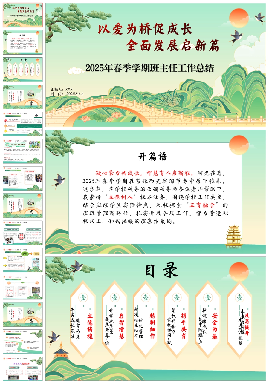 学校班主任工作总结-以爱为桥促成长ppt课件+发言稿