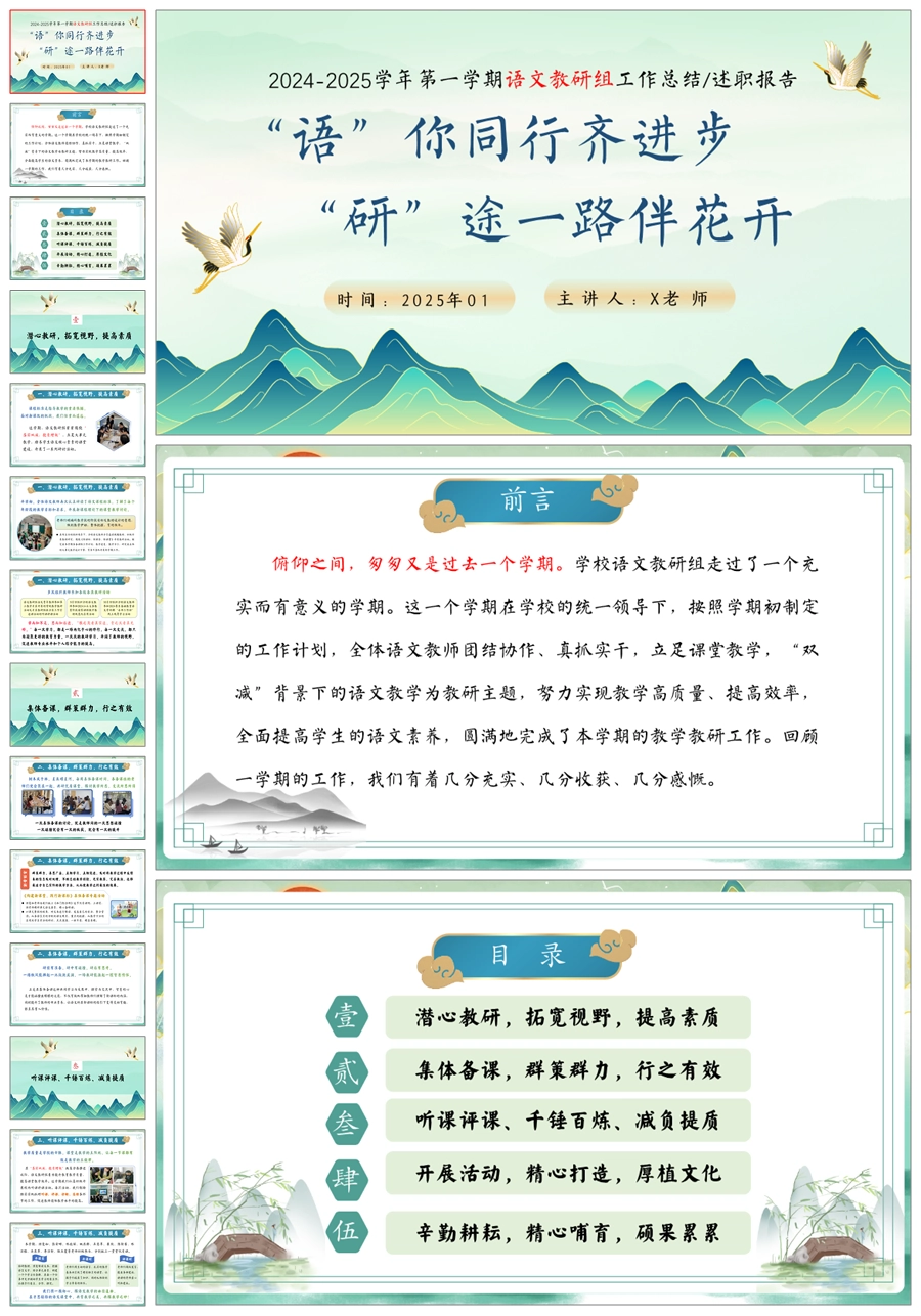 学校语文教研组工作总结(语你同行齐进步)ppt课件+发言稿