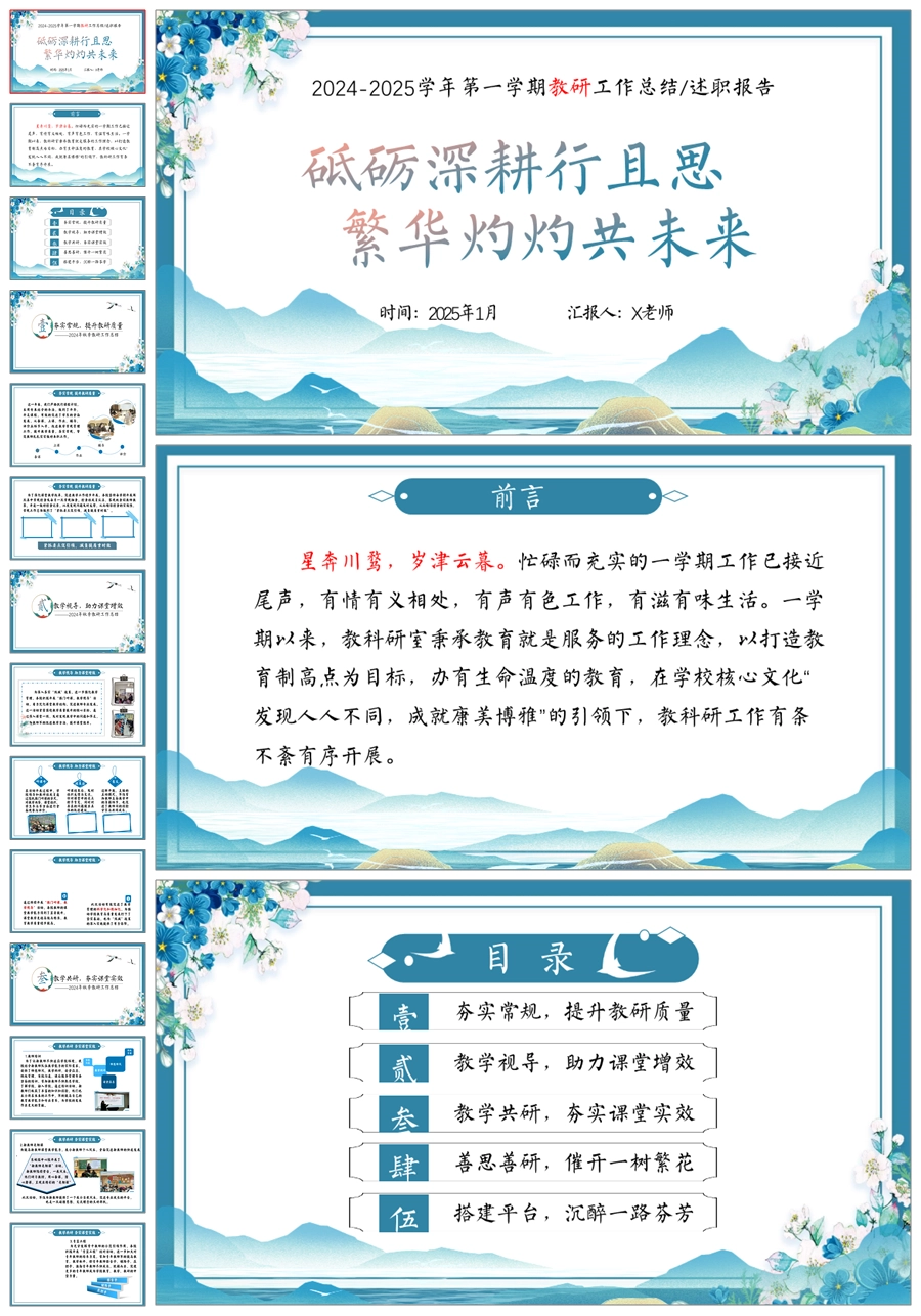 学校教科研工作总结(砥砺深耕)ppt课件+发言稿