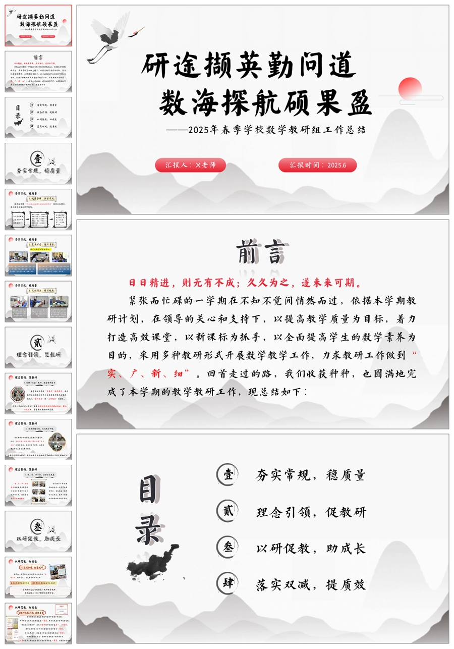 学校数学教研组工作总结-研途撷英勤问道ppt课件+发言稿